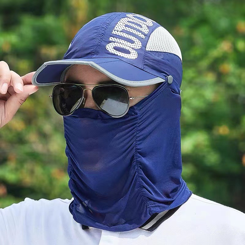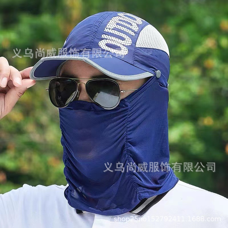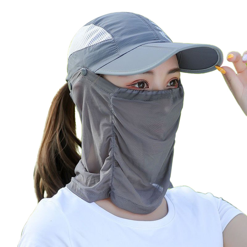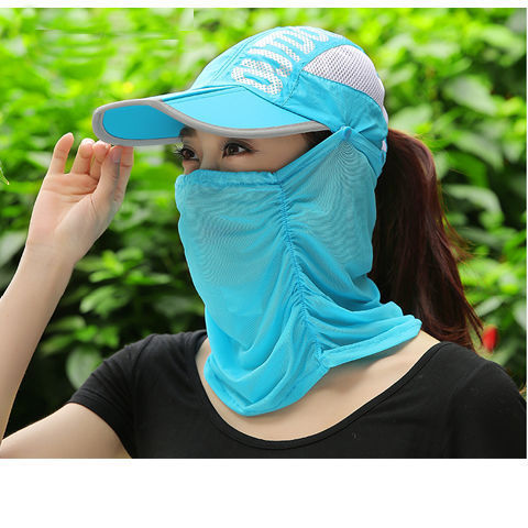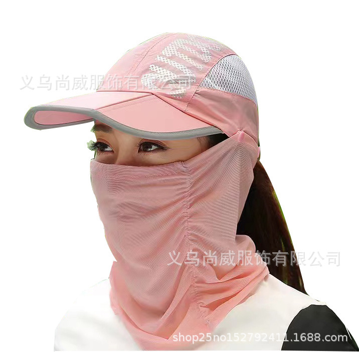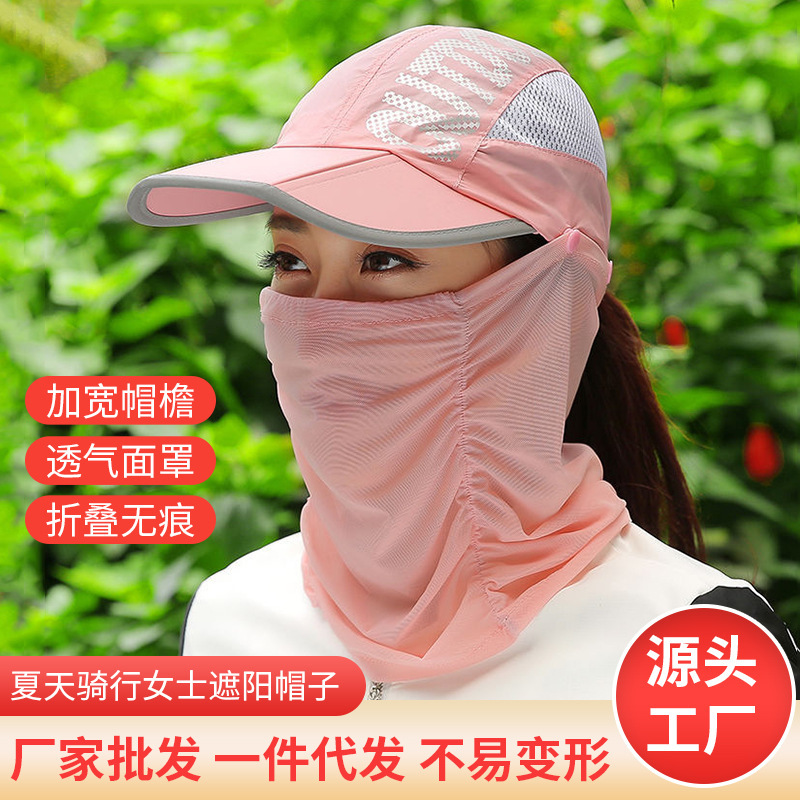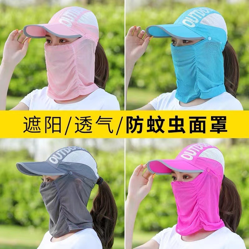 防晒帽子女夏季遮脸护颈防紫外线遮阳帽骑车面罩面纱帽一体采茶帽