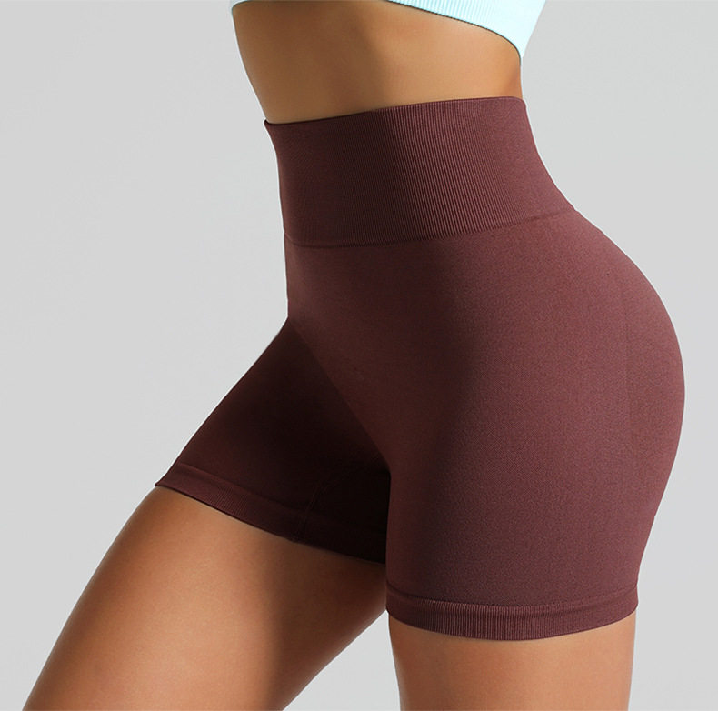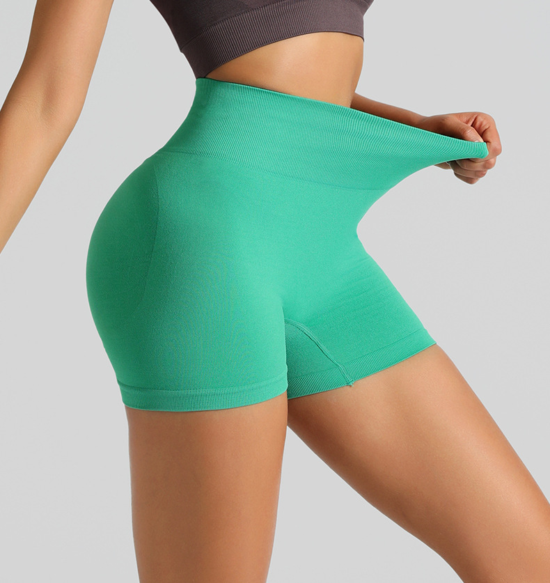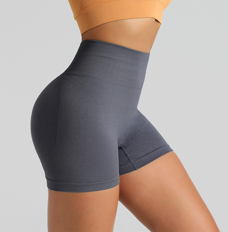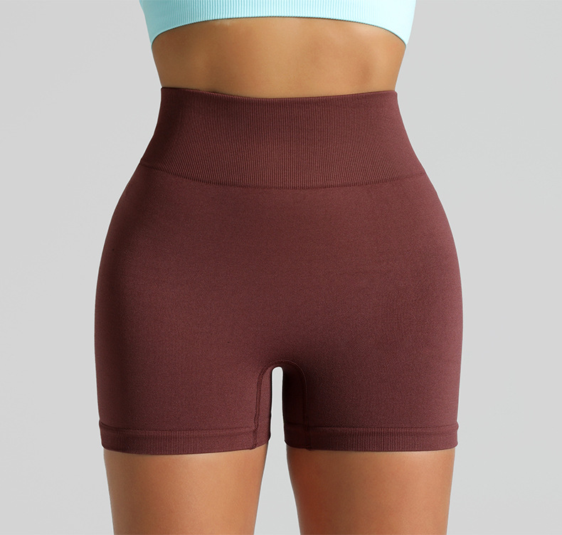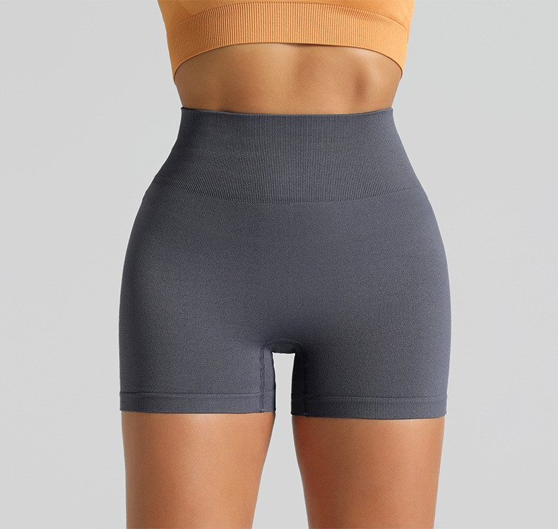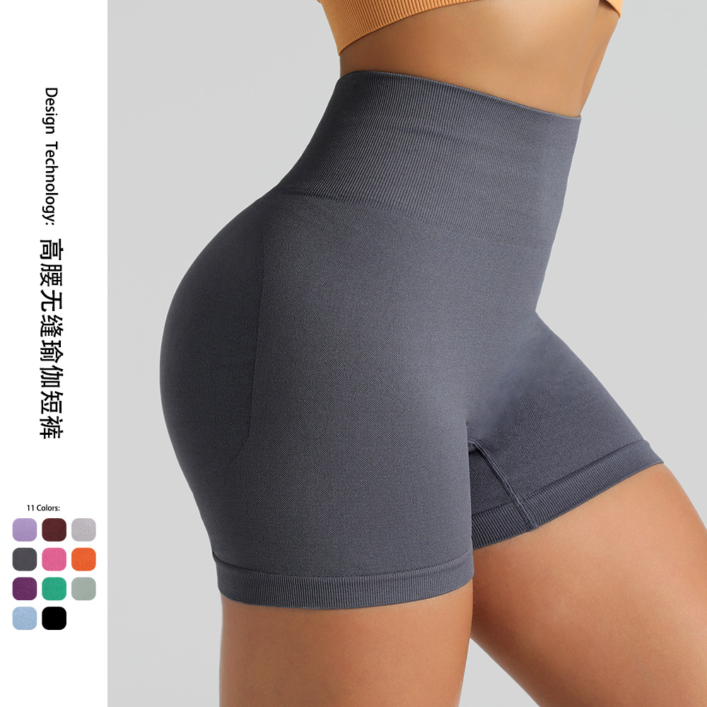 跨境无缝针织瑜伽短裤蜜桃提臀高腰健身紧身裤跑步运动三分短裤女