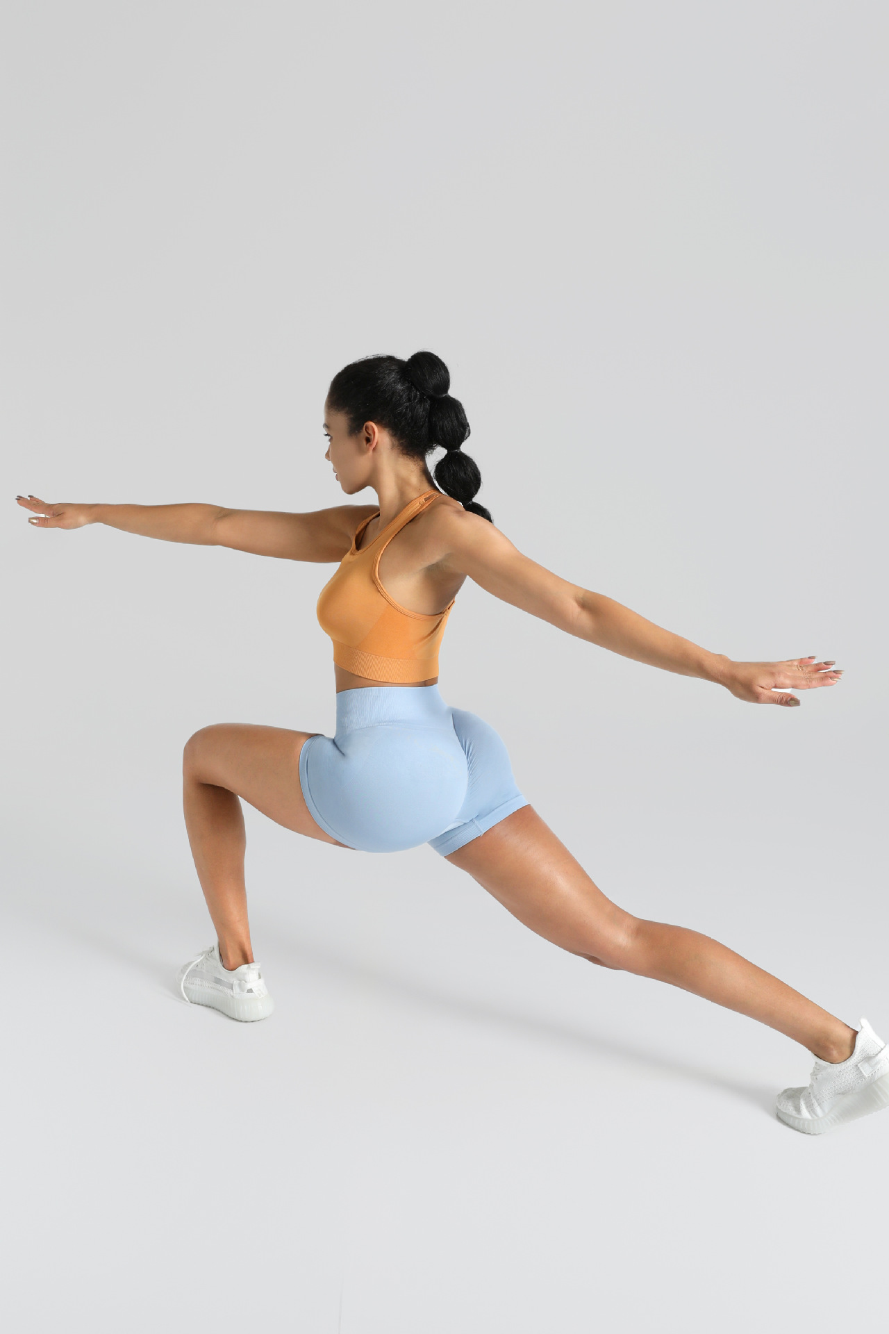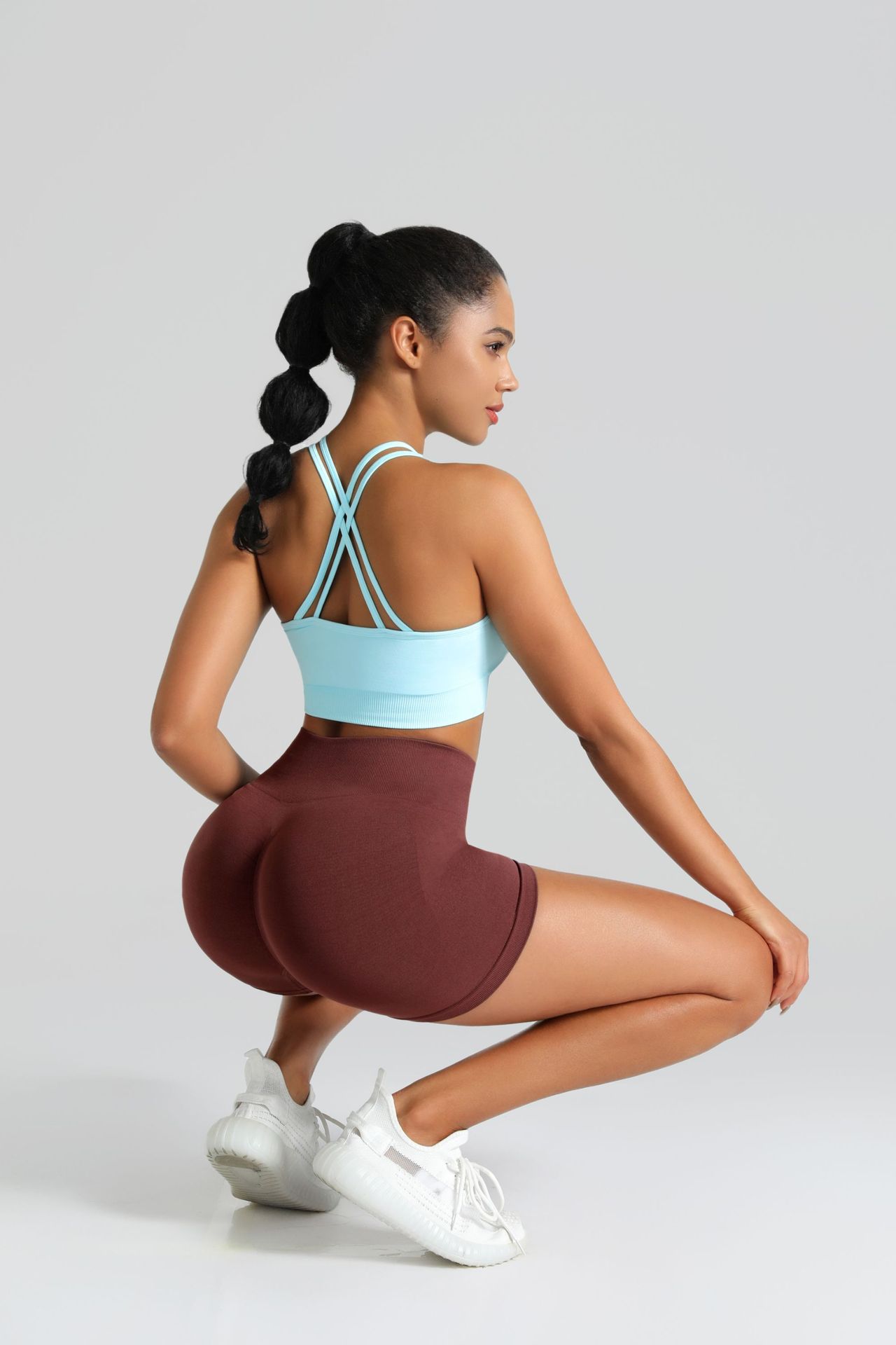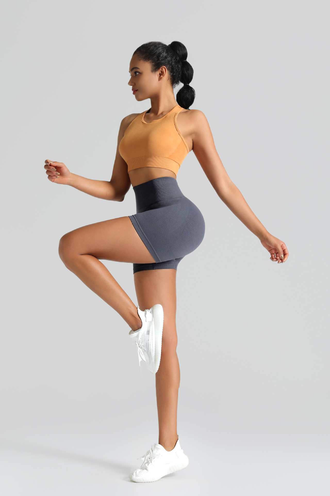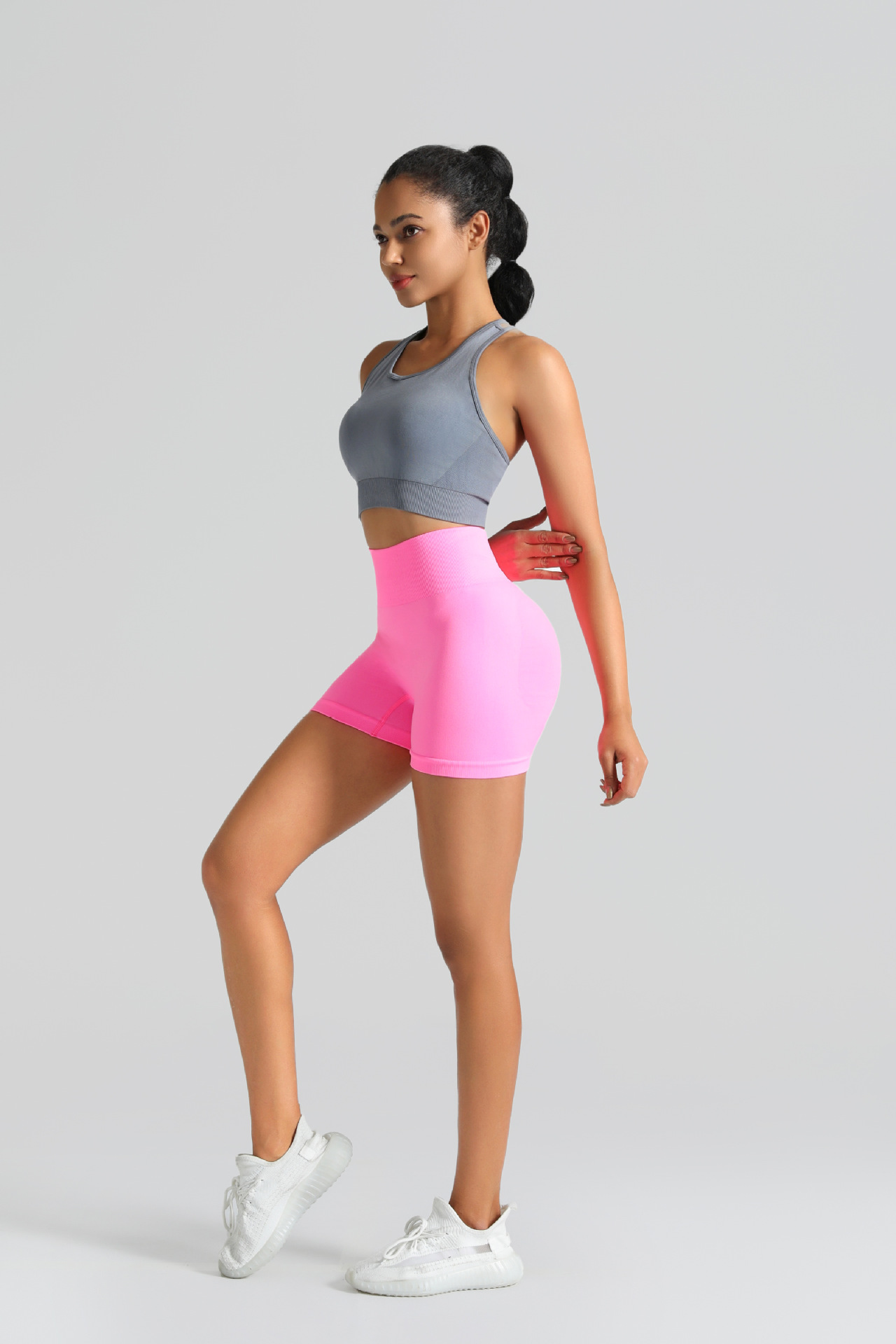 跨境无缝针织瑜伽短裤蜜桃提臀高腰健身紧身裤跑步运动三分短裤女