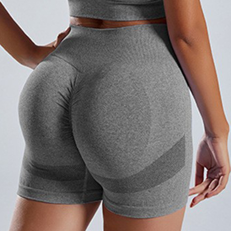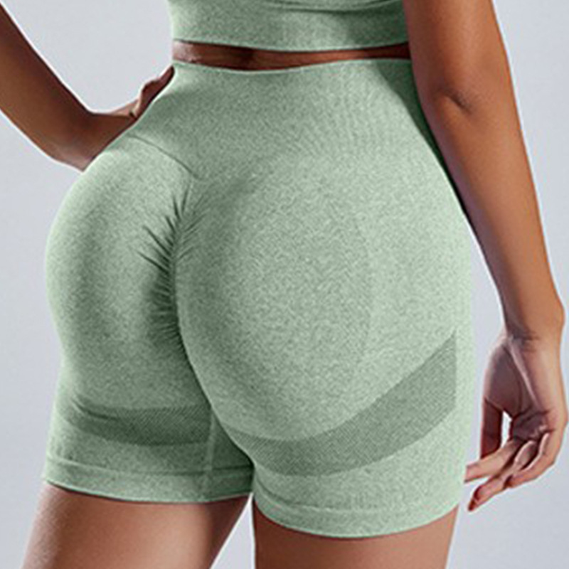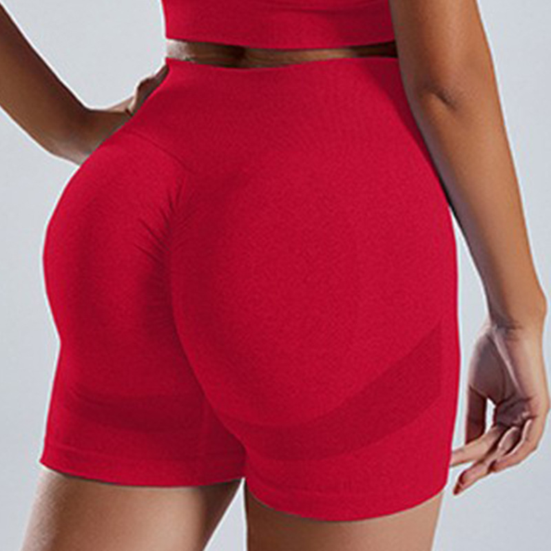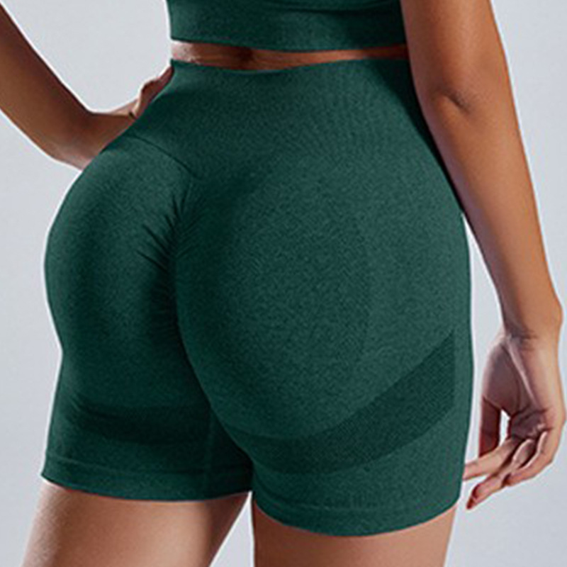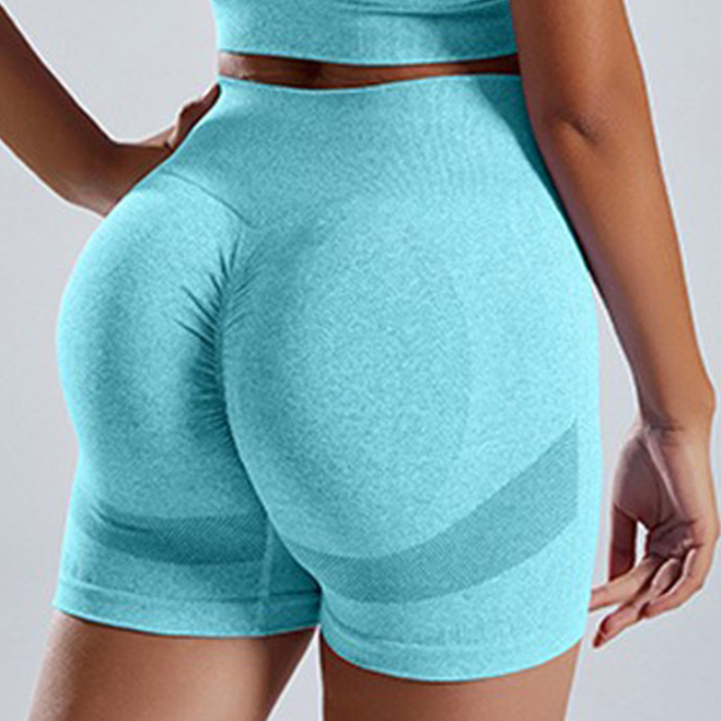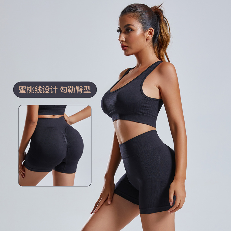 无缝针织瑜伽服套装批发运动内衣女欧美高腰蜜桃臀健身瑜伽短裤