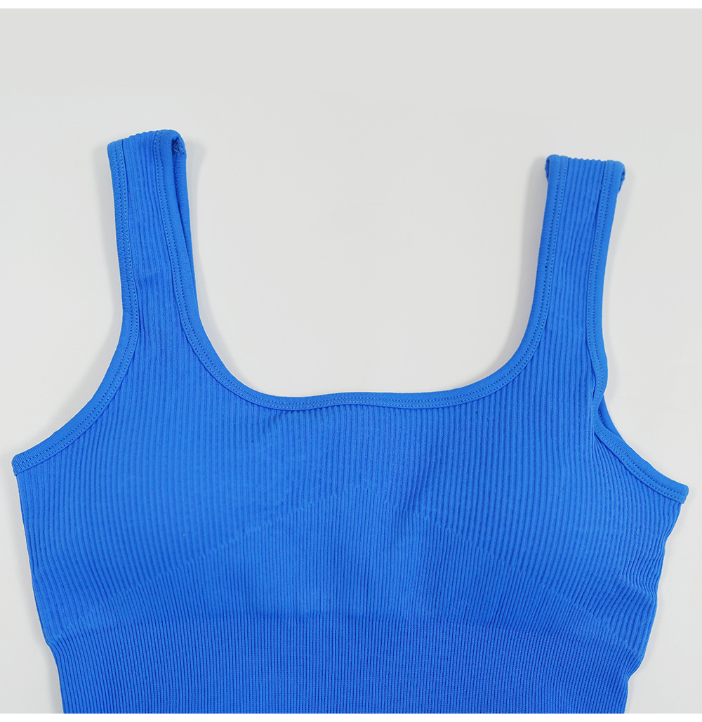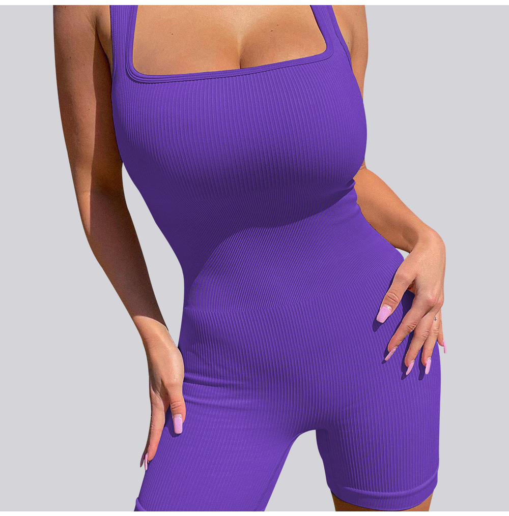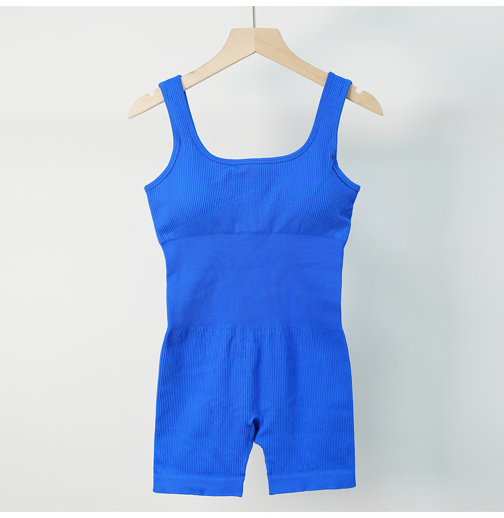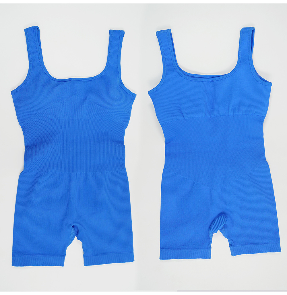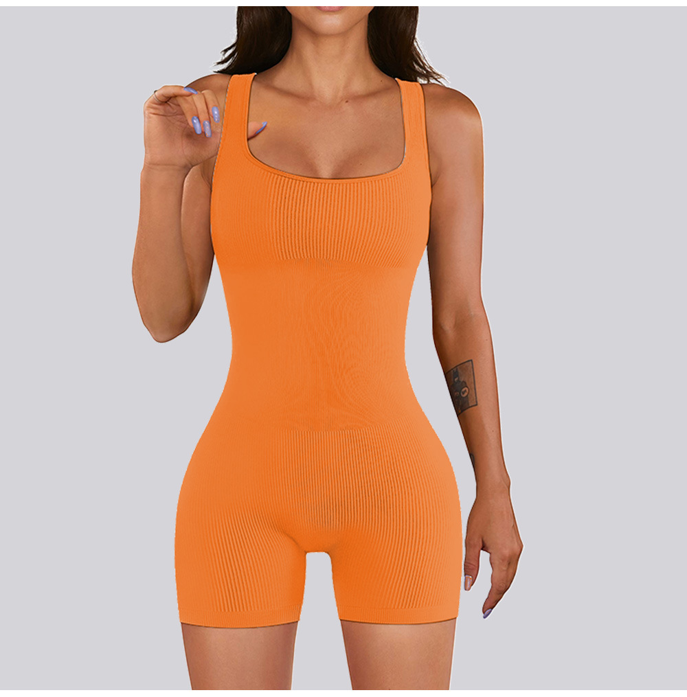 欧美跨境亚马逊OQQ短裤款连体衣可拆卸胸垫螺纹紧身健身服