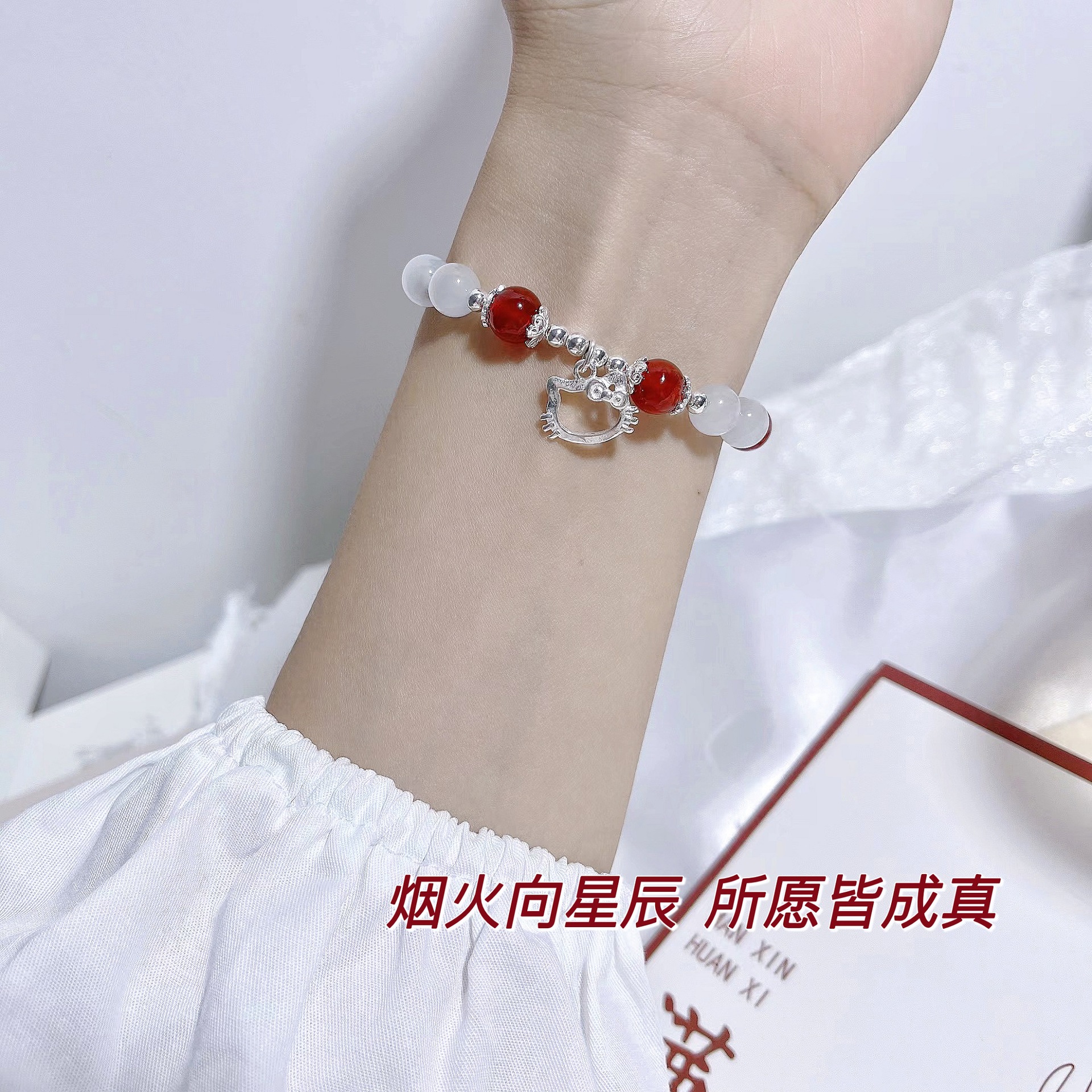 猫眼石手链女海蓝宝手链灰月光天然水晶手链手串ins百搭气质手饰