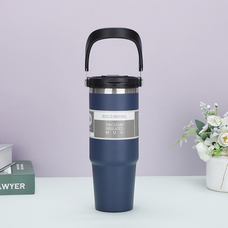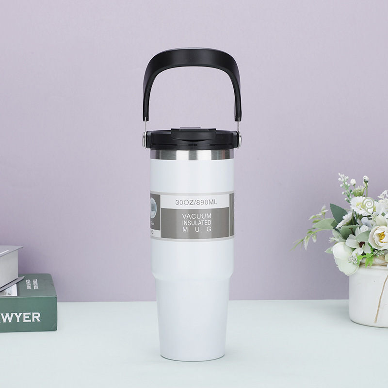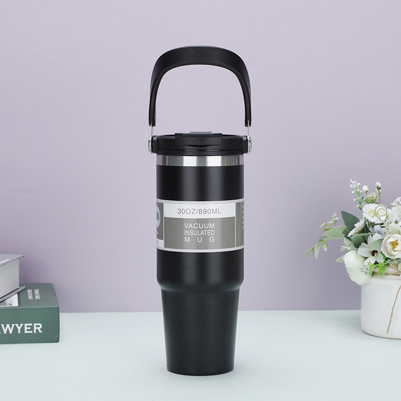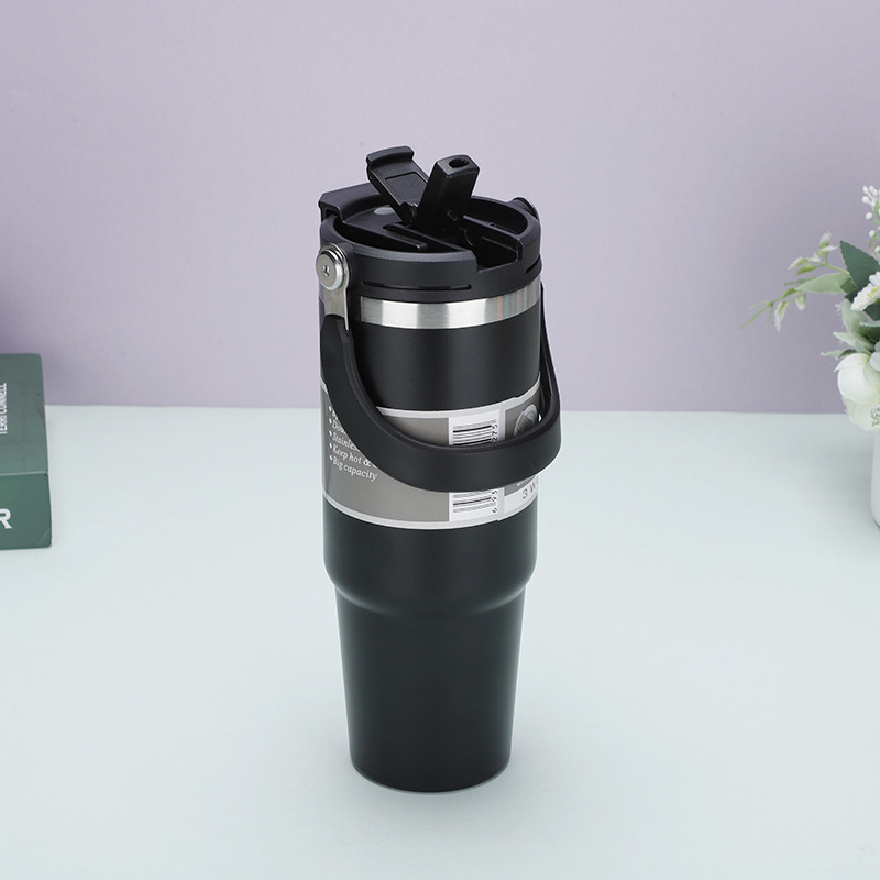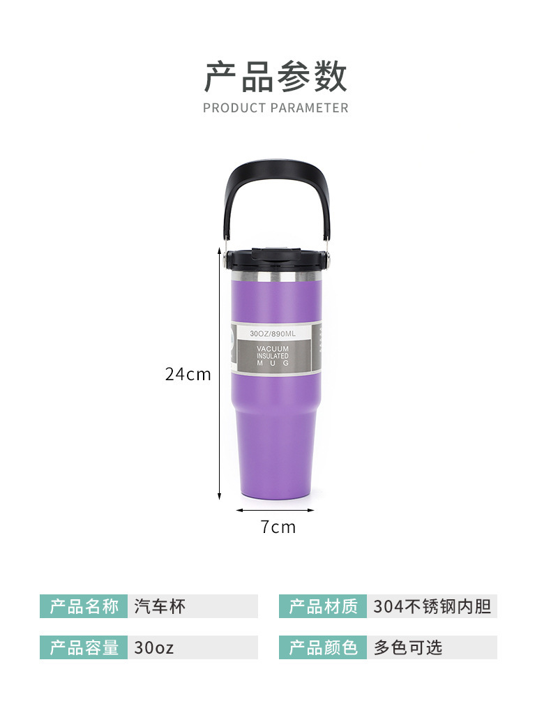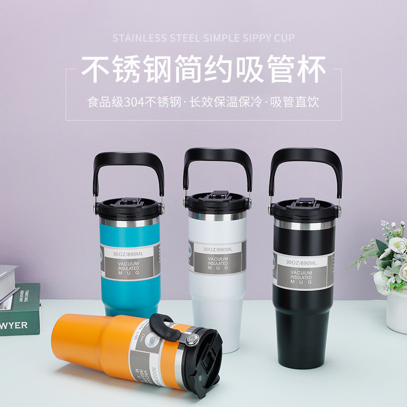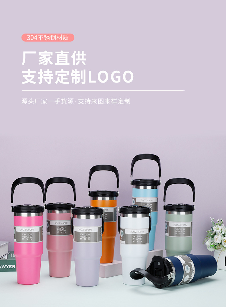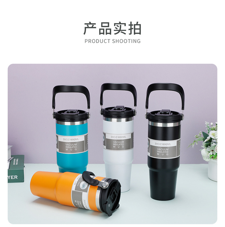 网络爆款304不锈钢大容量30oz双层真空便携车载双饮手提盖保温杯