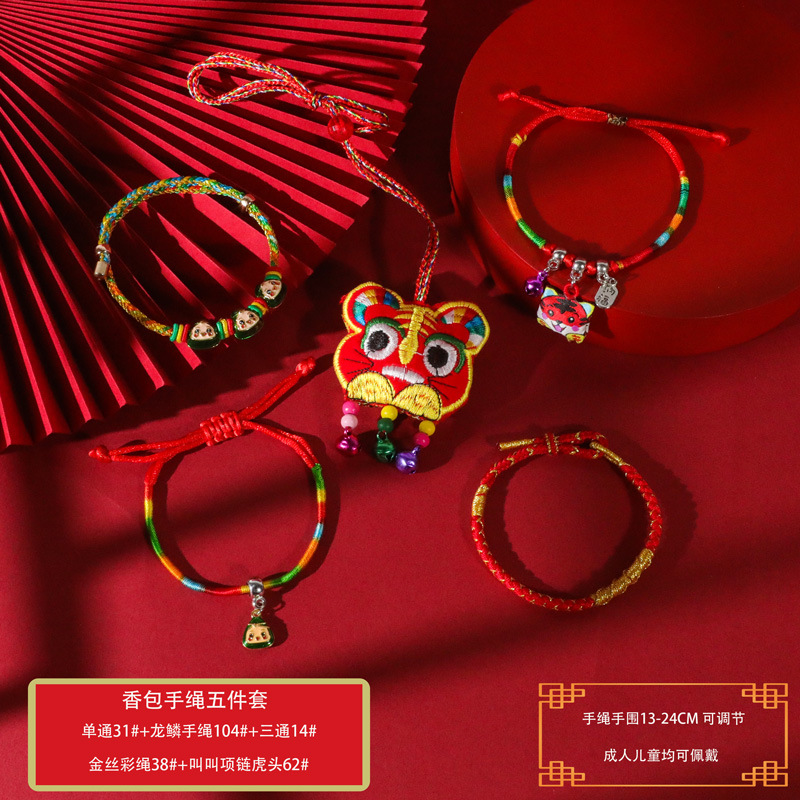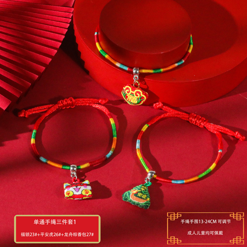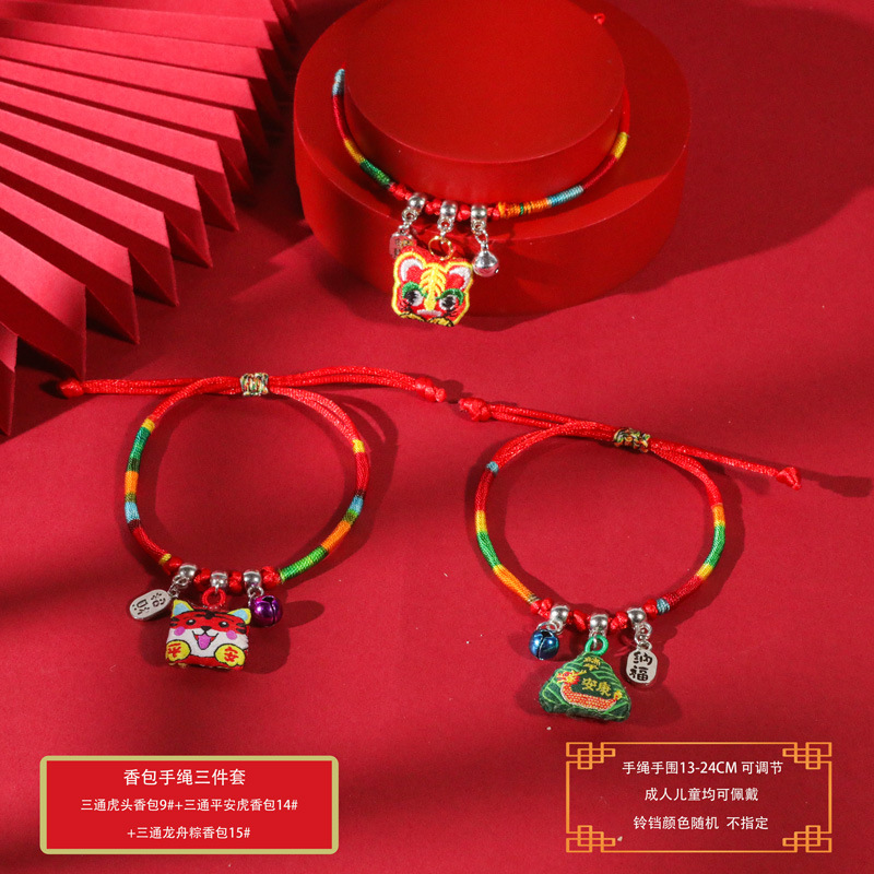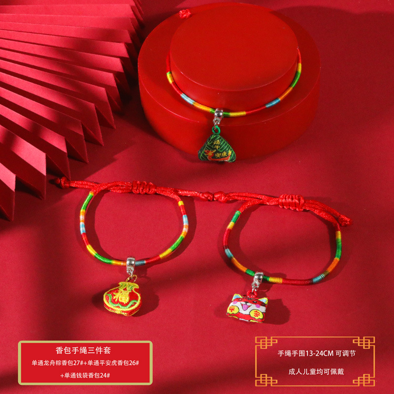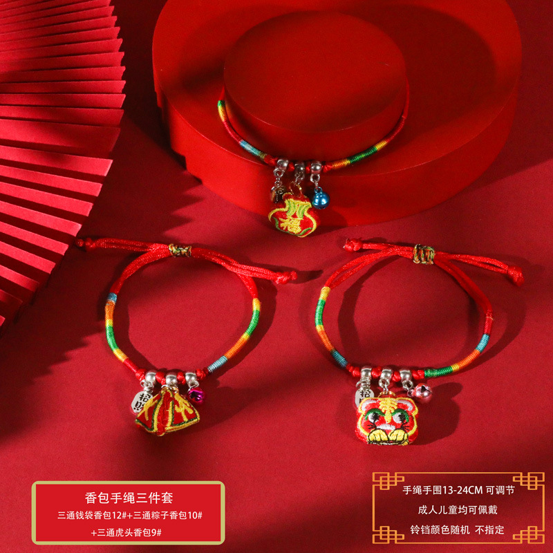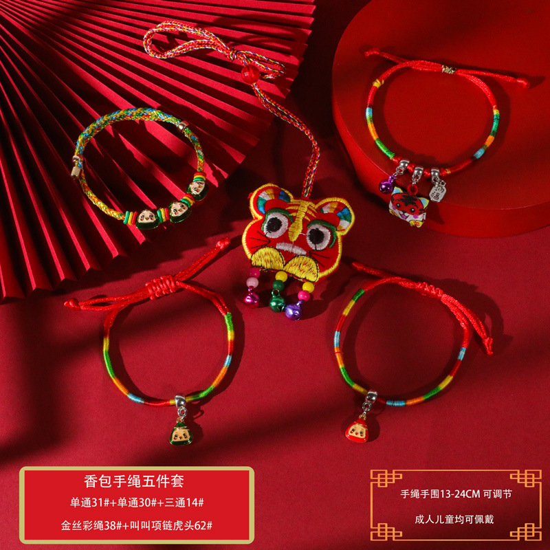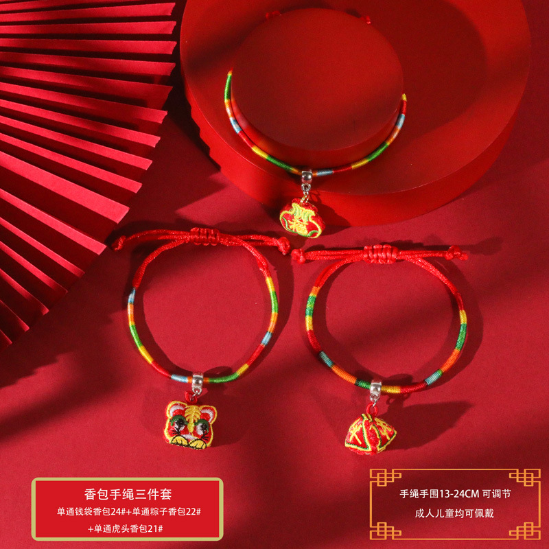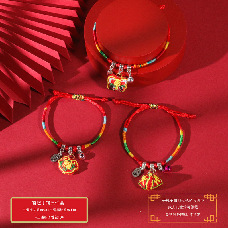 端午节五彩绳手工编织手绳红绳刺绣虎头香包手脚链义乌小商品批发