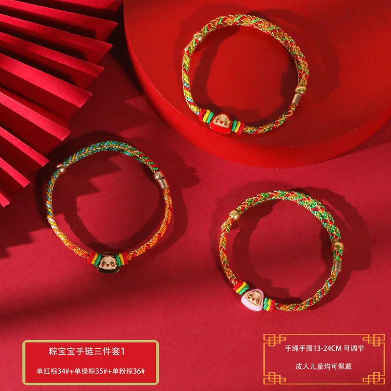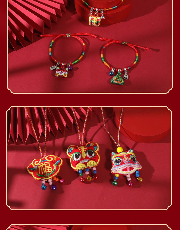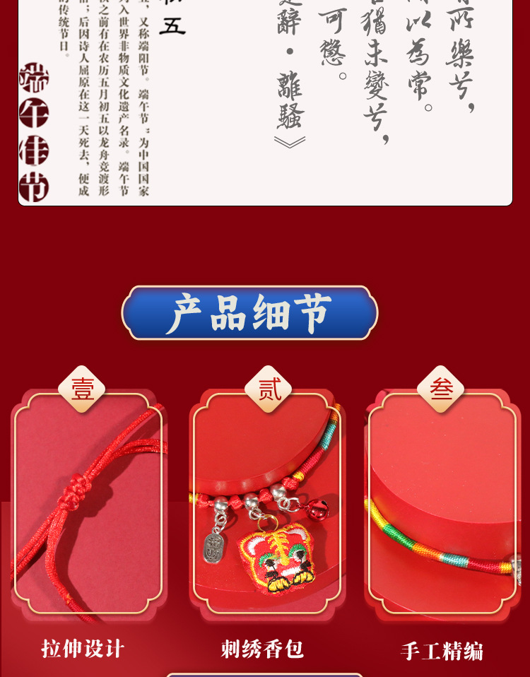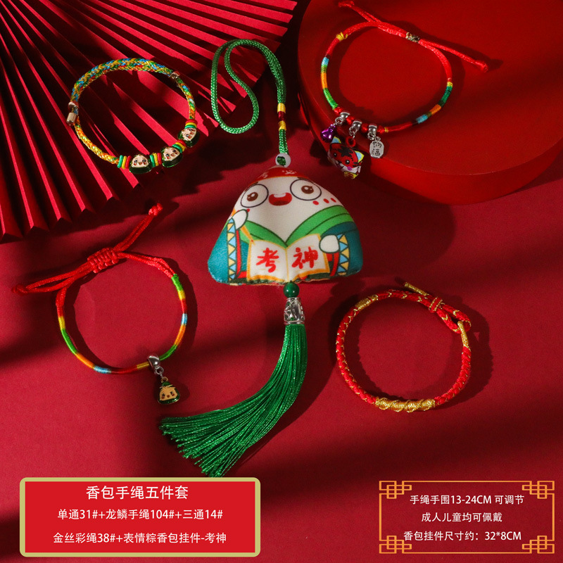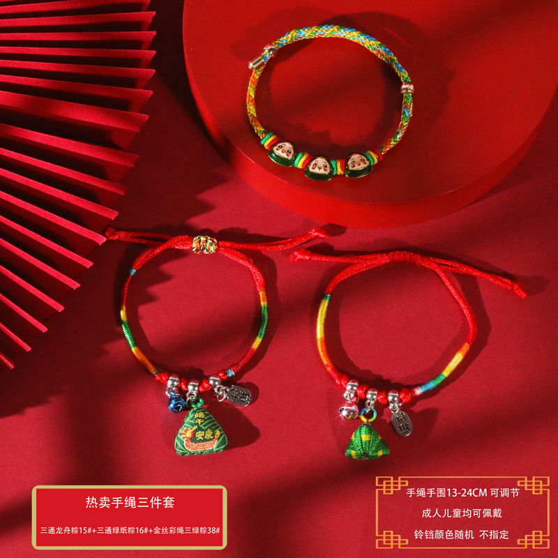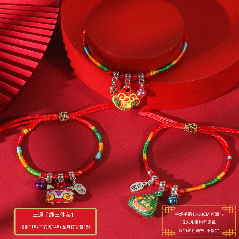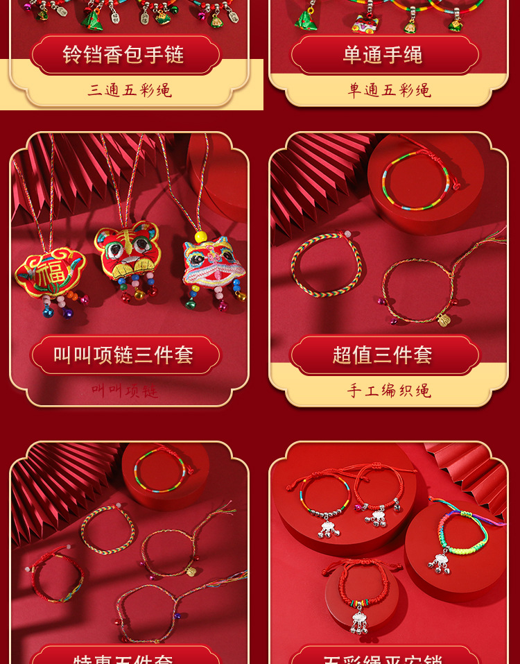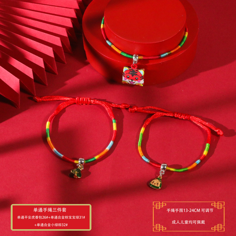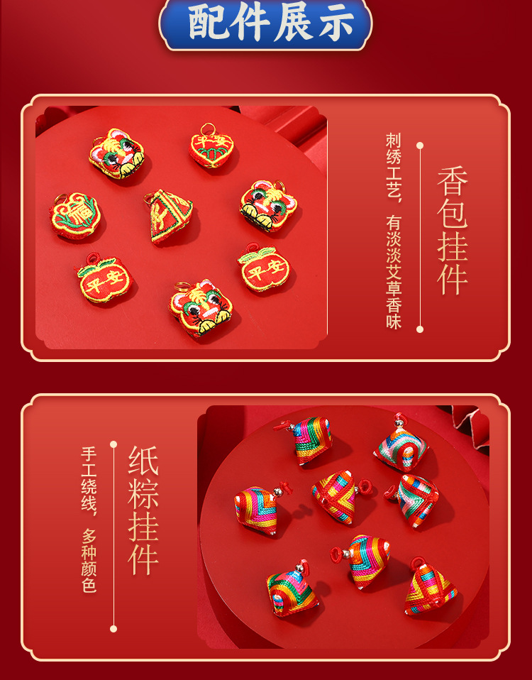 端午节五彩绳手工编织手绳红绳刺绣虎头香包手脚链义乌小商品批发