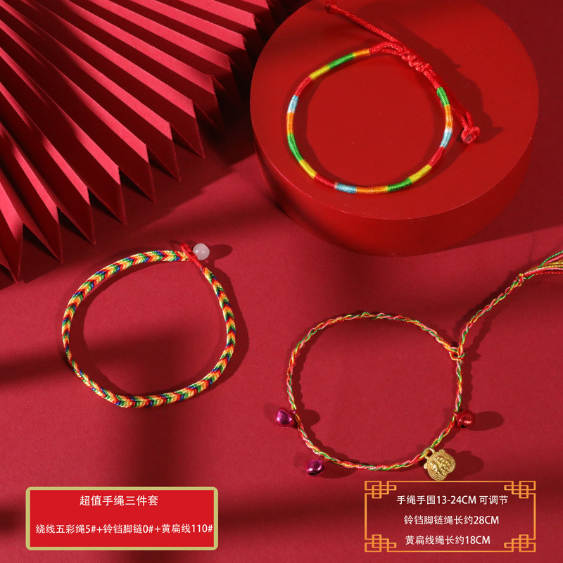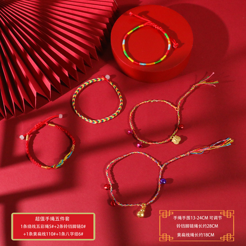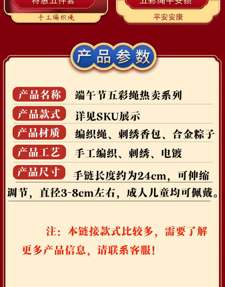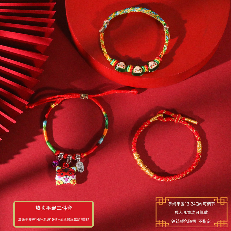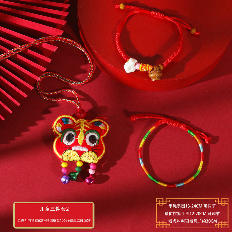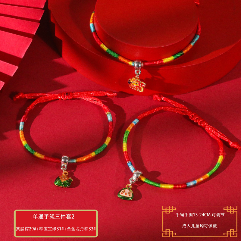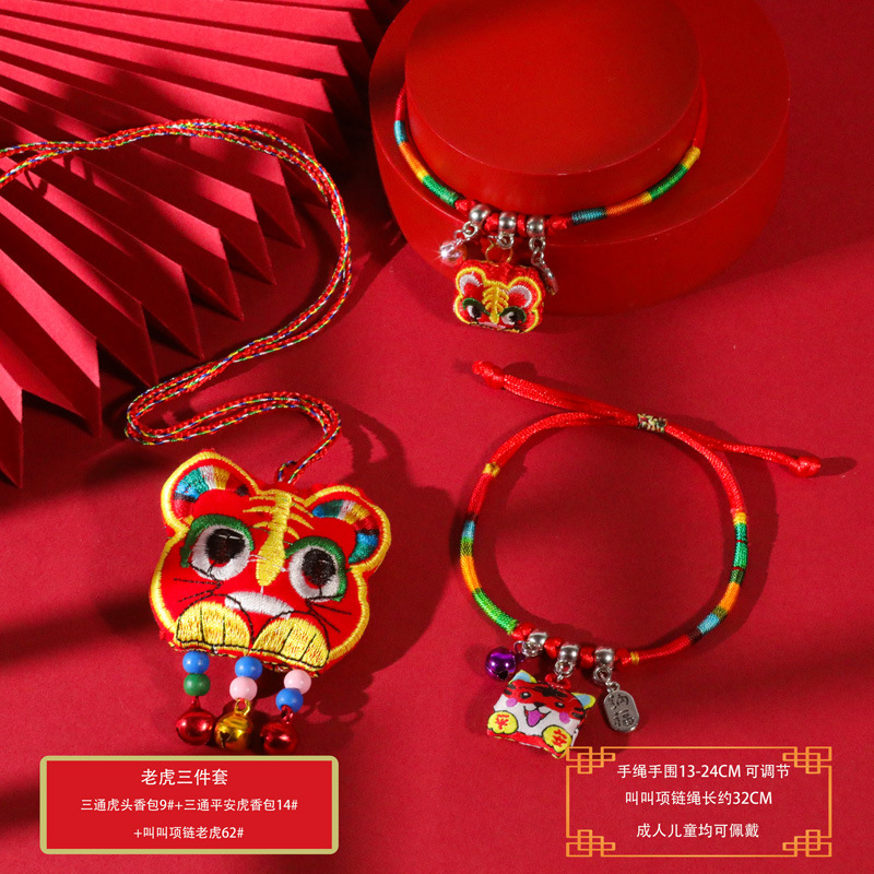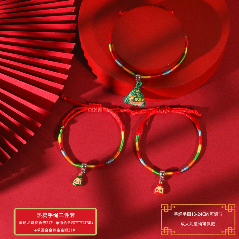 端午节五彩绳手工编织手绳红绳刺绣虎头香包手脚链义乌小商品批发