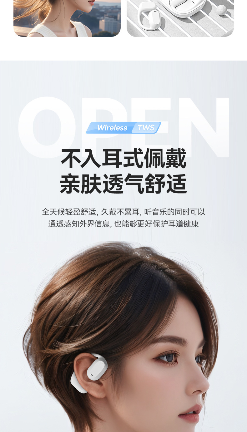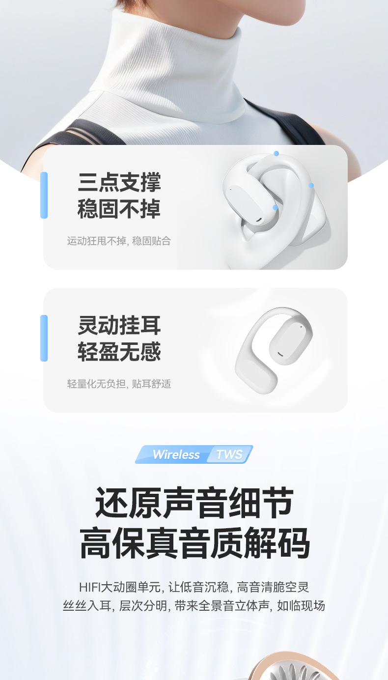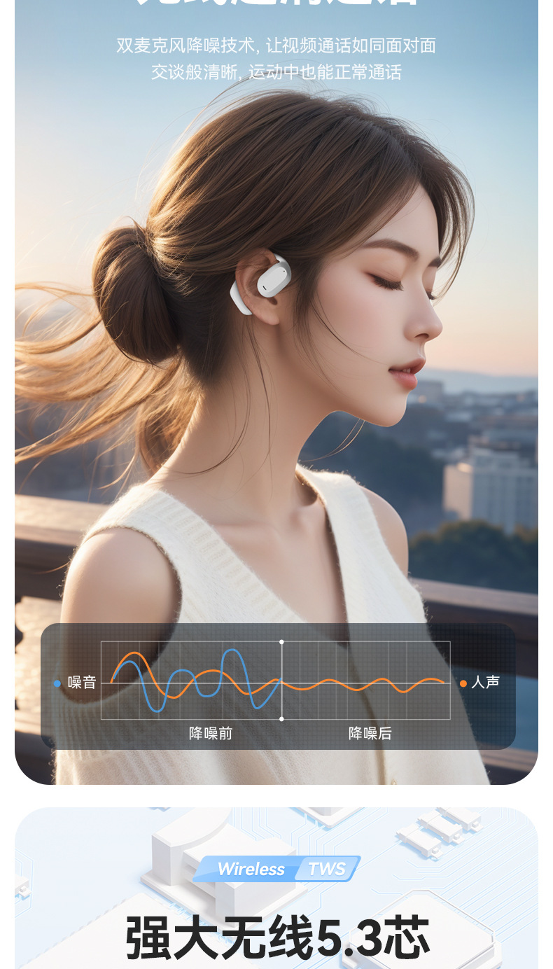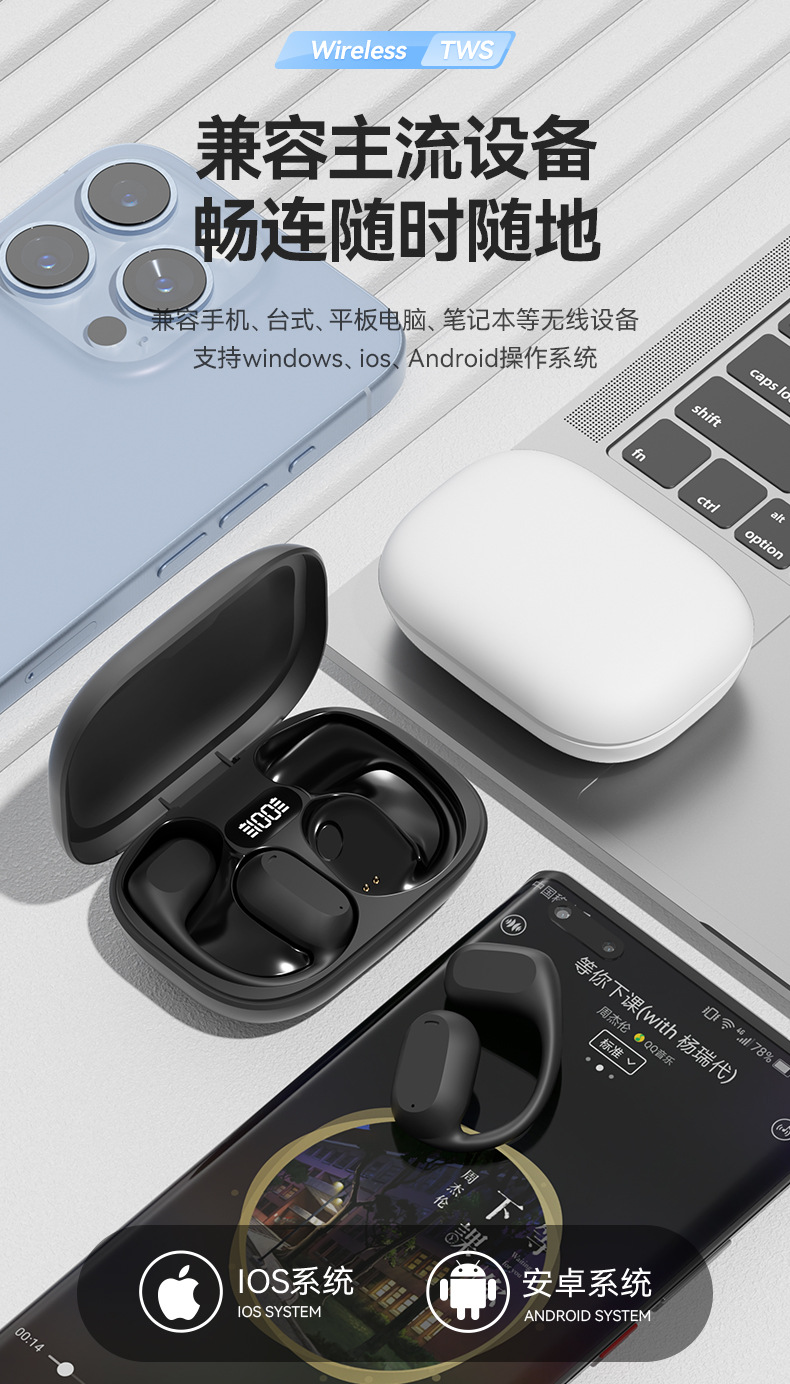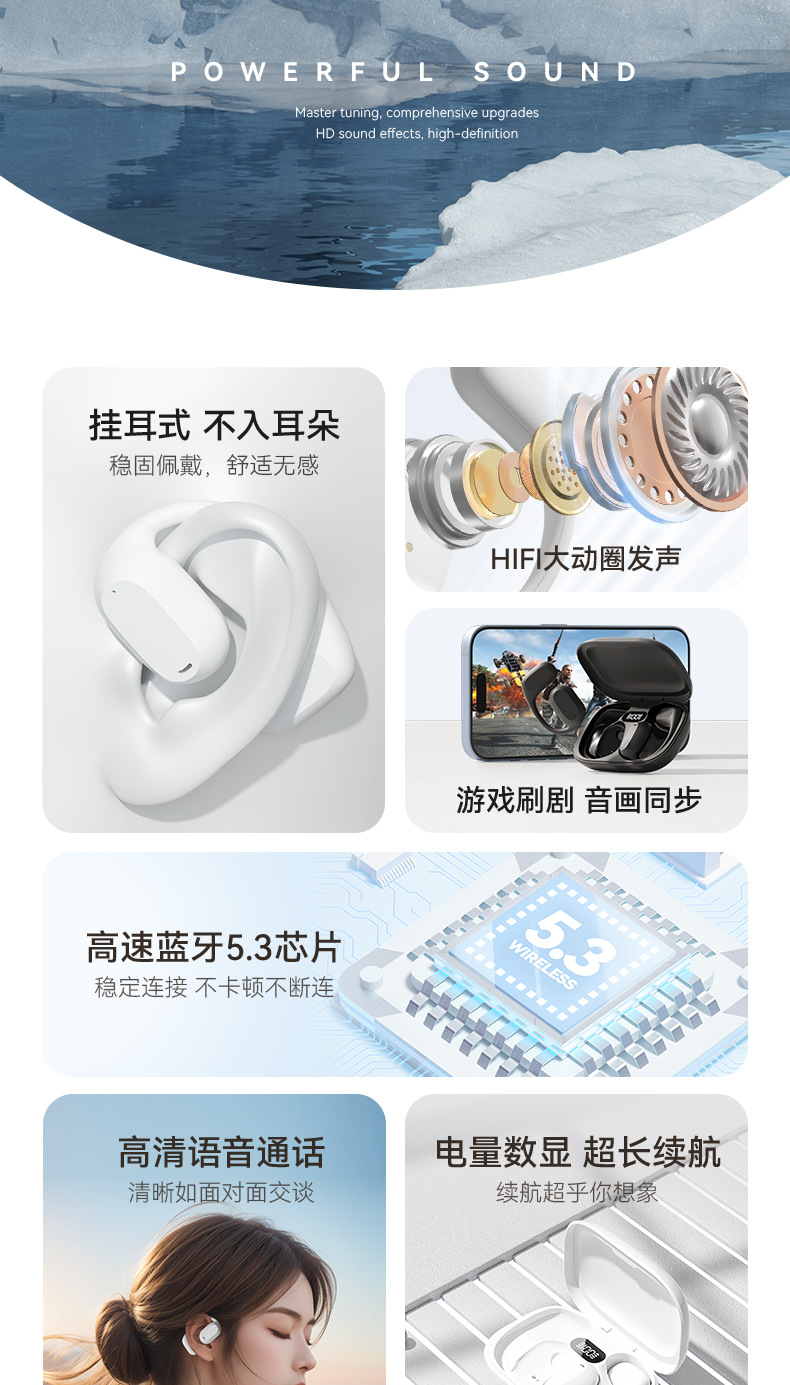 2024跨境新款OWS蓝牙耳机M60不入耳挂耳式骨传导降噪跑步耳机批发