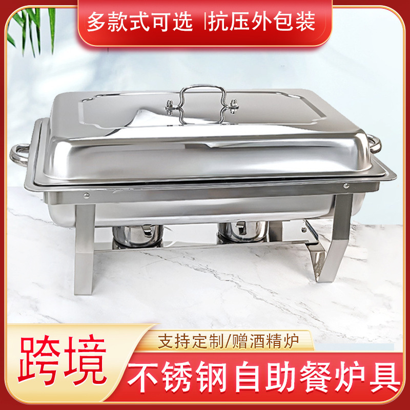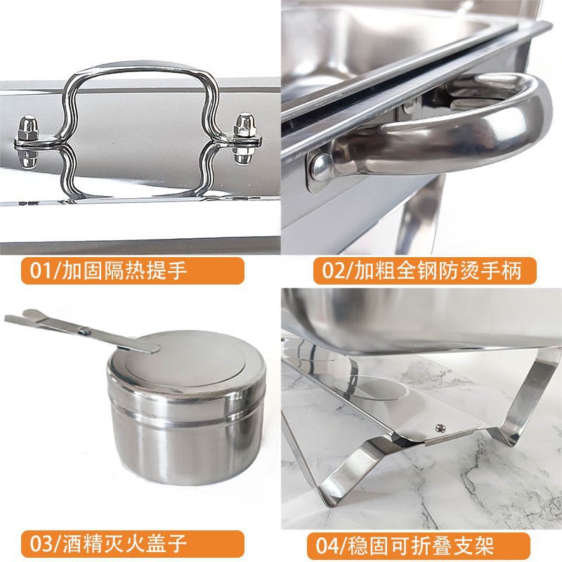 外贸出口不锈钢长方形加厚自助餐炉餐具酒店布菲炉保温炉金色