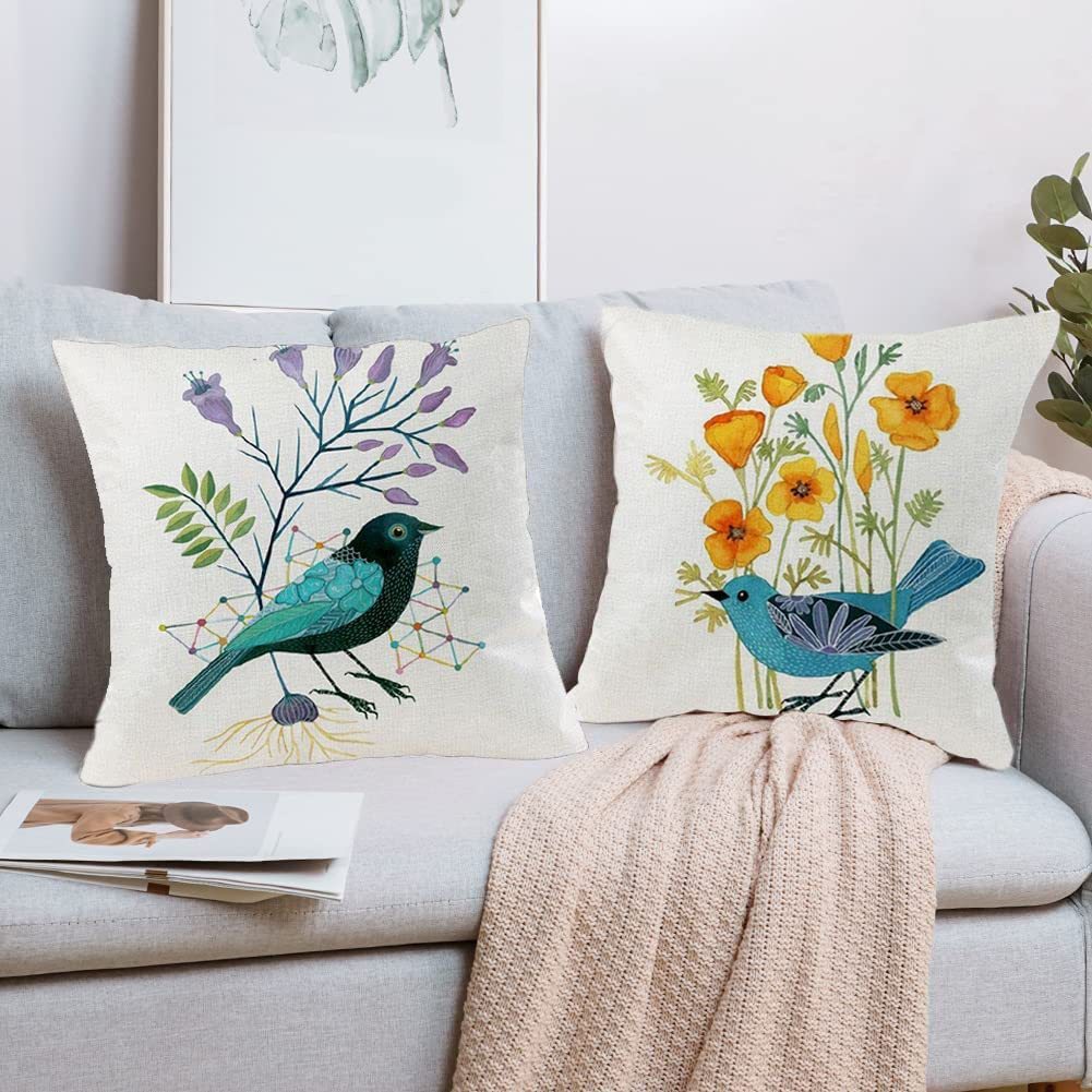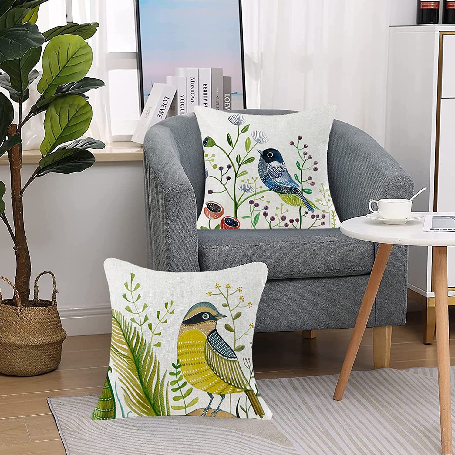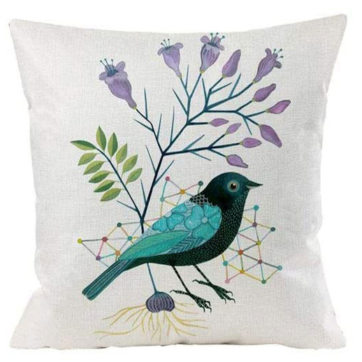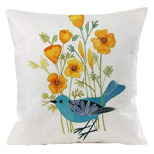 清新简约花鸟图案印花亚麻抱枕套温馨家居软装沙发靠枕椅子靠垫