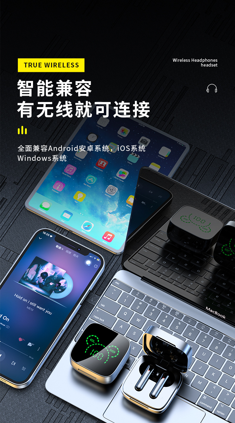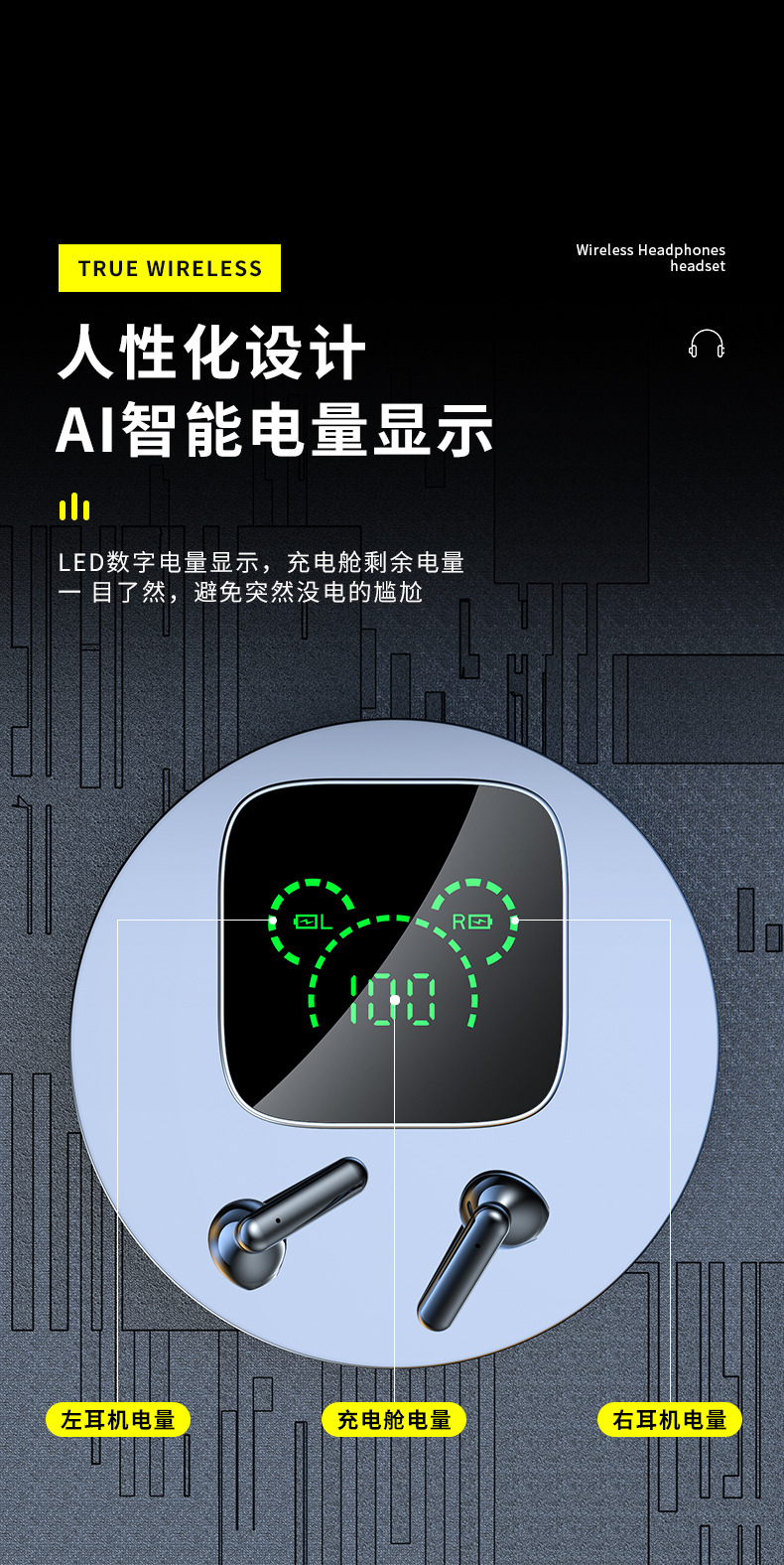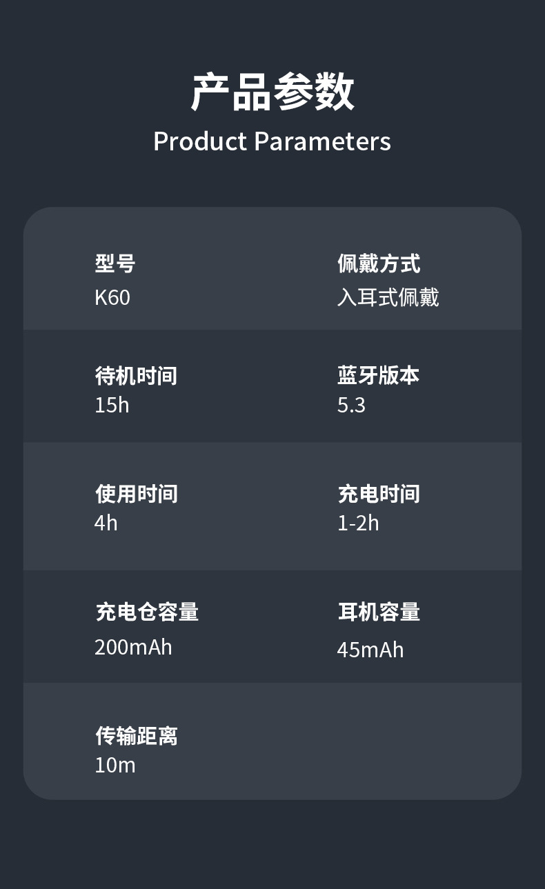 跨境私模新品k60无线蓝牙耳机TWS 5.3数显低延迟入耳式蓝牙耳机