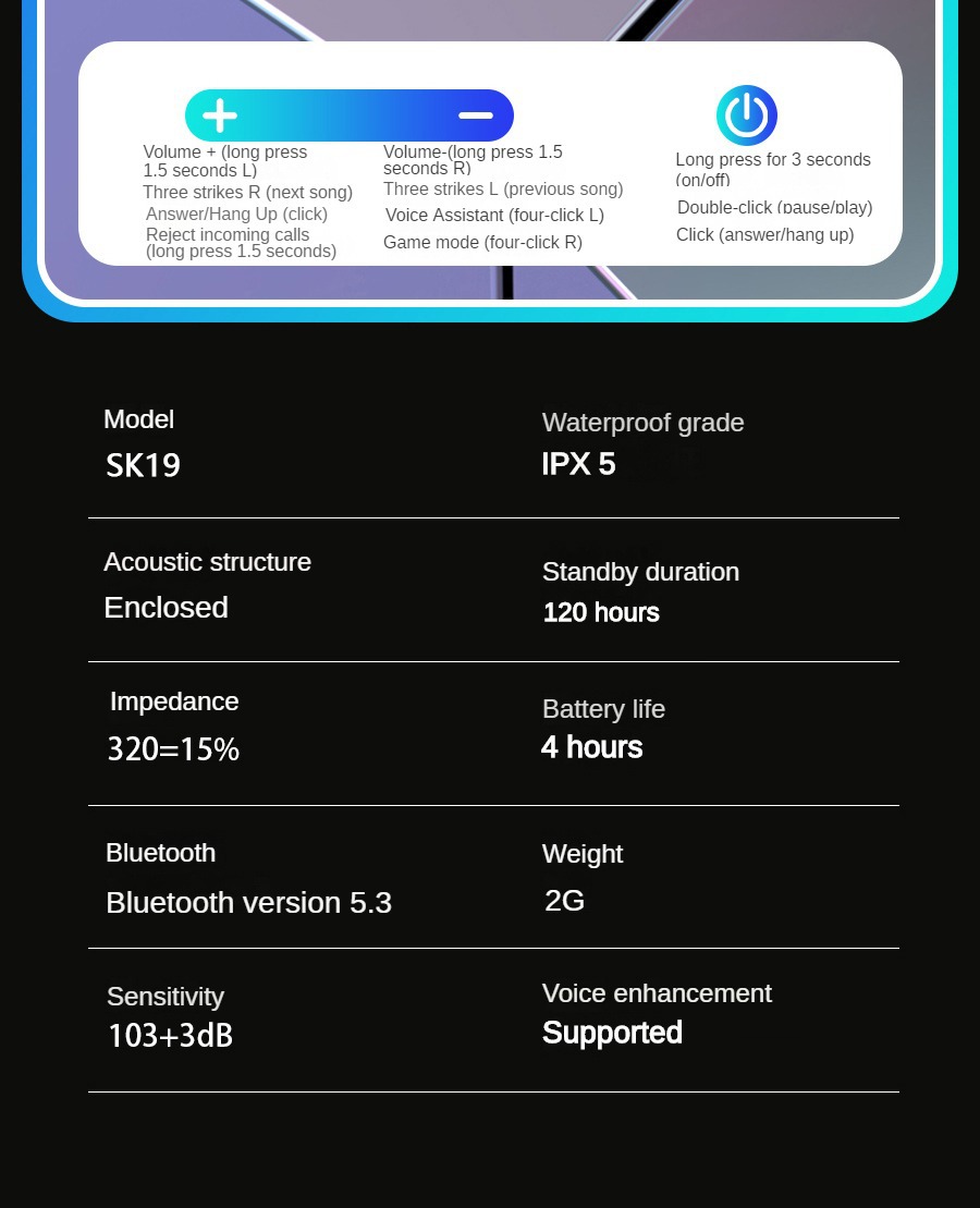 新款SK19无线蓝牙耳机降噪高音质超长续航双耳超小迷你男女通用