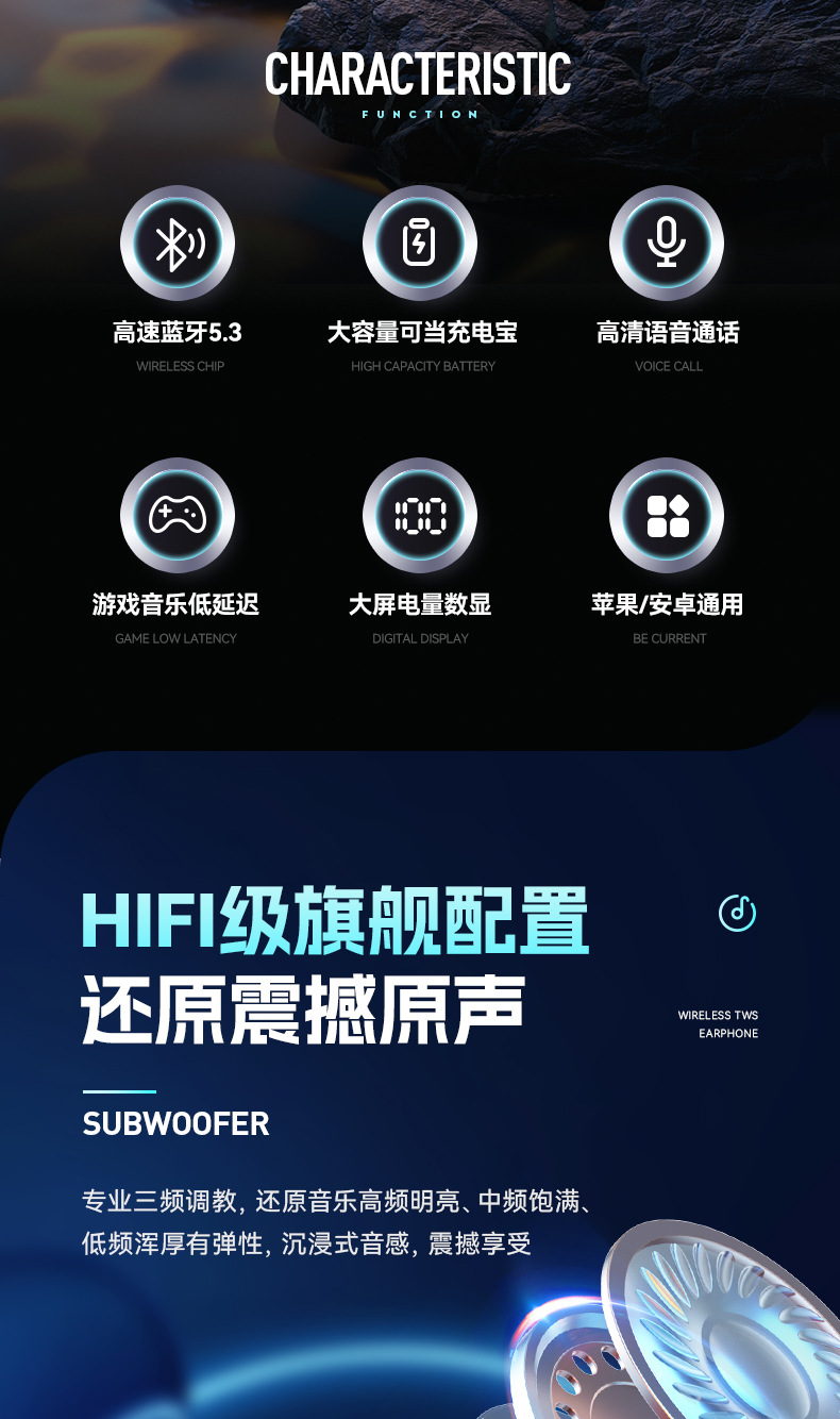 M49跨境爆款蓝牙耳机大电量降噪TWS无线入耳式高清数显低延迟耳机