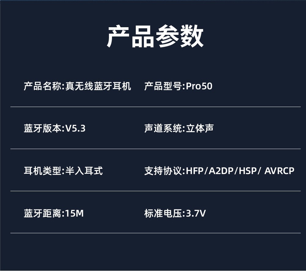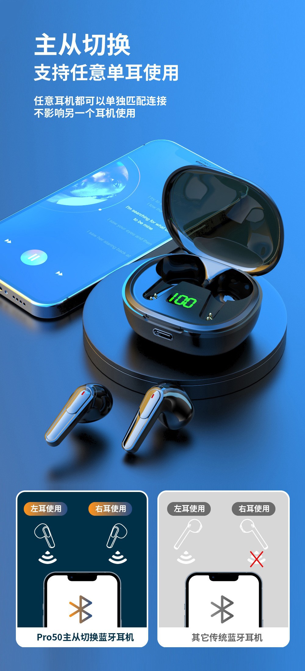 爆款PRO50数显蓝牙耳机跨境无线TWS耳机ENC降噪耳机蓝牙5.0热卖款