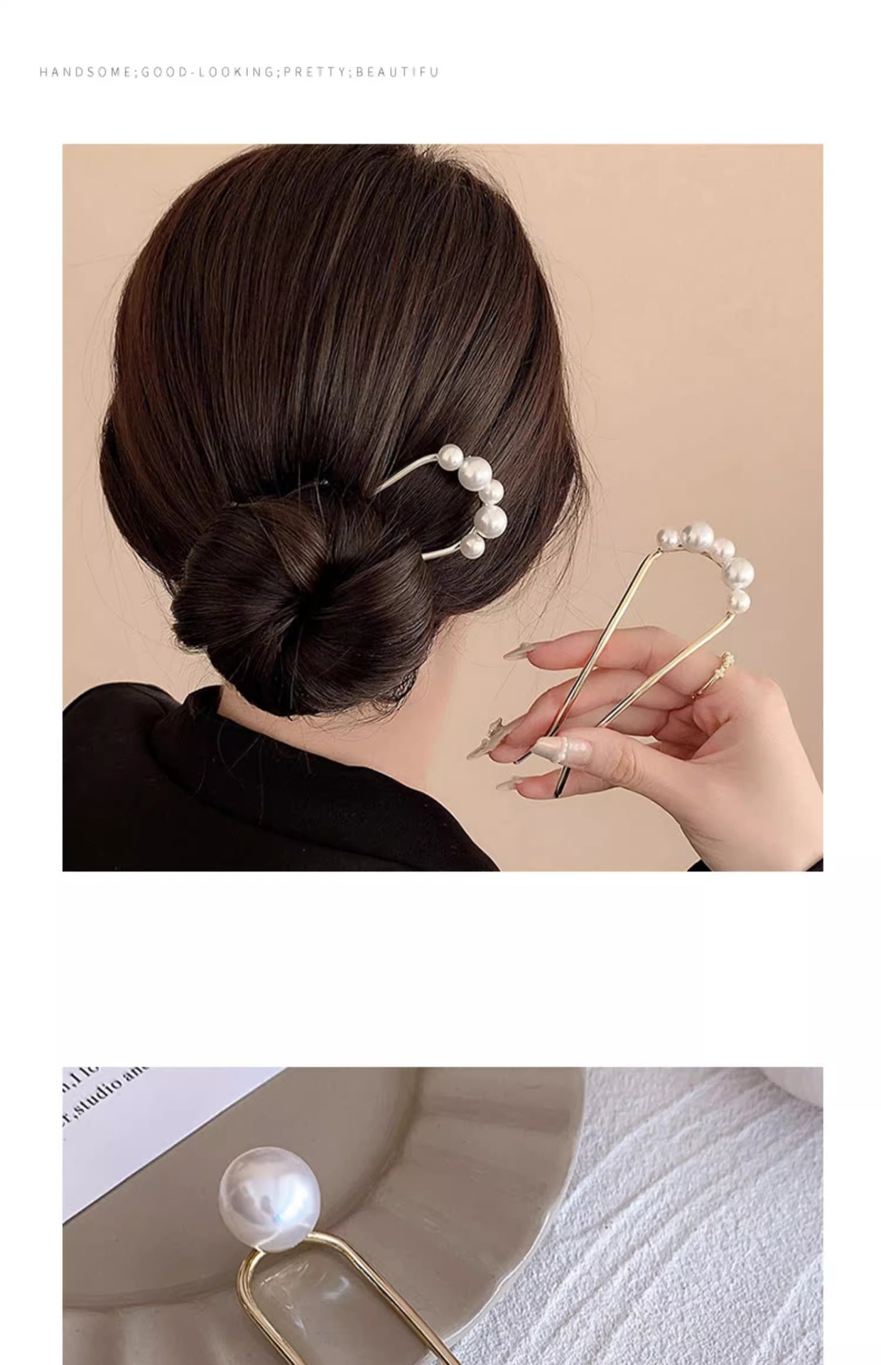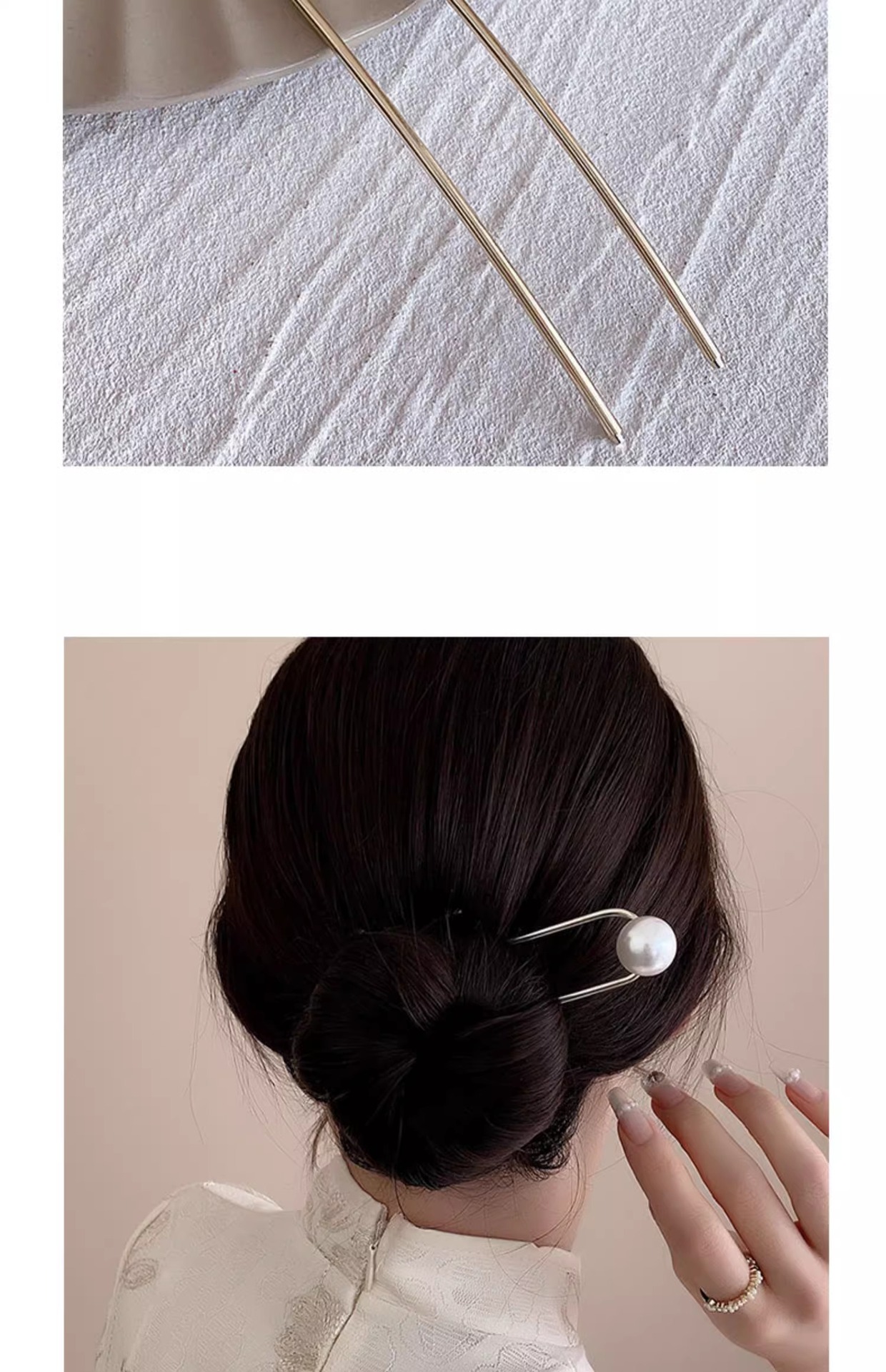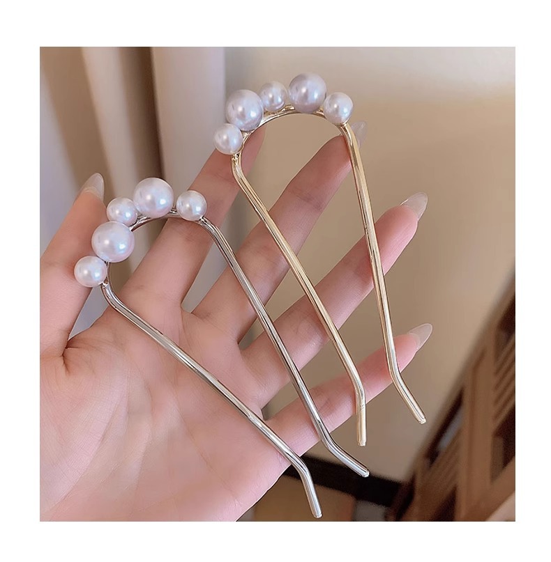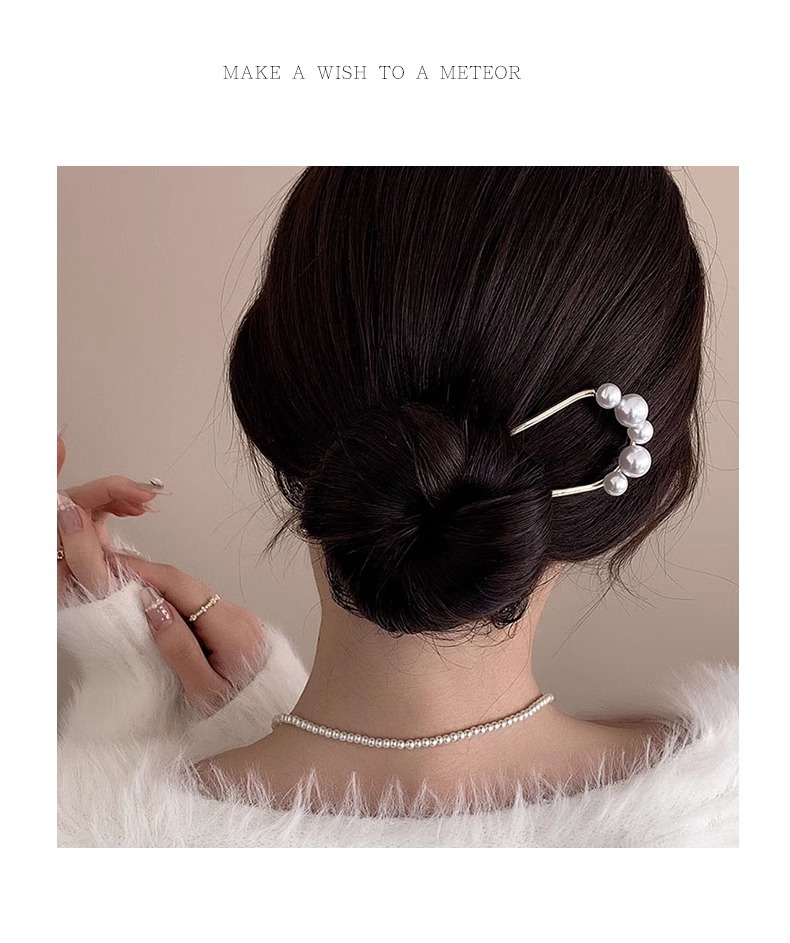 高级感珍珠u型发簪女新中式盘发神器后脑勺簪子2023新款发钗头饰
