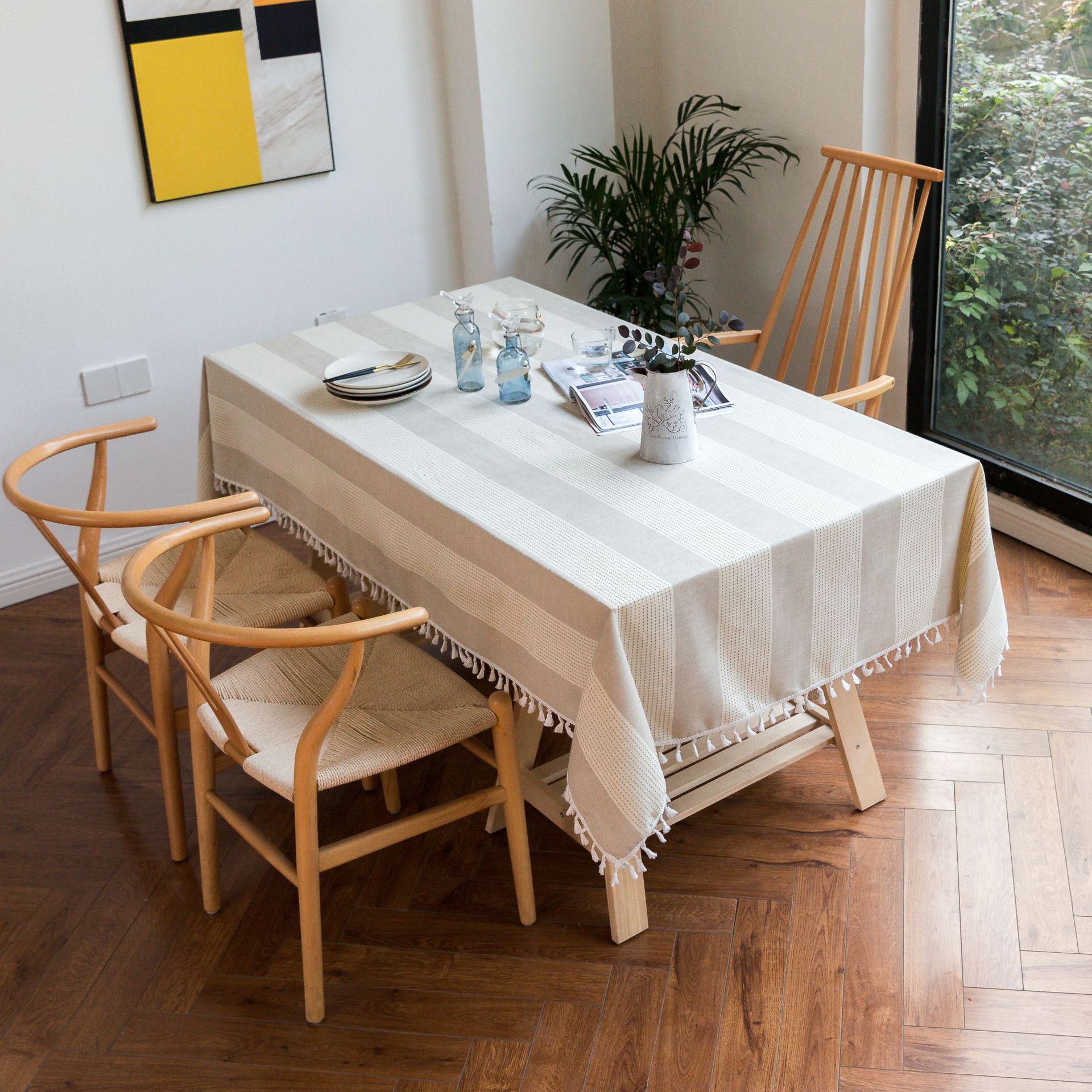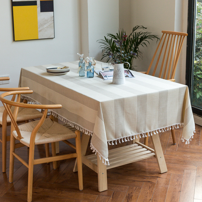 北欧式素色条纹桌布现代简约装饰防尘台布书桌布桌垫盖巾现货批发