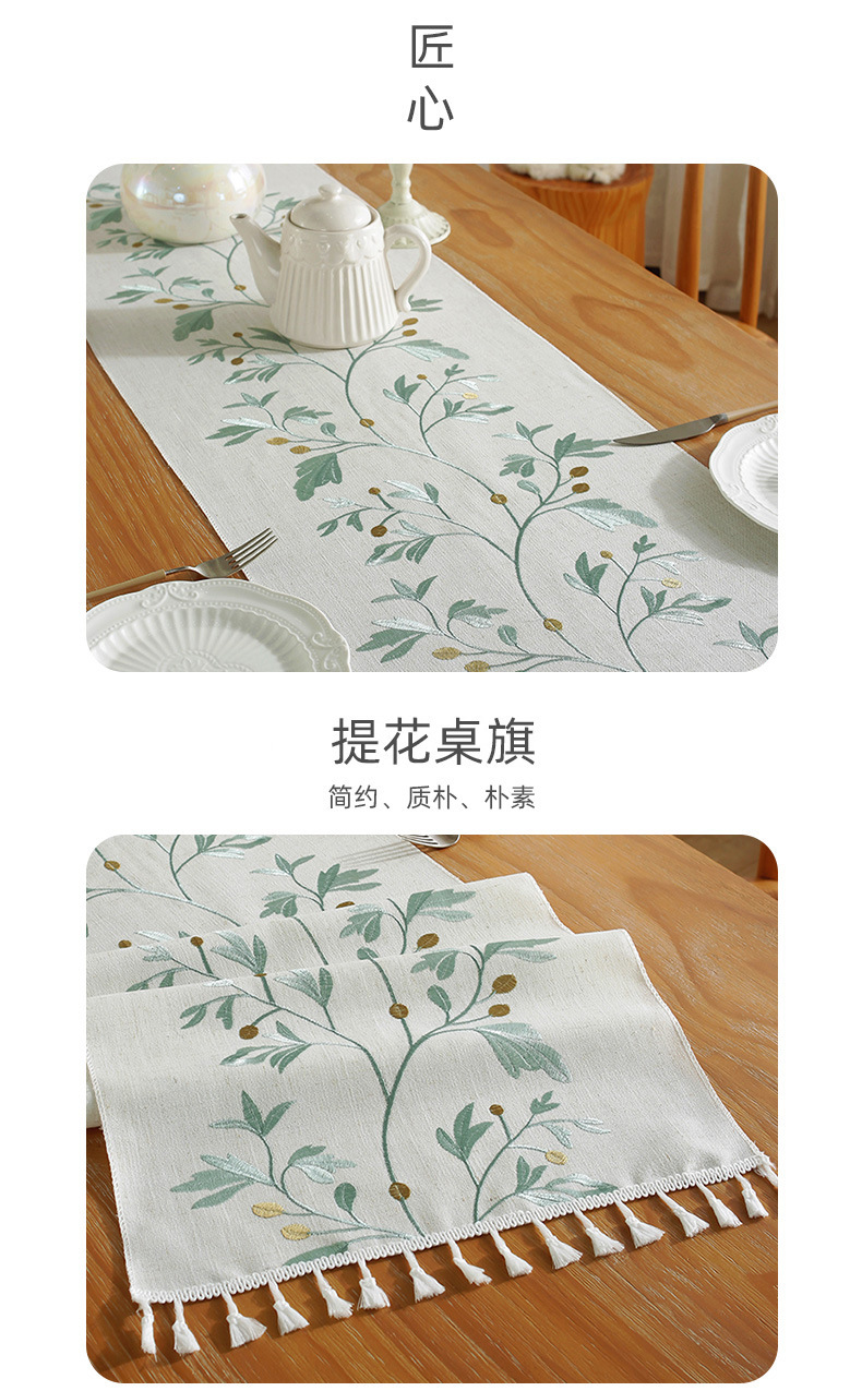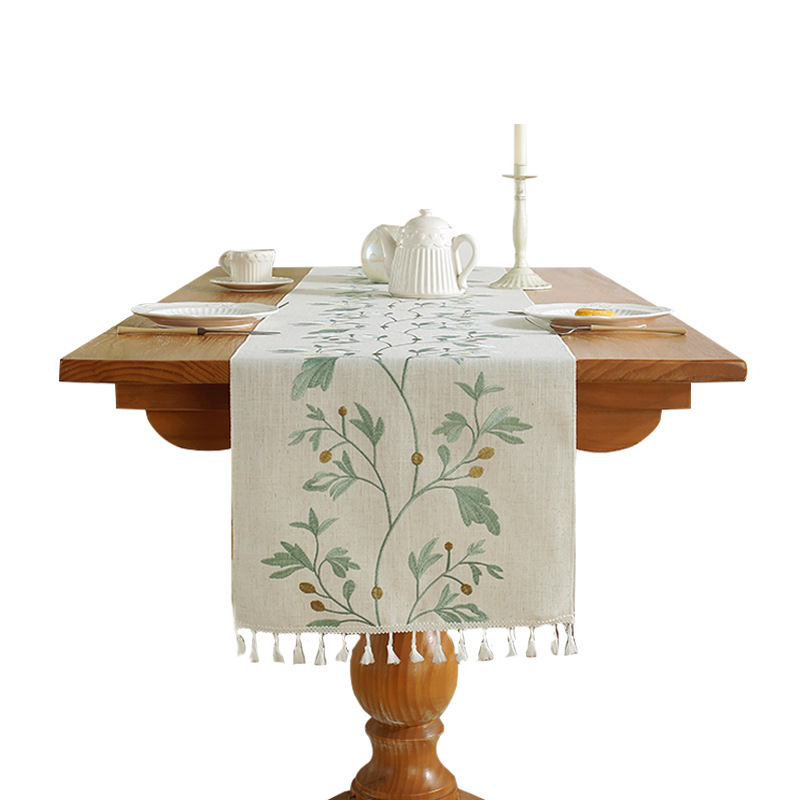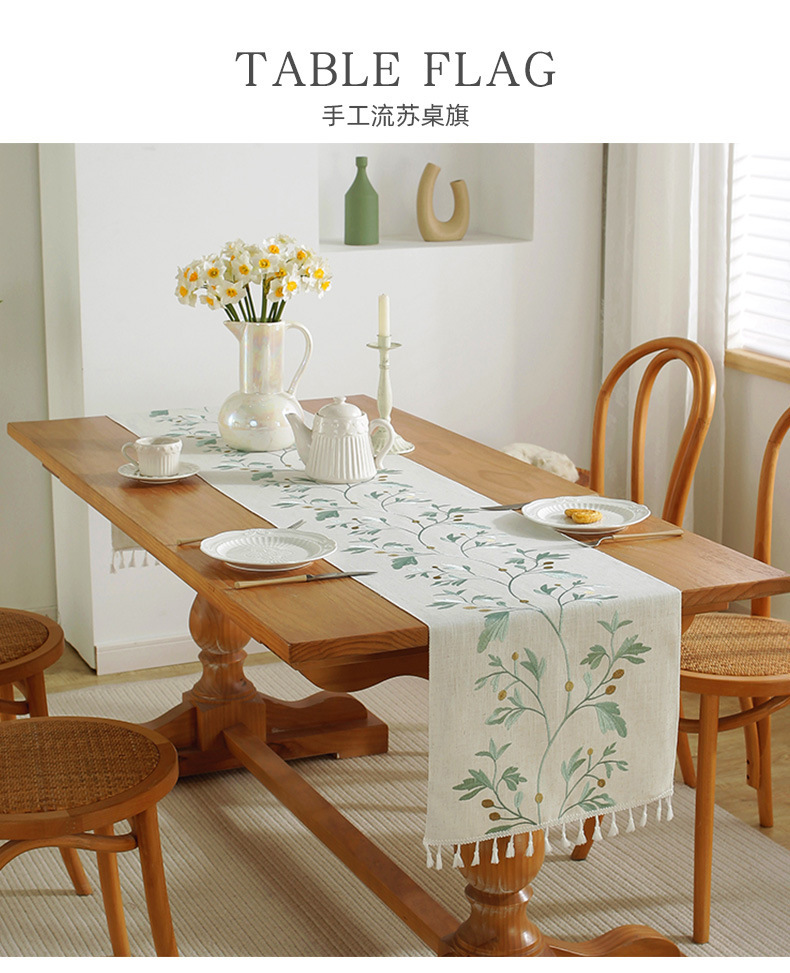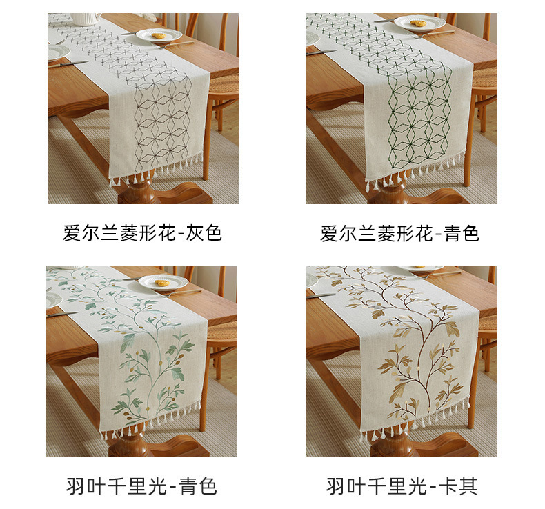 跨境欧美亚马逊新款简约棉麻刺绣桌旗流苏家用餐桌桌巾居家装饰