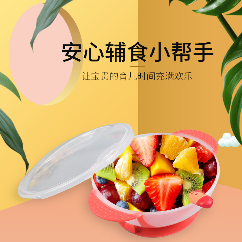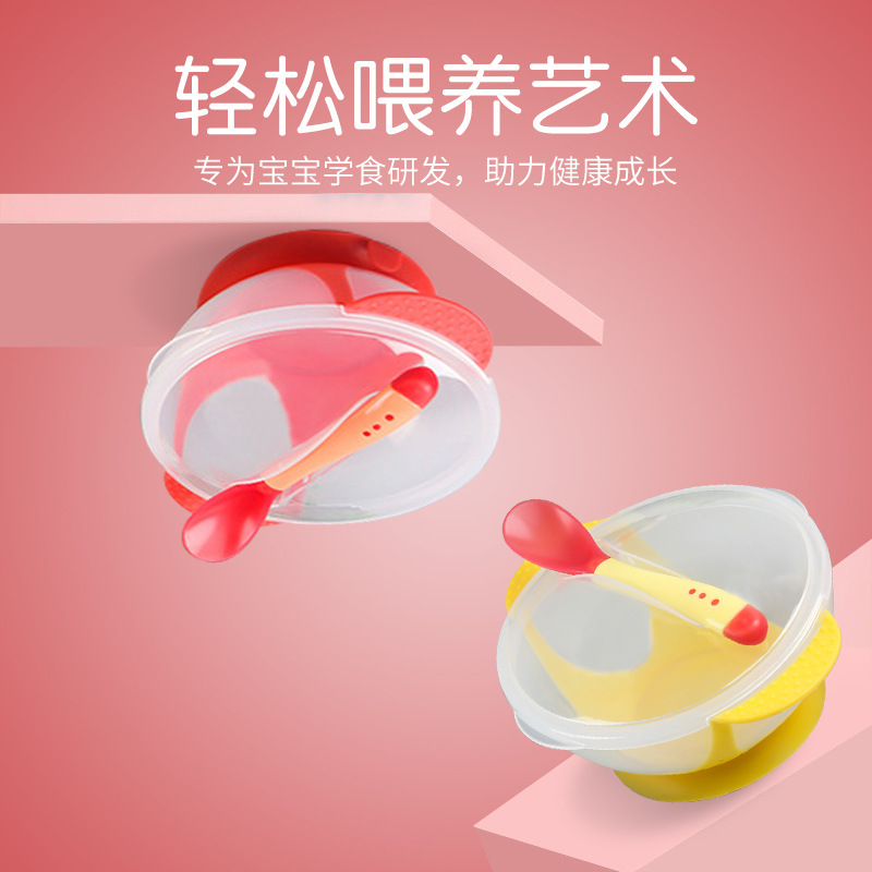 婴儿吸盘碗 吸盘碗 配感温勺 宝宝儿童训练碗 包胶碗 婴儿碗套装