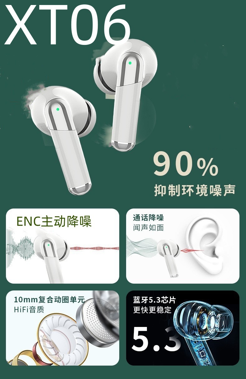 24年新款XT06双唛ENC降噪无线蓝牙耳机新款私模5.3入耳式蓝牙耳机