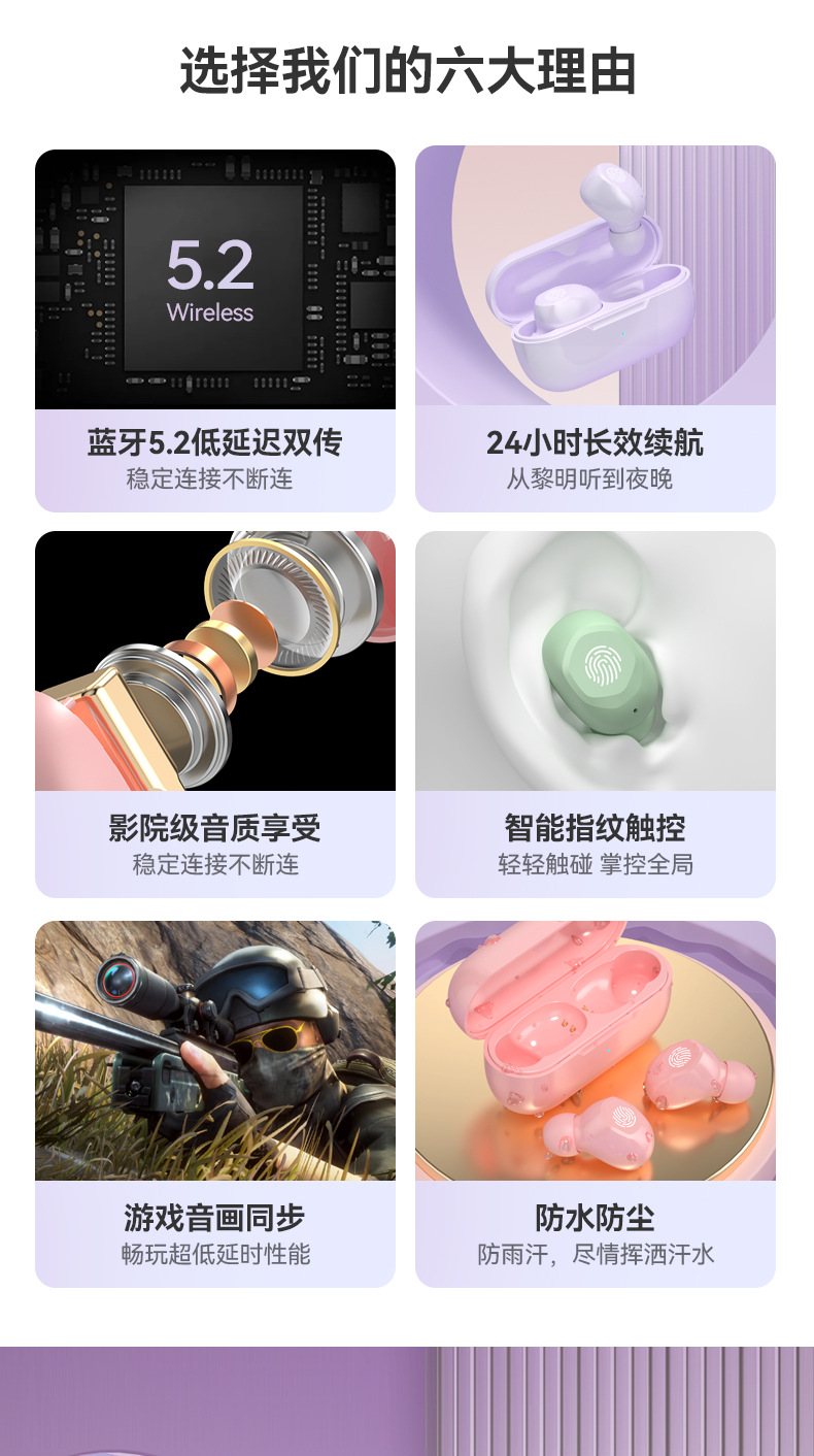 三代Pro3马卡龙蓝牙耳机 无线立体声双耳TWS运动入耳式耳机M12
