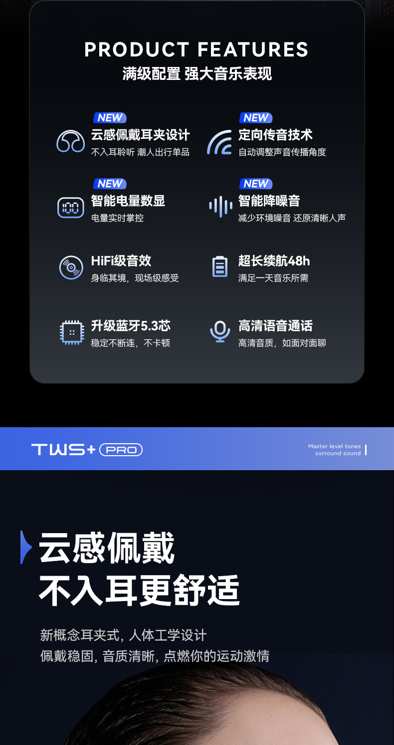 跨境新款M32真无线夹耳蓝牙耳机5.3骨传导双耳无感佩戴长续航耳机