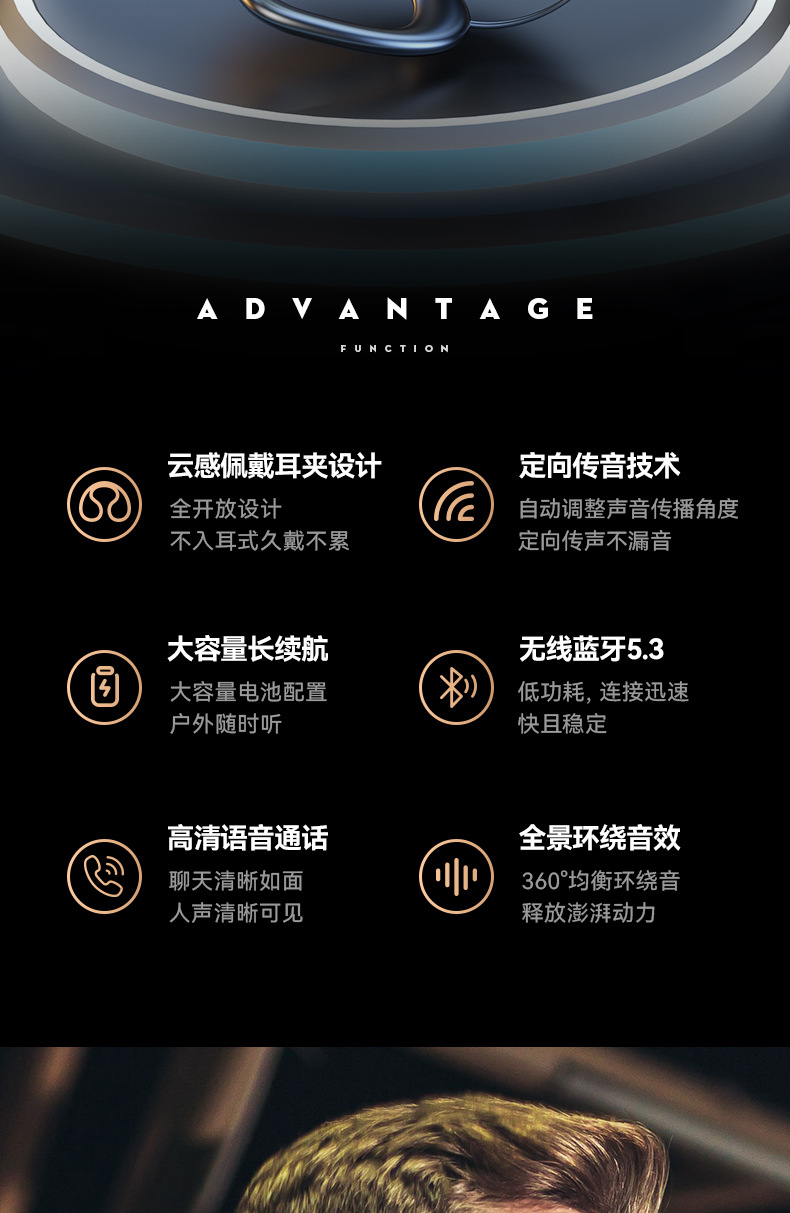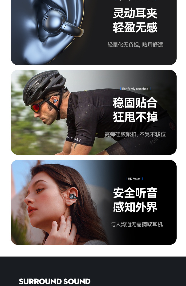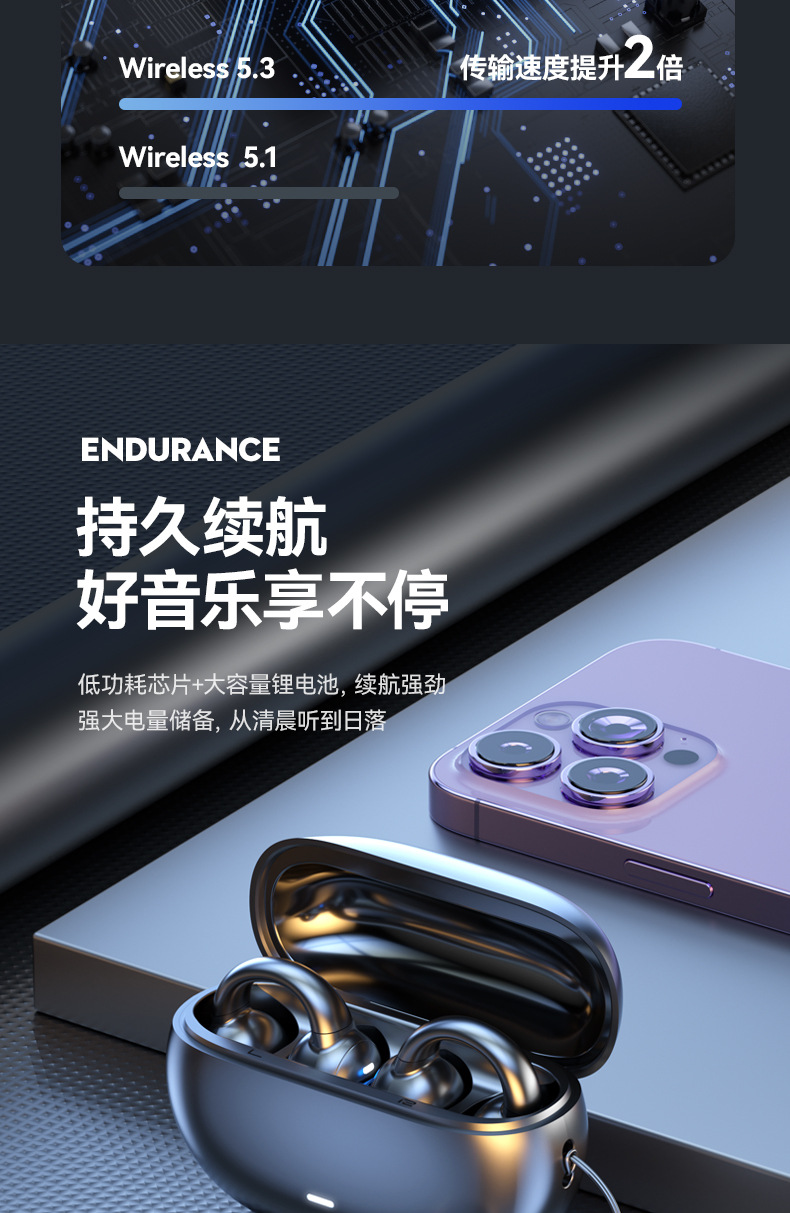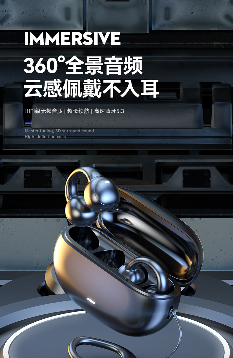 跨境新款私模骨传导蓝牙耳机5.3真无线夹耳式降噪长续航M55
