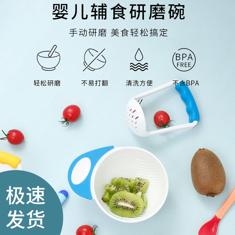 宝宝食物研磨碗硅胶勺婴儿水果辅食工具研磨器硅胶勺套装儿童辅食