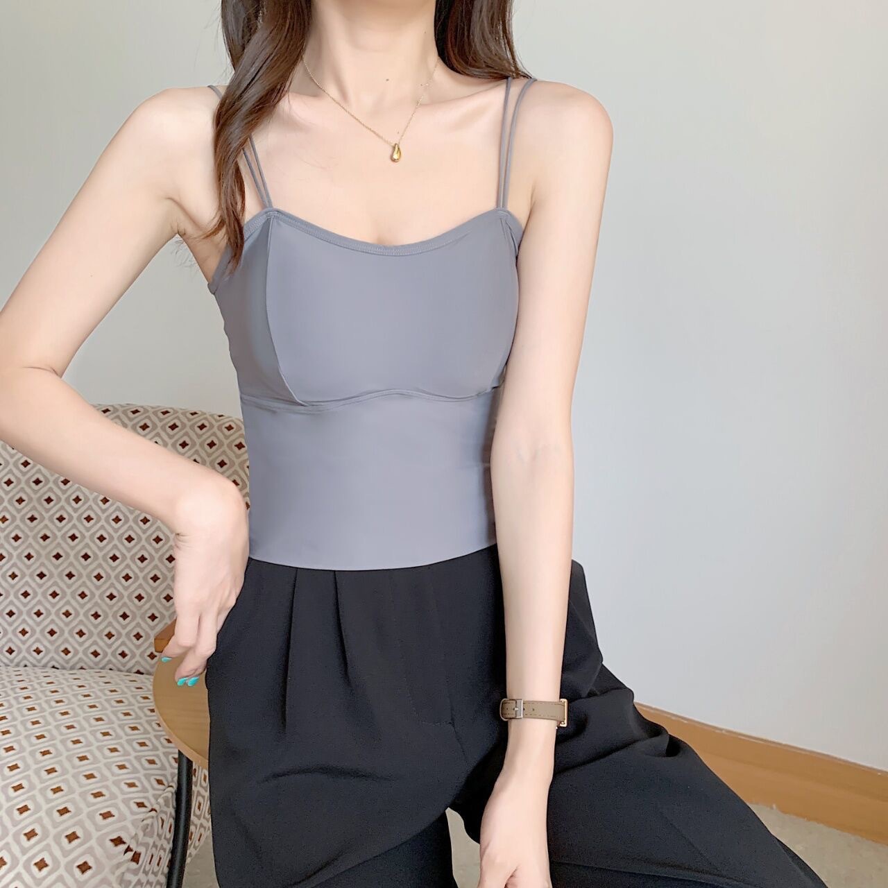 直播爆款冰丝带胸垫加厚吊带背心女大U美背抹胸聚拢运动打底内衣