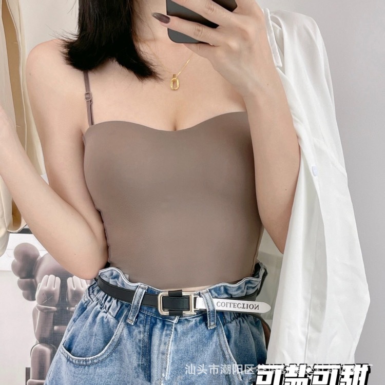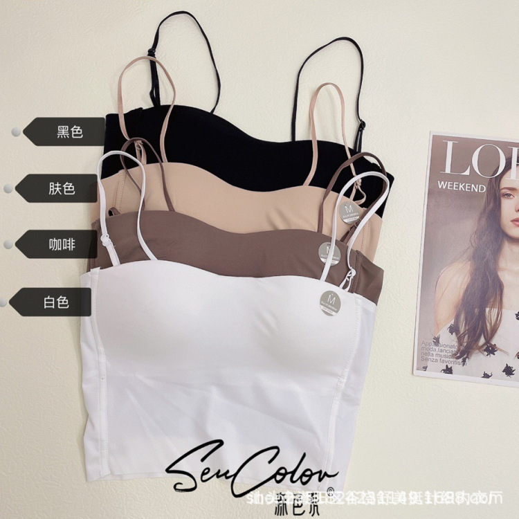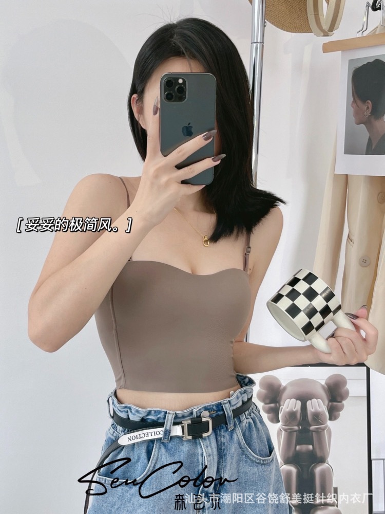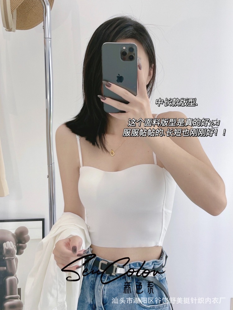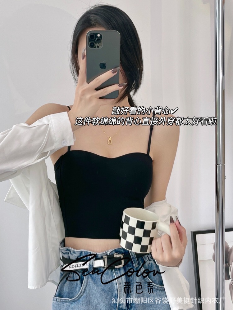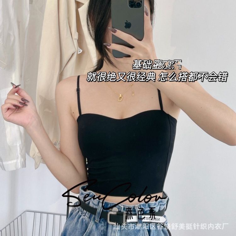 直播爆款森色吊带美背心可调节细肩带百搭带固定胸垫短款打底内衣