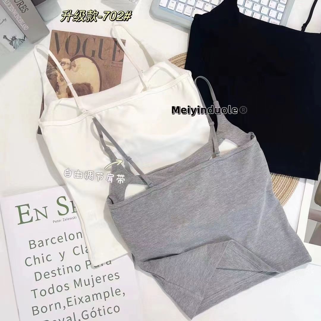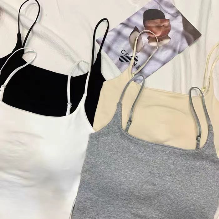 直播爆款纯色百搭吊带背心女固定杯带胸垫女新款韩版修身美背上衣