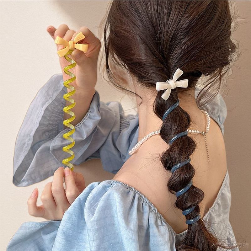 电话线发圈头绳女款2024新款高级感春夏可爱蝴蝶结泡泡辫编发神器