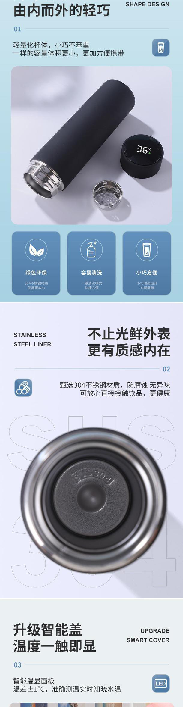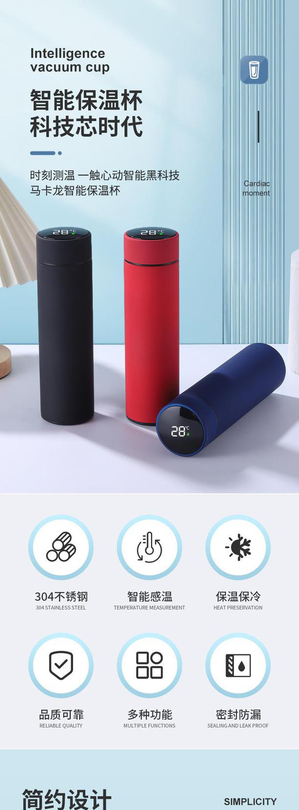智能温度保温杯水杯304不锈钢橡胶漆测温杯商务礼品刻字LOGO直杯
