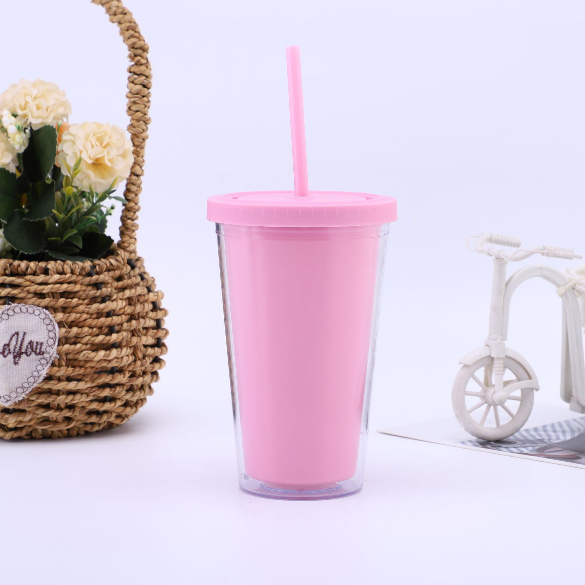 ins马卡龙可爱高颜值夏日纯色男女大容量塑料吸管杯水杯随手杯