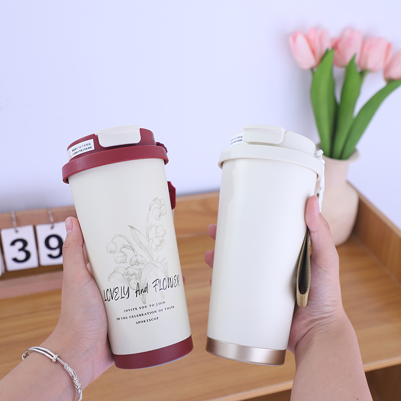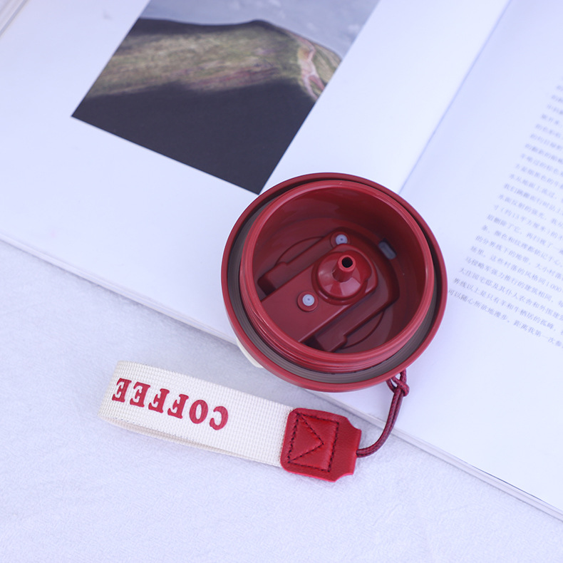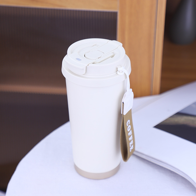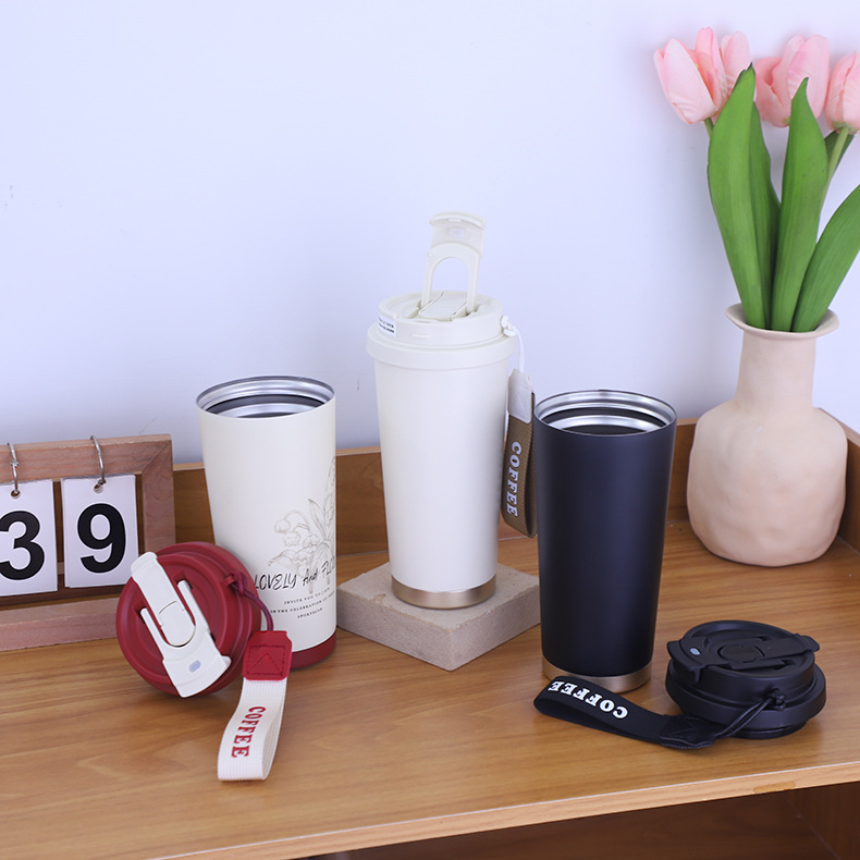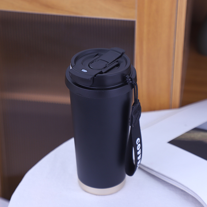 新款简约316不锈钢咖啡杯车载双饮吸管保温水杯带提绳便携户外杯