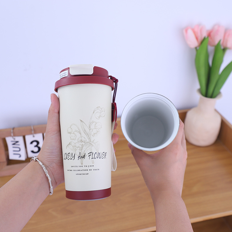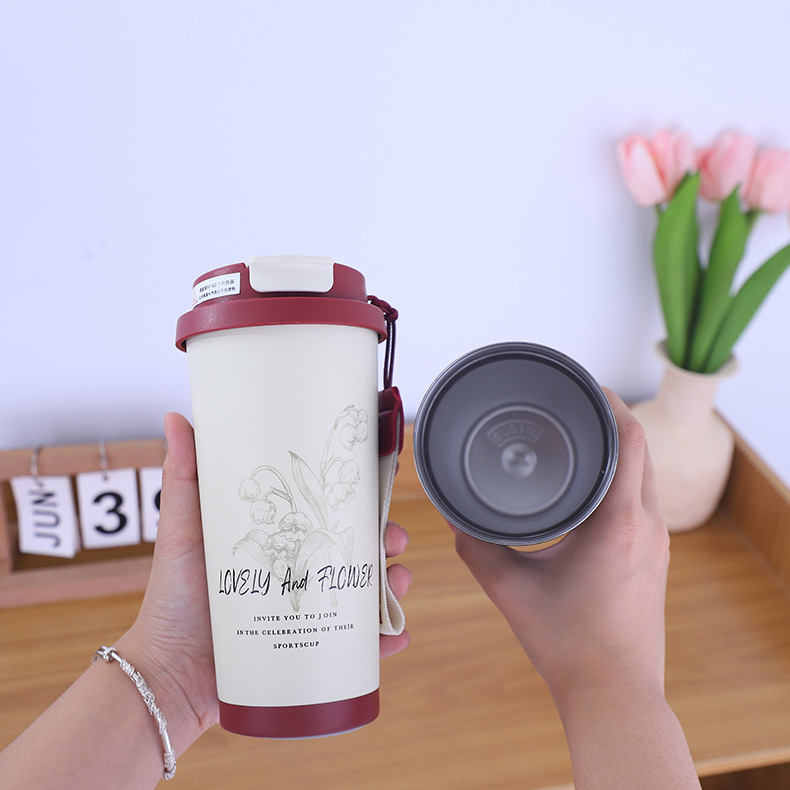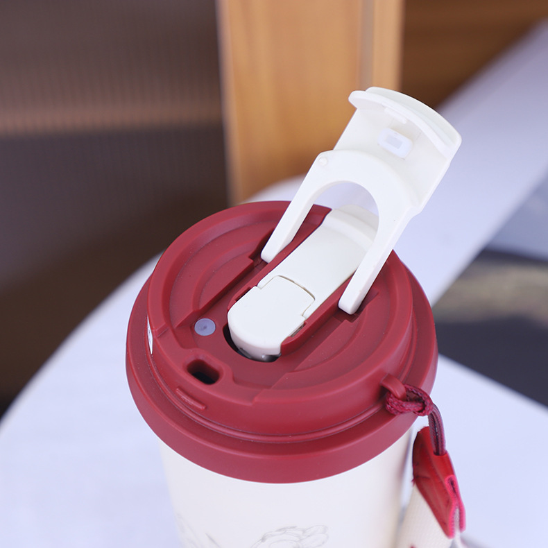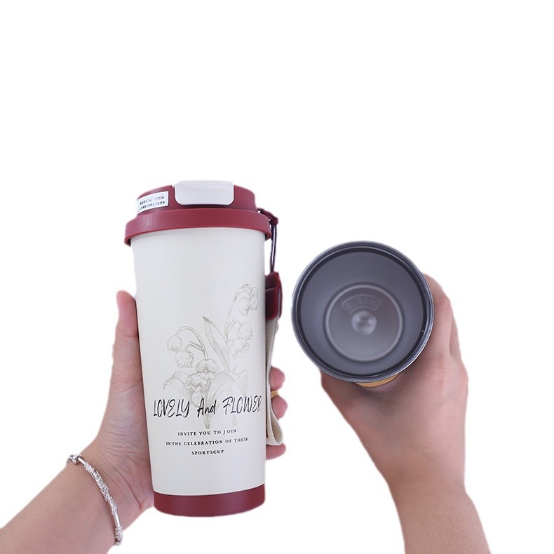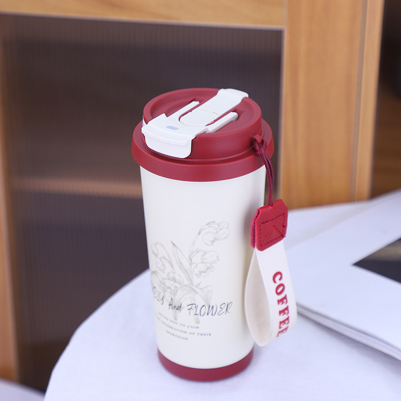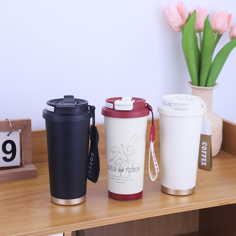 新款简约316不锈钢咖啡杯车载双饮吸管保温水杯带提绳便携户外杯