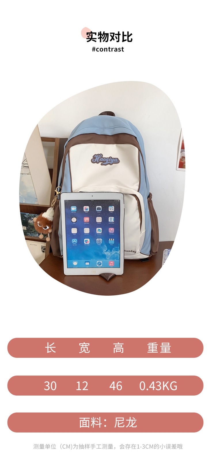 ins女生出游高颜值小众撞色双肩包户外运动休闲轻便背包