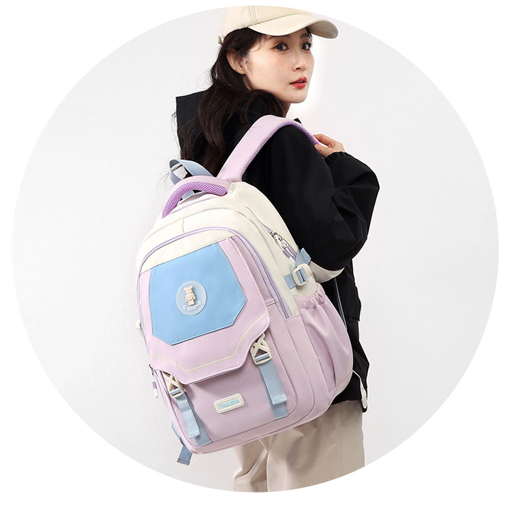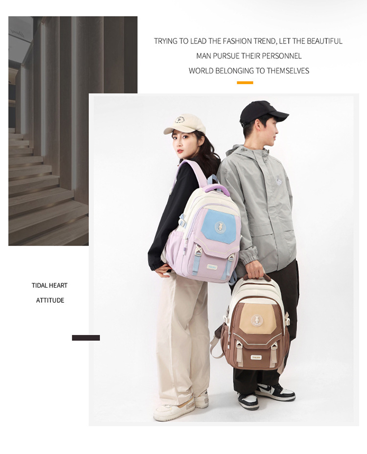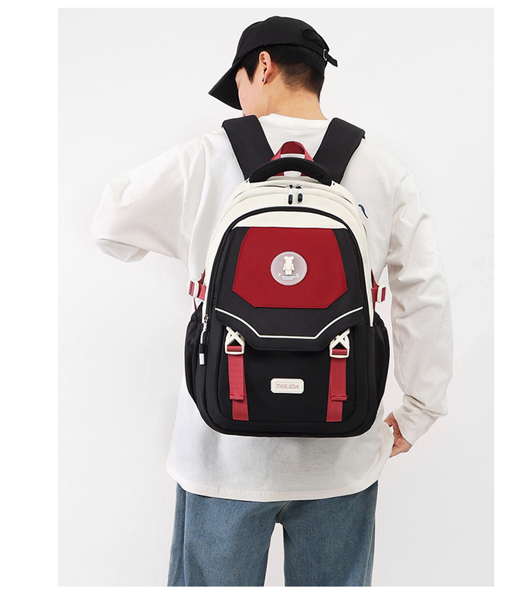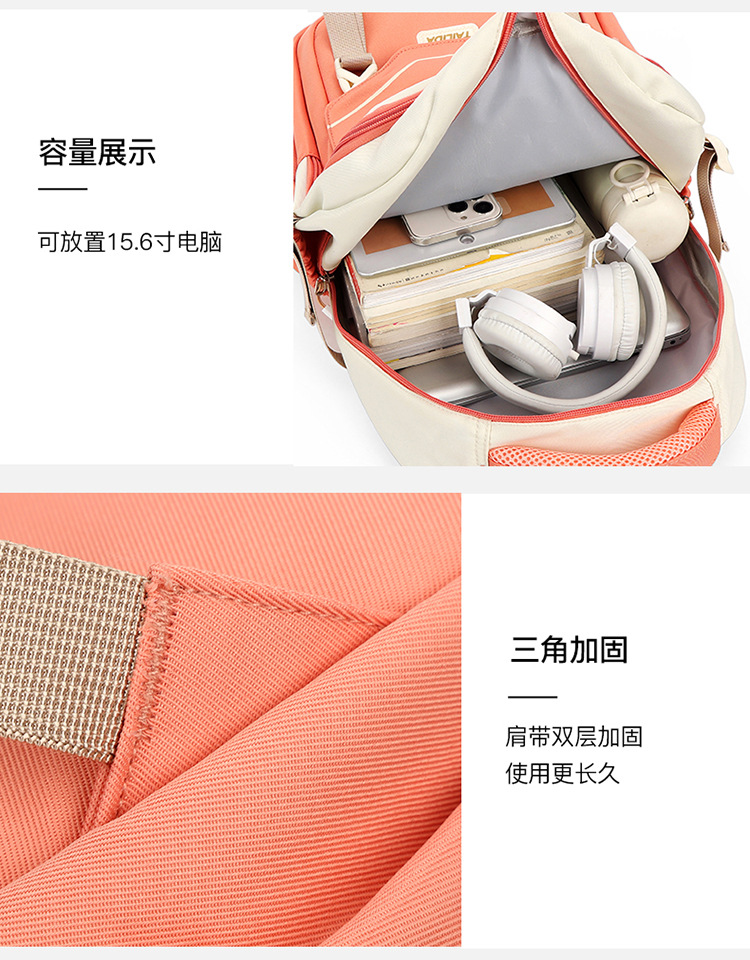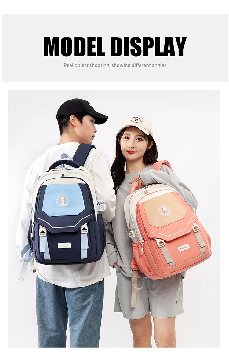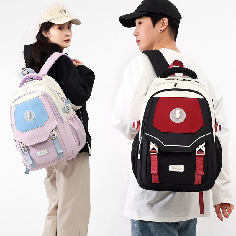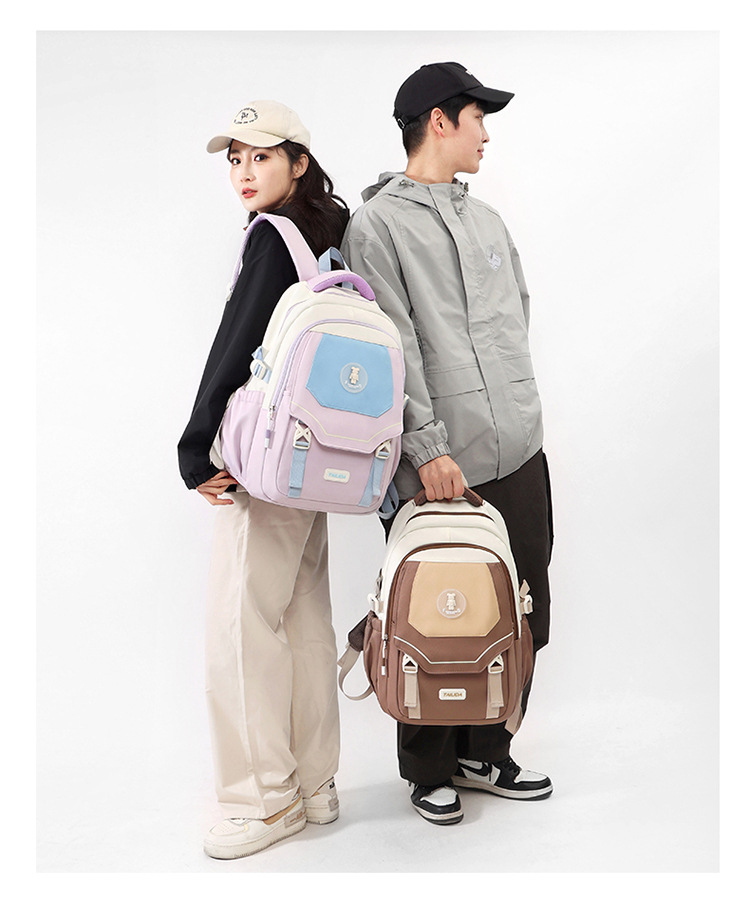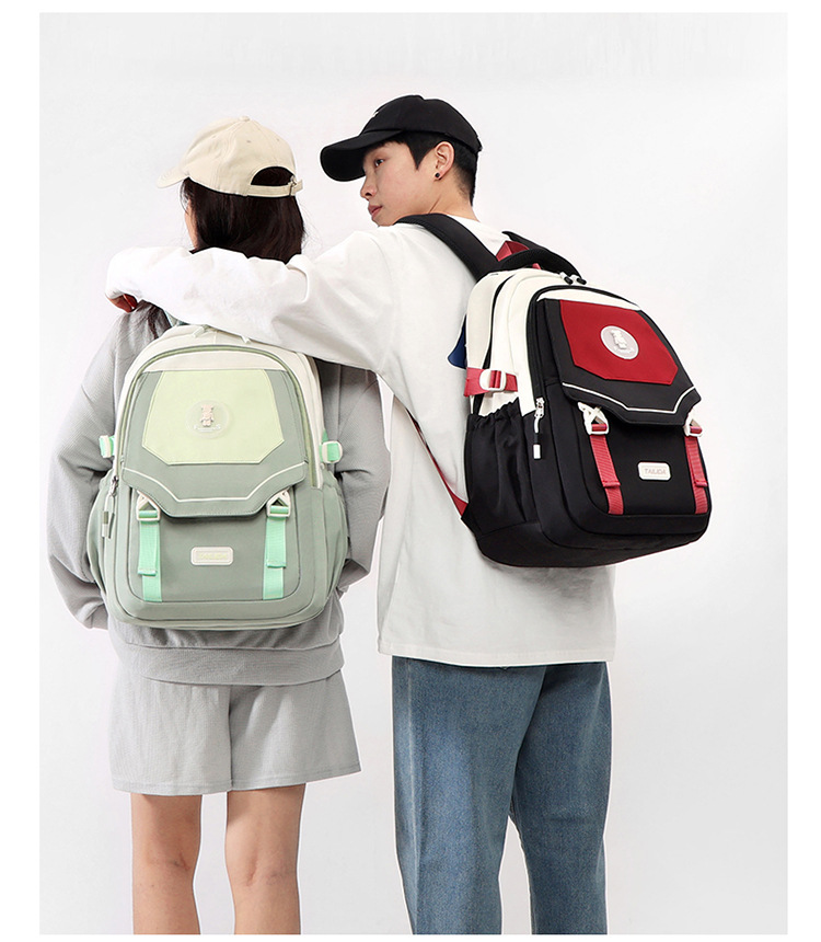 学生书包2024新款男女通用撞色轻便尼龙布旅行双肩背包