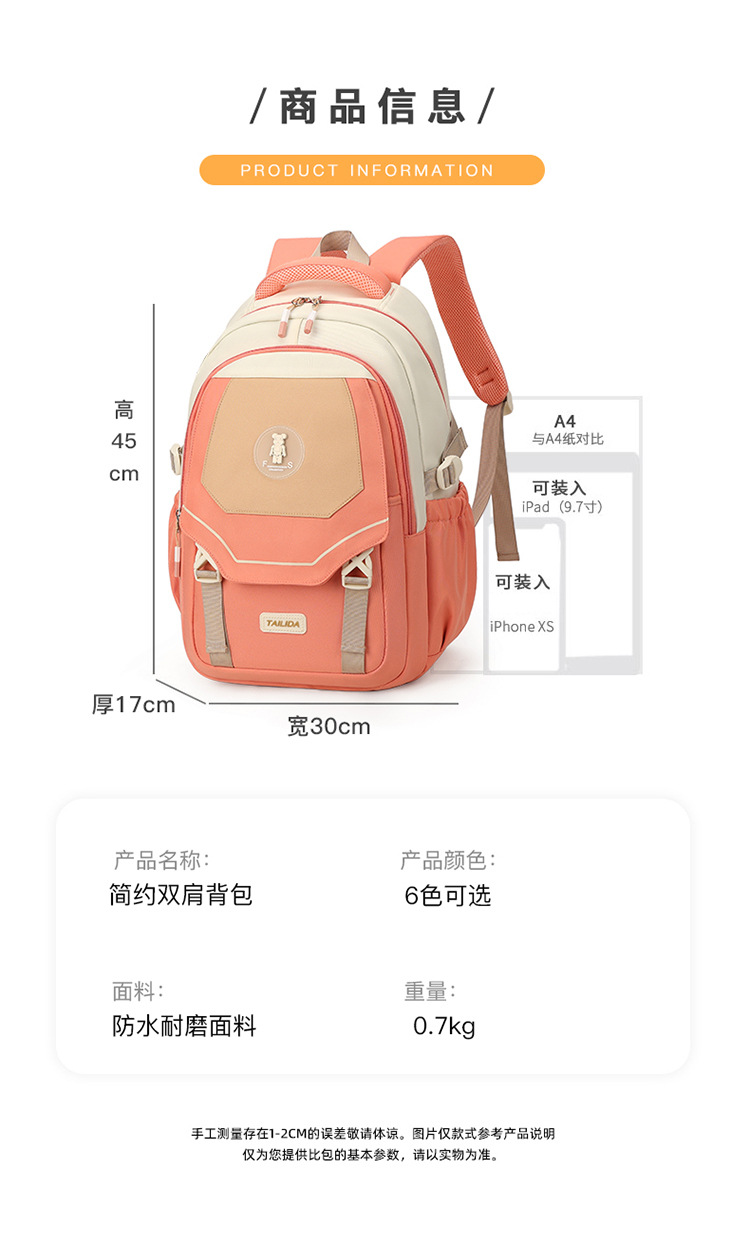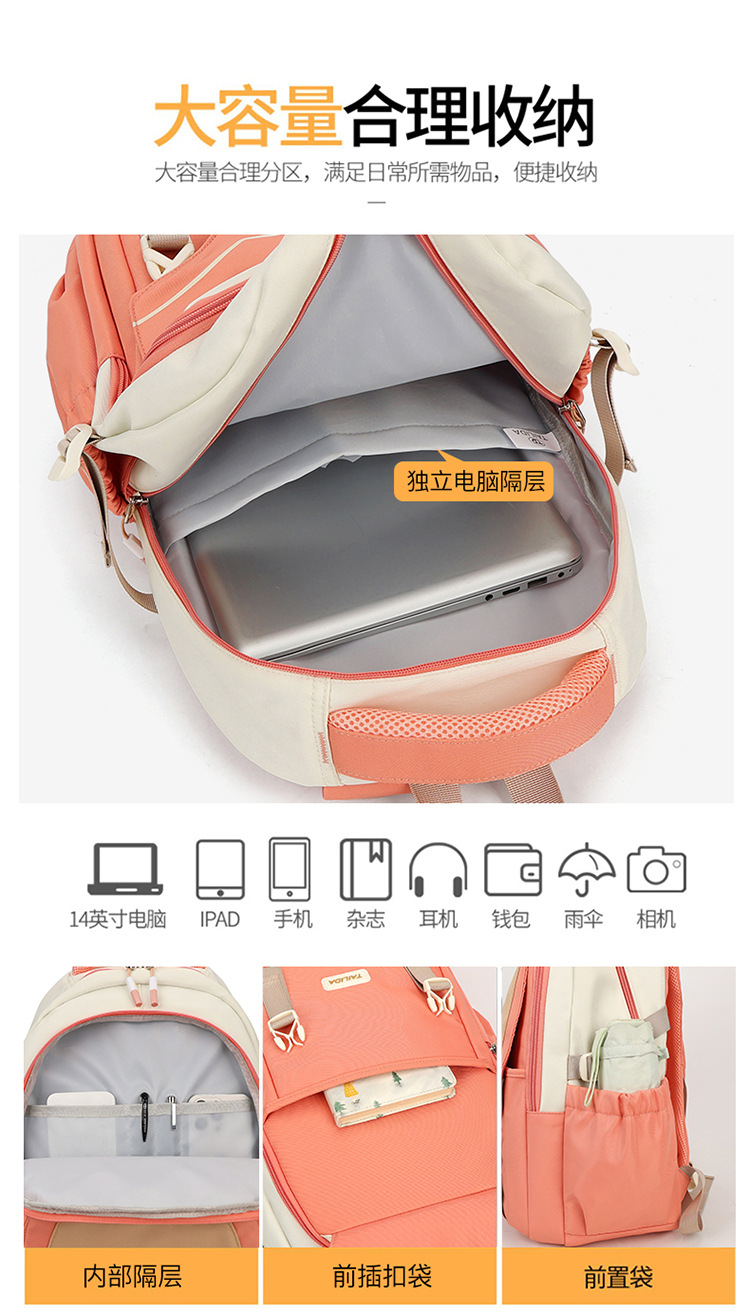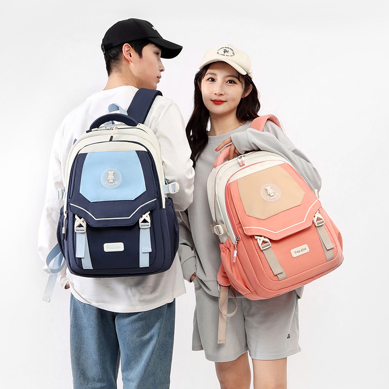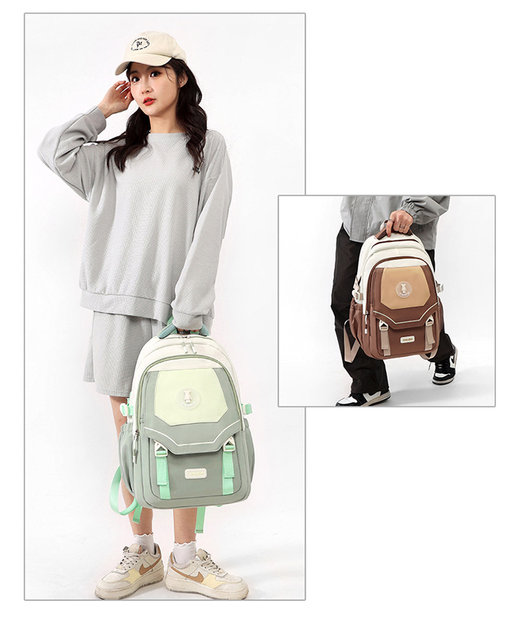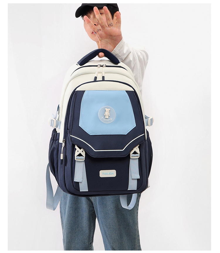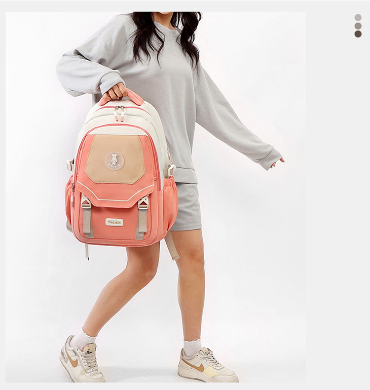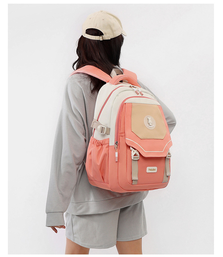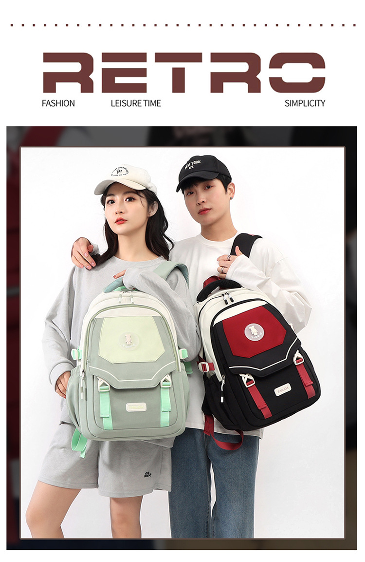 学生书包2024新款男女通用撞色轻便尼龙布旅行双肩背包
