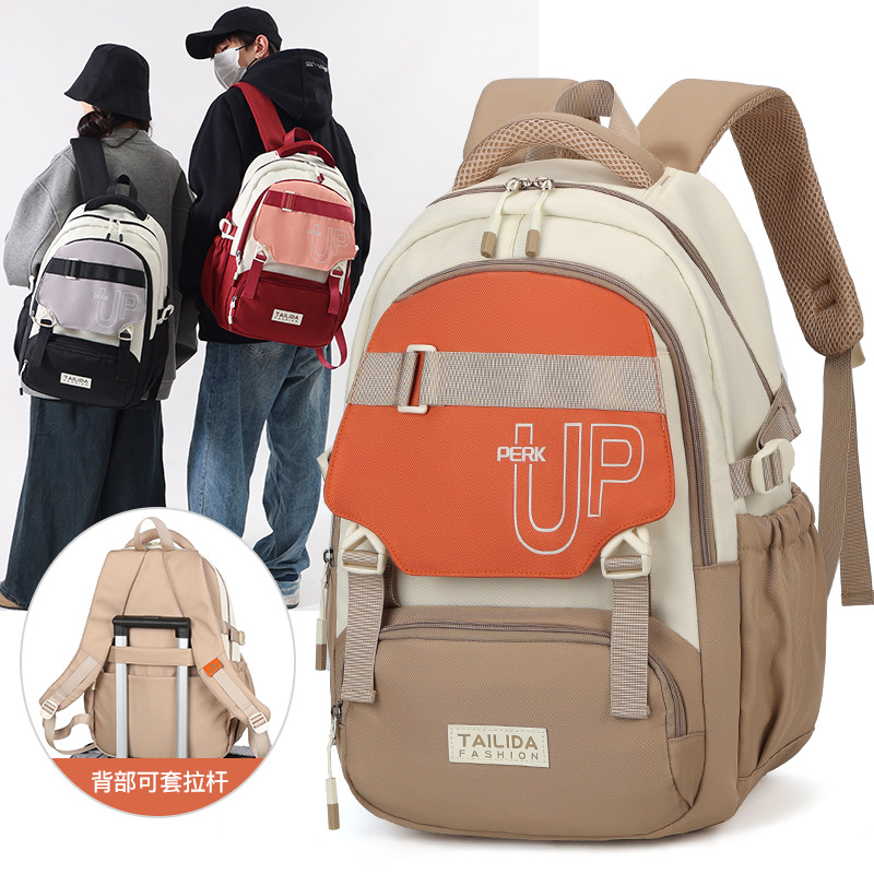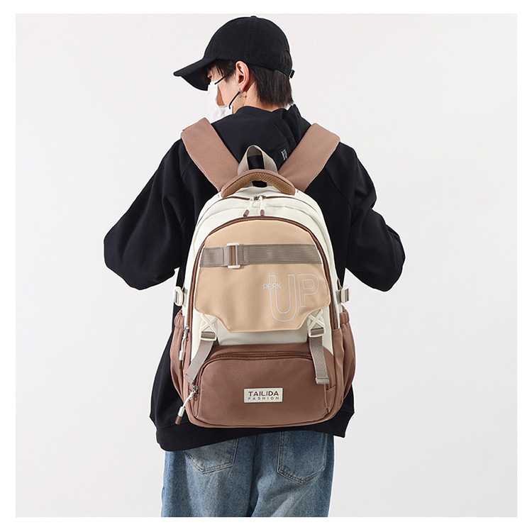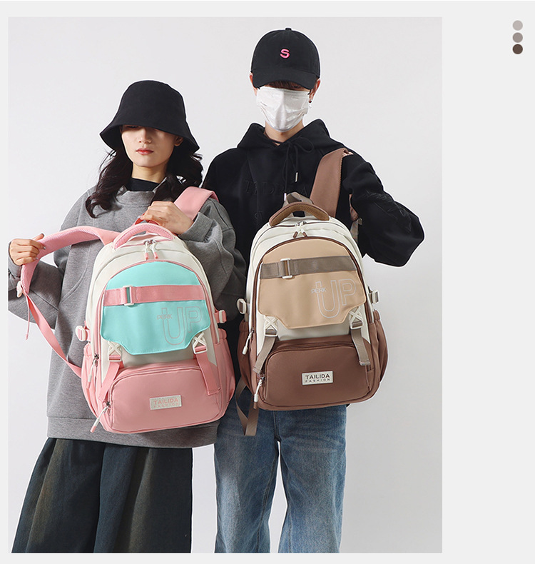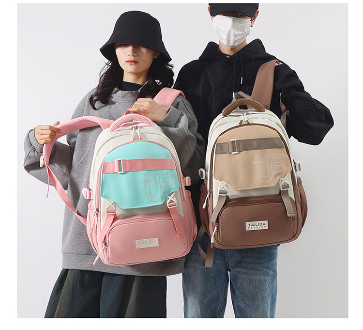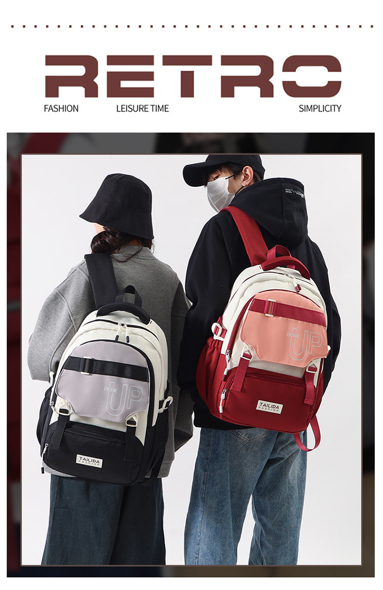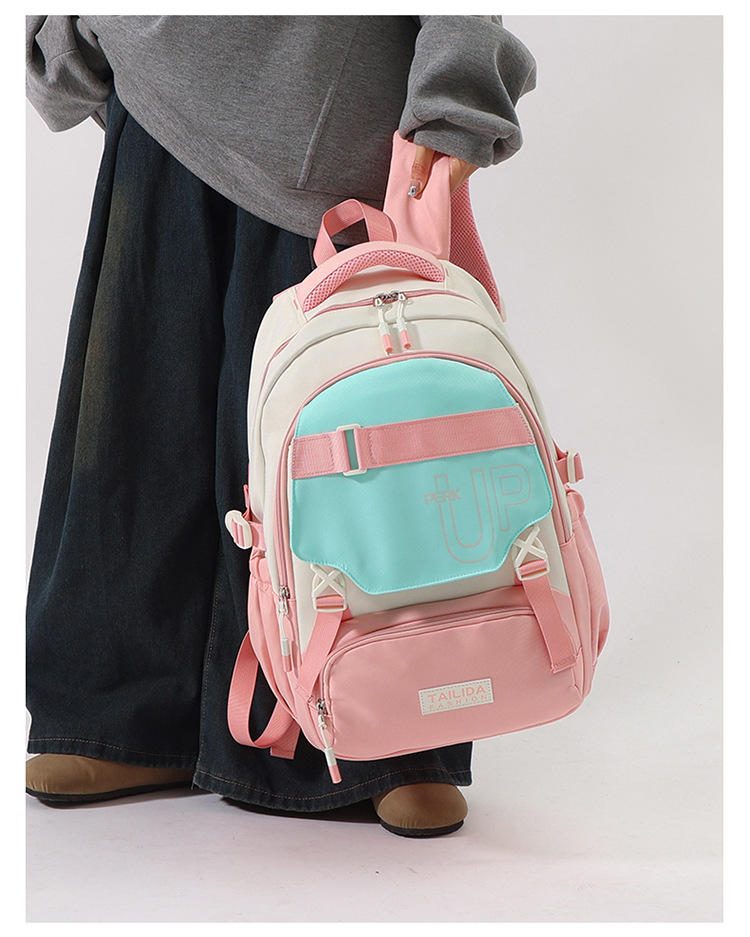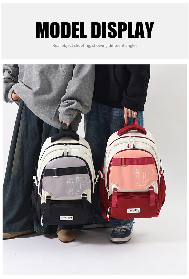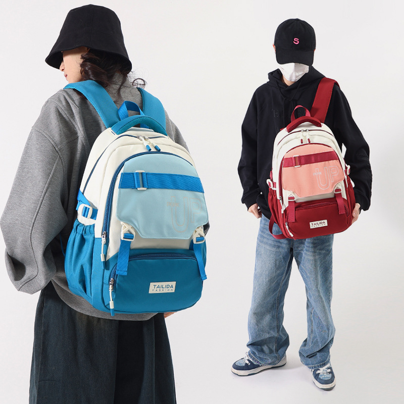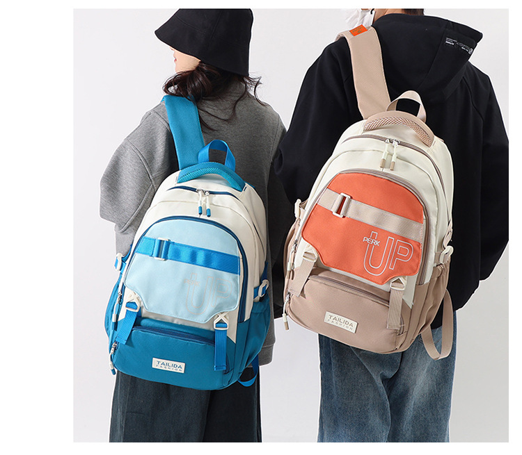 学生书包2024新款男女通用撞色轻便牛津布旅行双肩背包