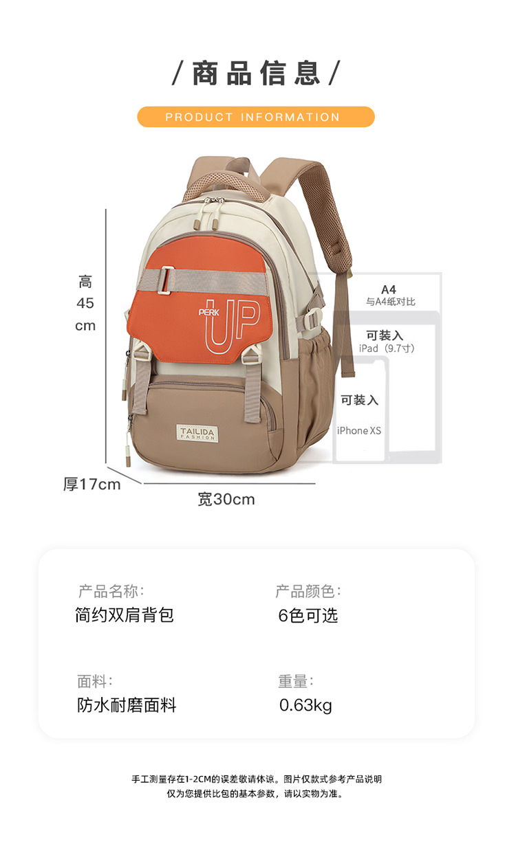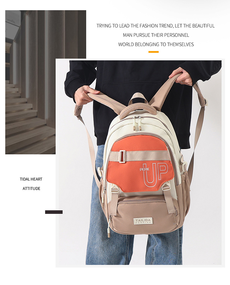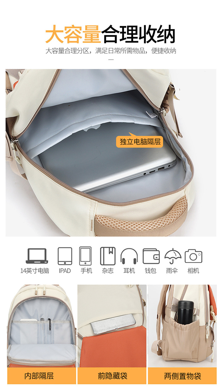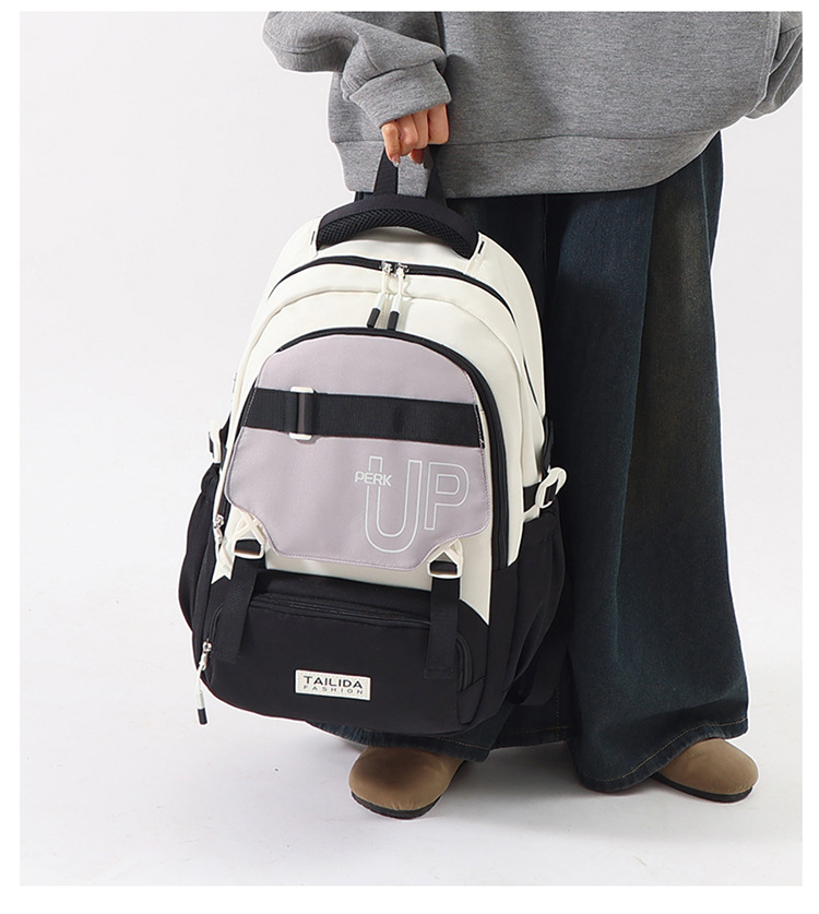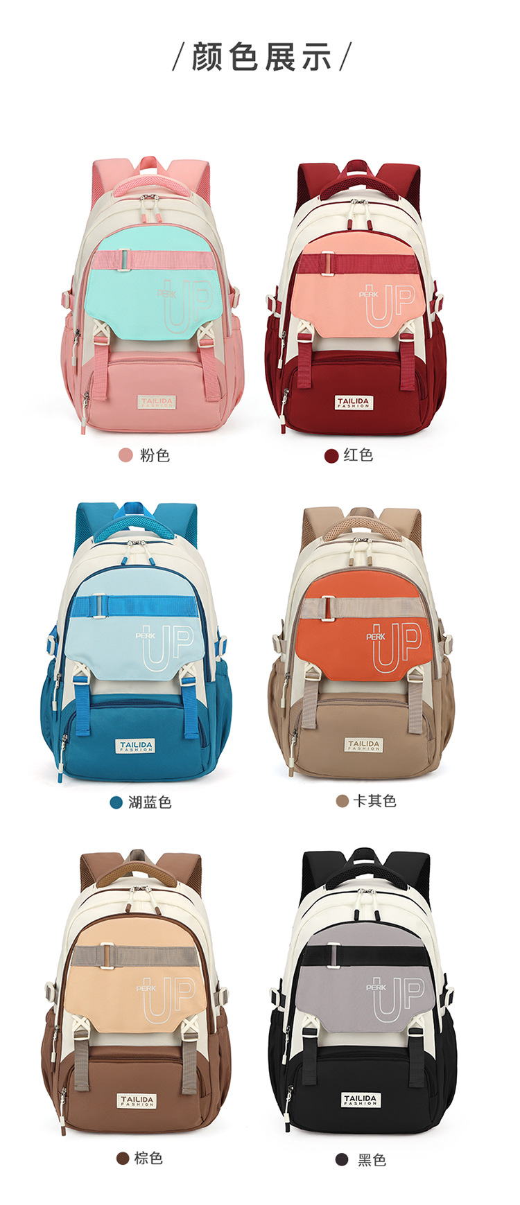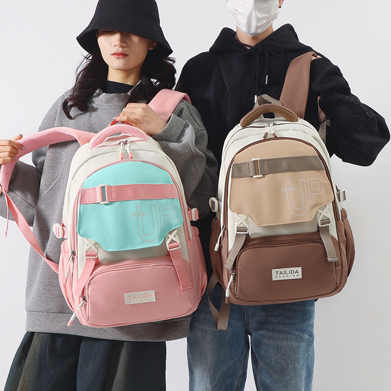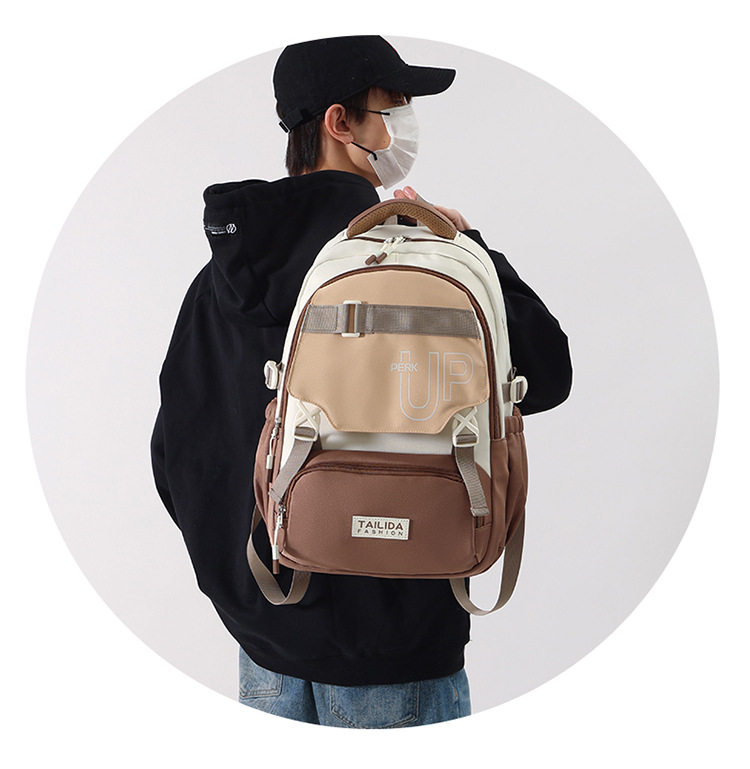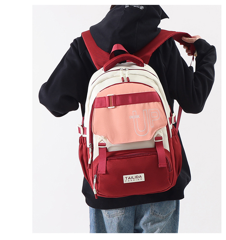 学生书包2024新款男女通用撞色轻便牛津布旅行双肩背包