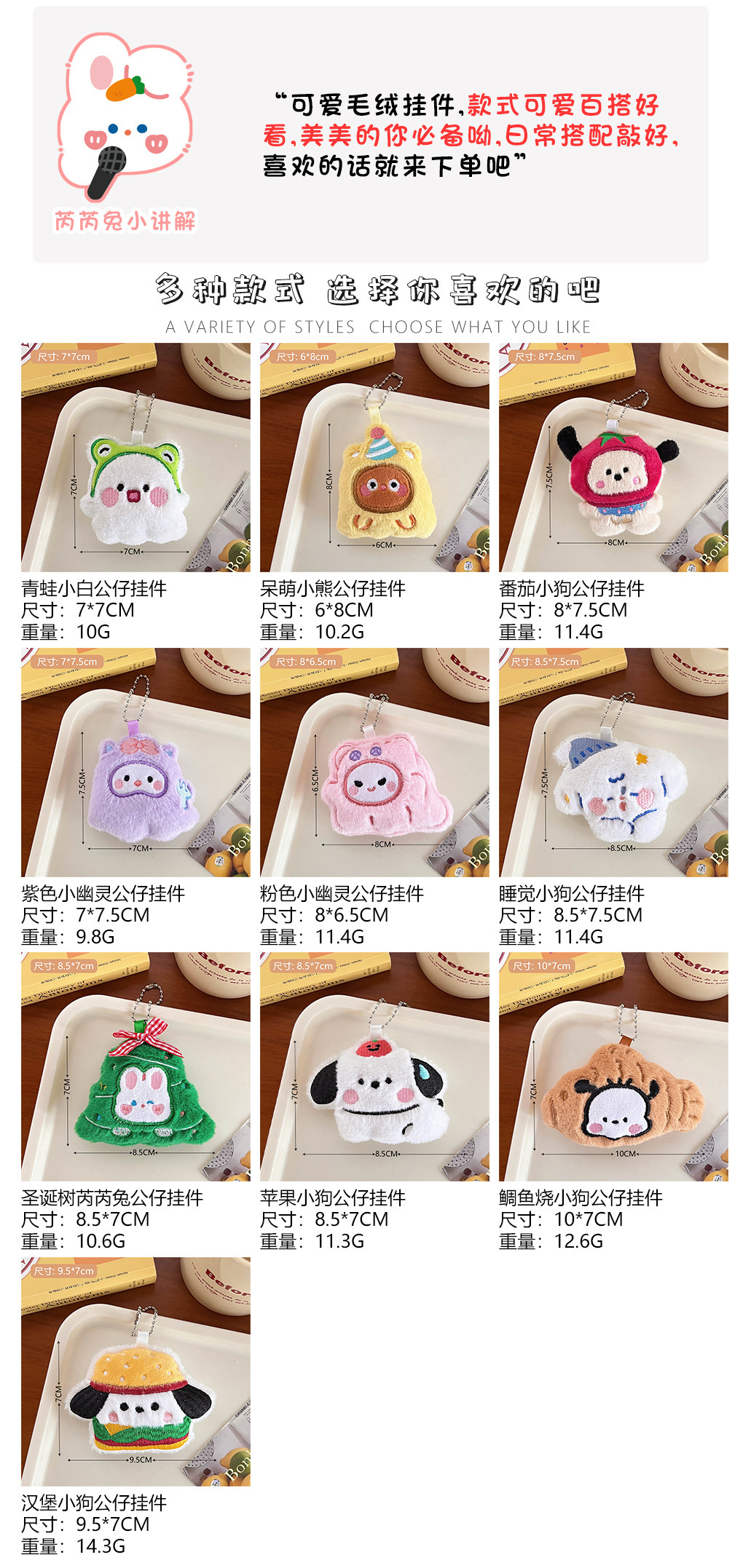 腾亿原创可爱卡通毛绒小狗公仔挂件少女心包包钥匙扣装饰饰品批发