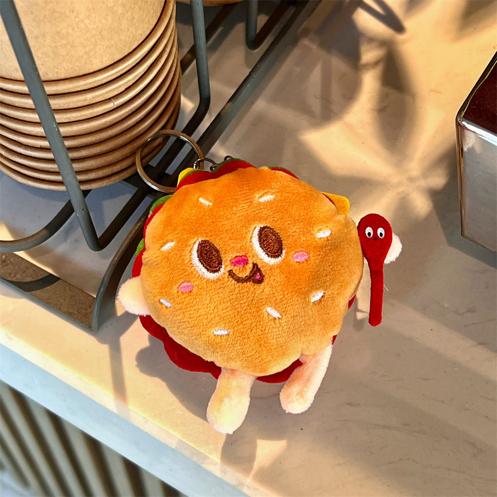 可爱创意薯条汉堡公仔挂件背包情侣款毛绒挂饰少女车钥匙扣小玩偶