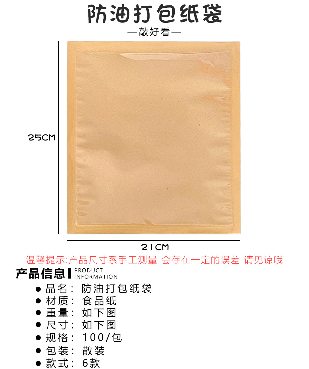 一次性密封面包袋烘焙食品包装袋防油纸吐司袋三明治甜甜圈饼干袋