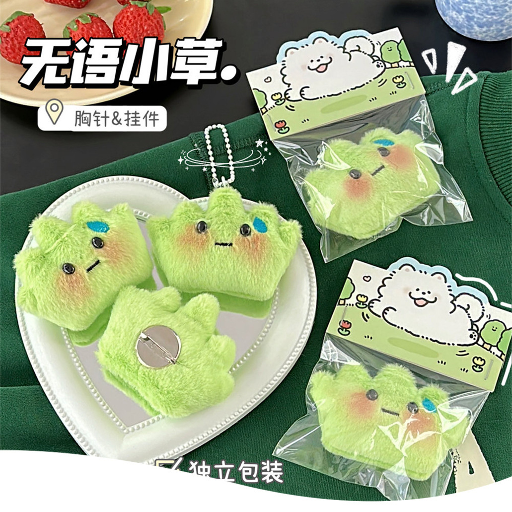 可爱毛绒无语小草挂件ins甜美风少女礼品卡通胸针毛茸茸挂饰批发