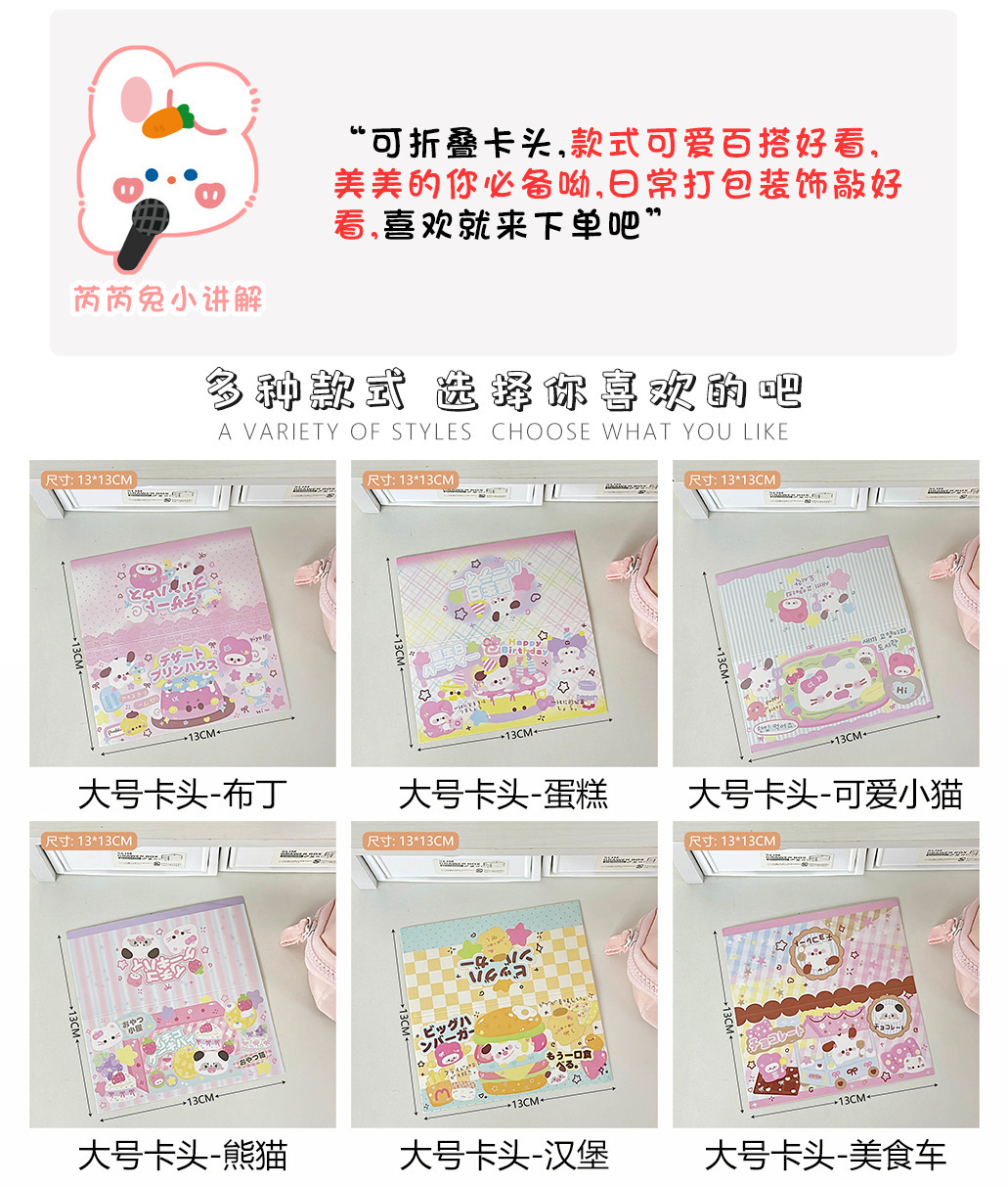 创意可爱卡通对折大号打包卡头卡套爱豆小卡装饰材料礼物包装出卡