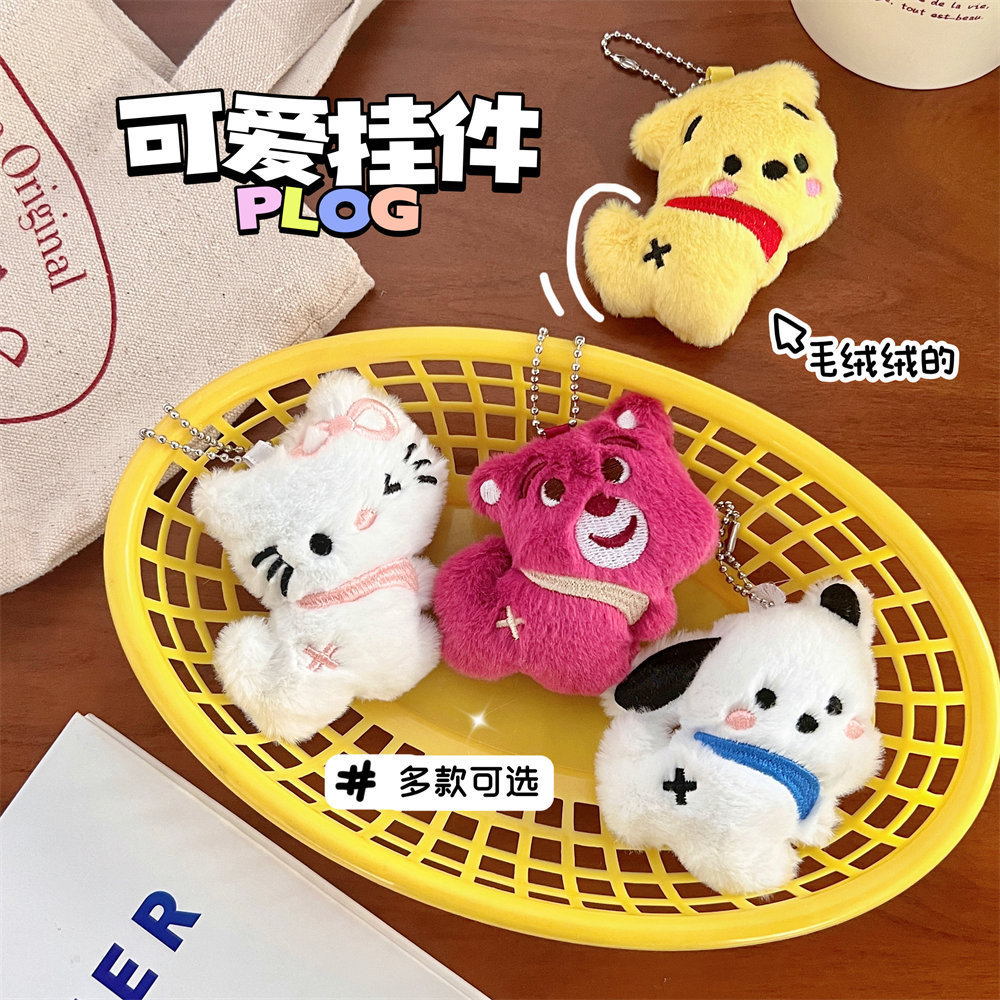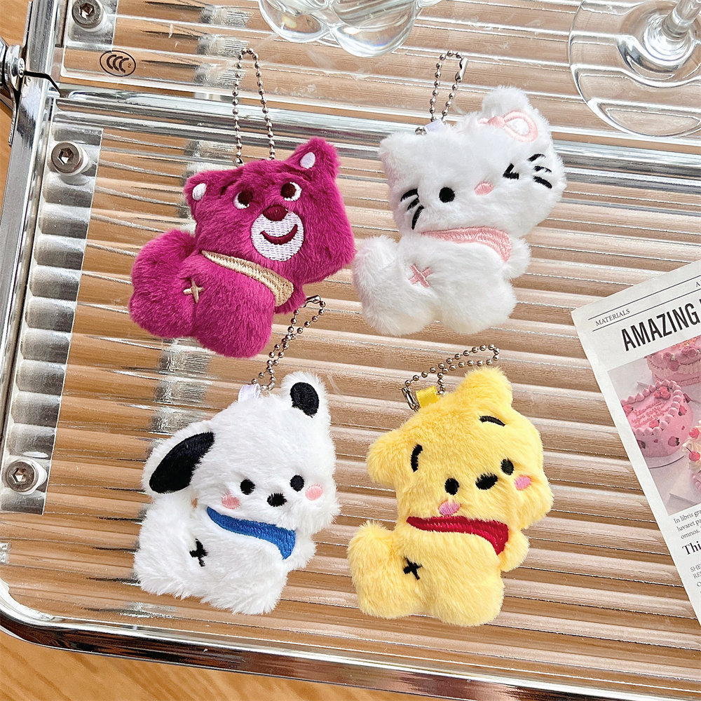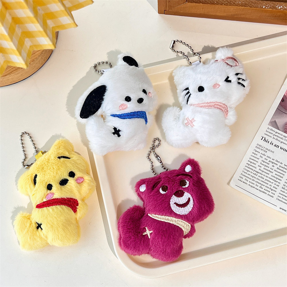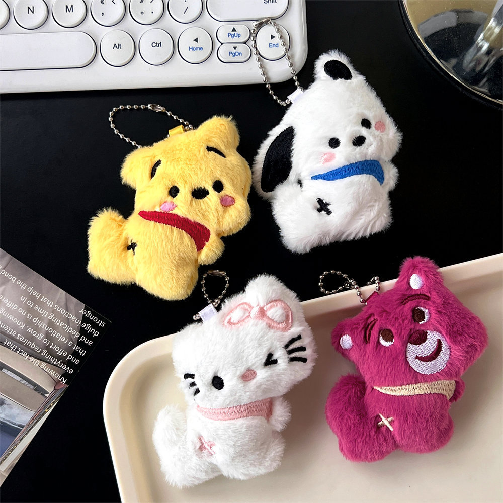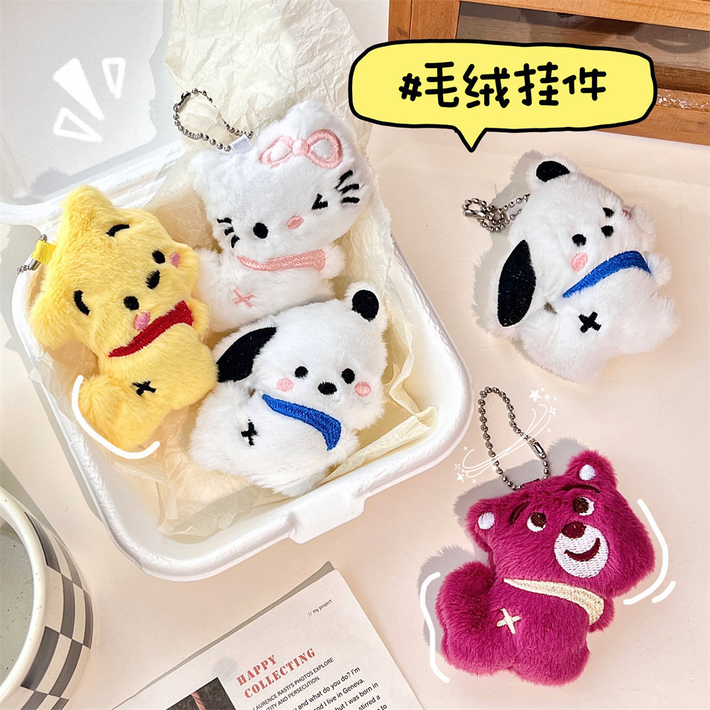 可爱卡通毛绒小熊小狗钥匙扣挂件少女心装饰玩偶公仔包包挂饰批发