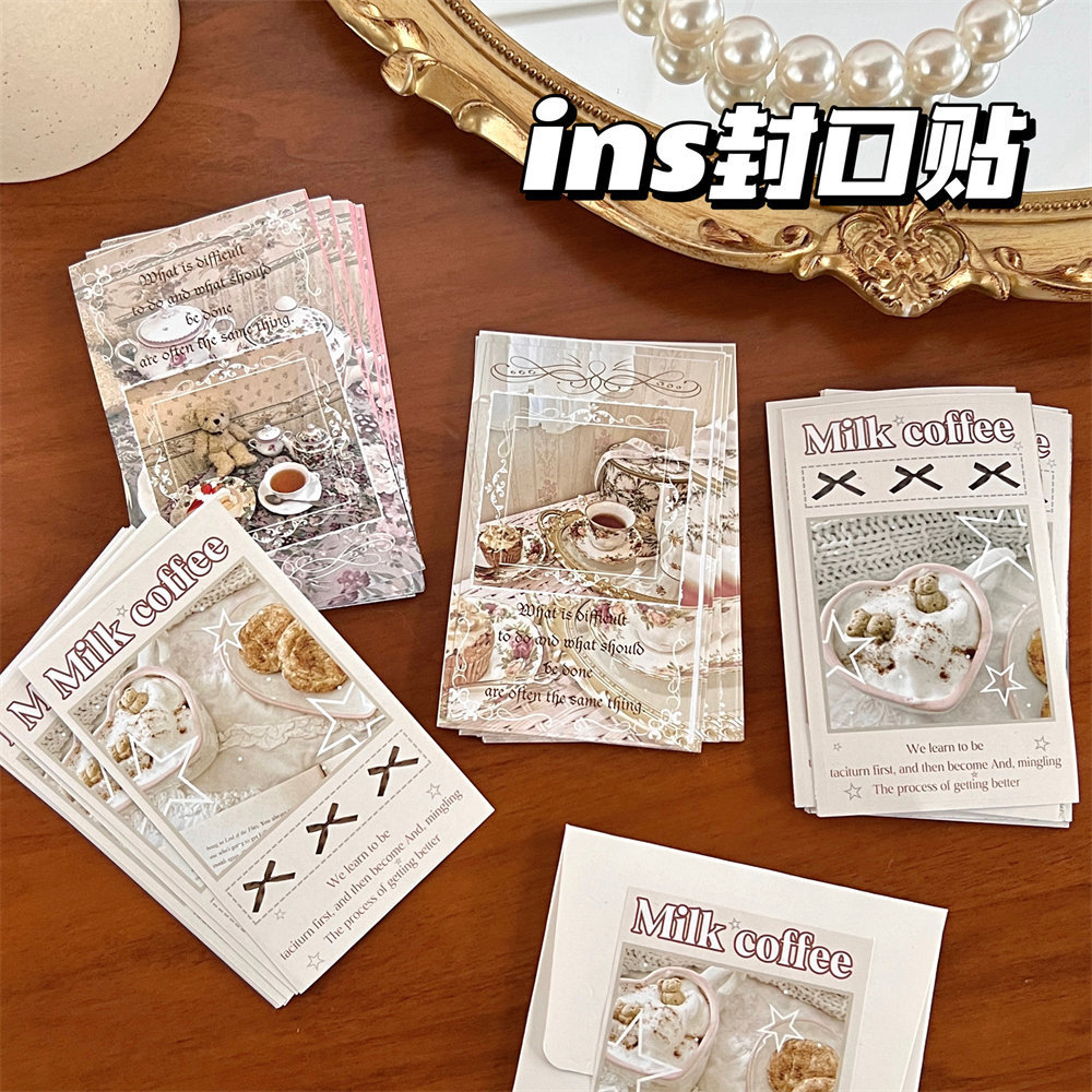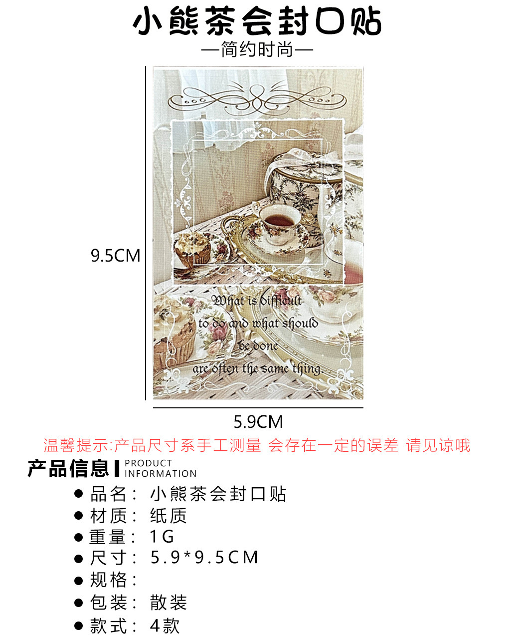 时尚复古小熊茶会封口贴高颜值手账装饰贴纸飞机盒不干胶封口贴纸