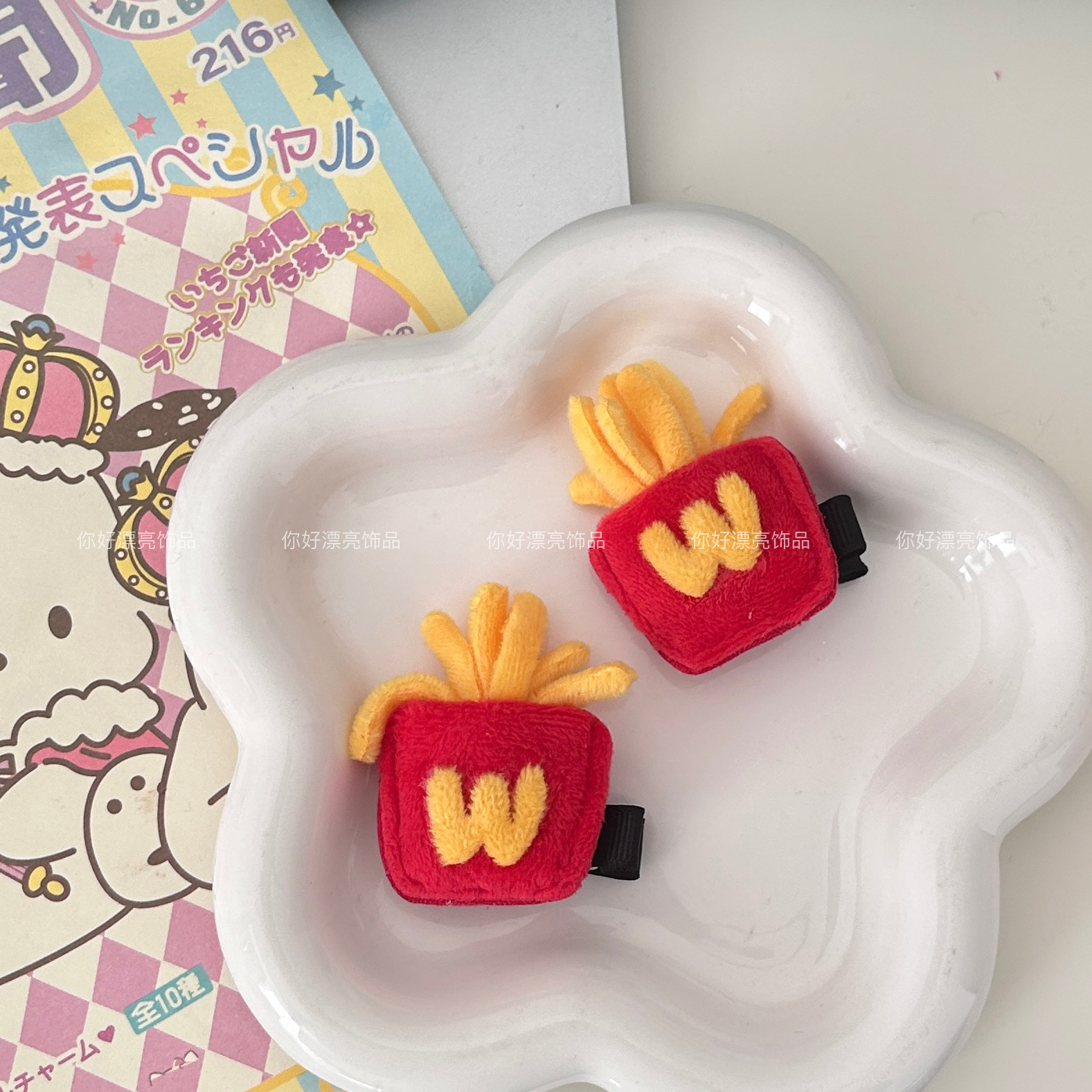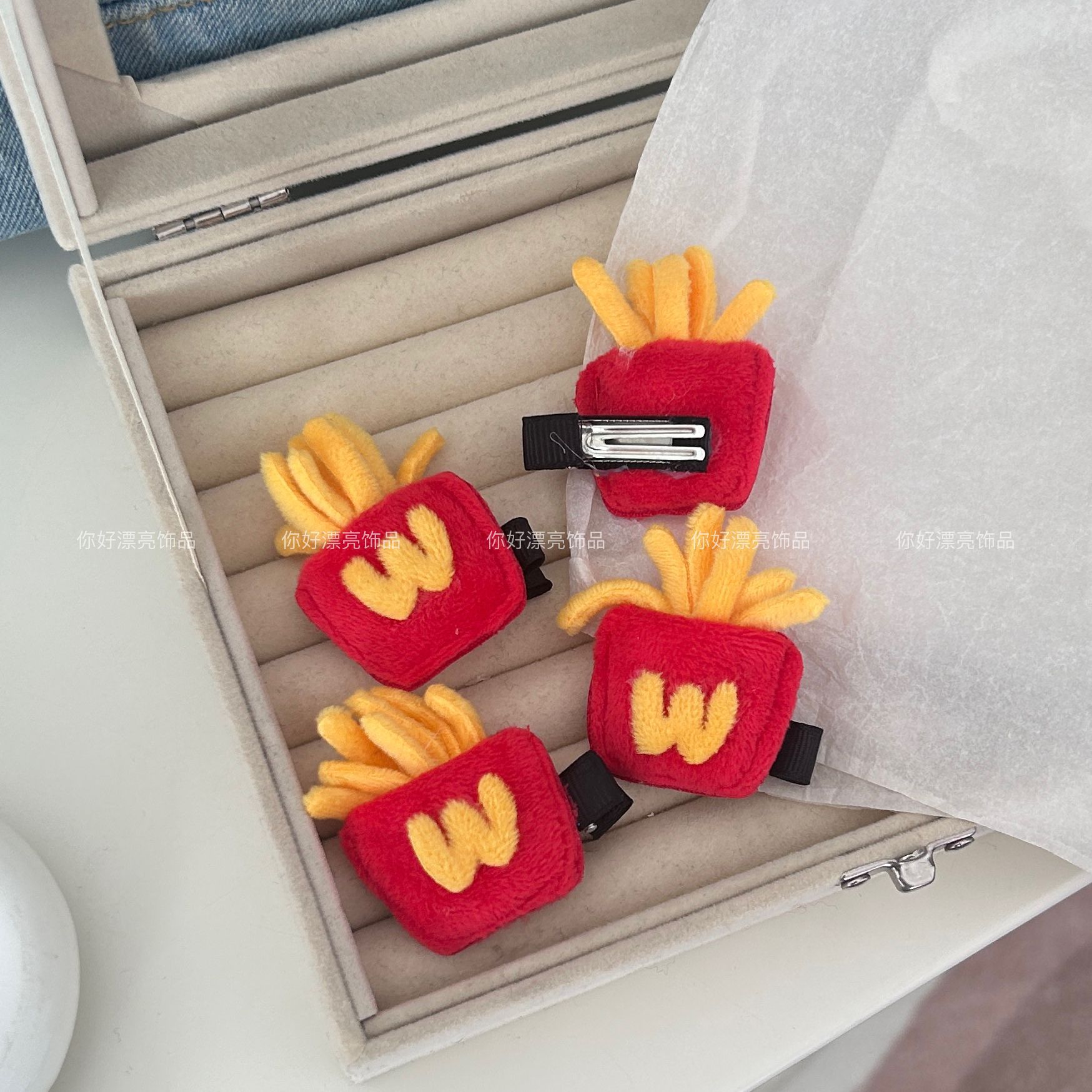 布艺搞怪薯条发夹趣味卡通恶搞创意发夹仿真食玩边夹发卡刘海发饰