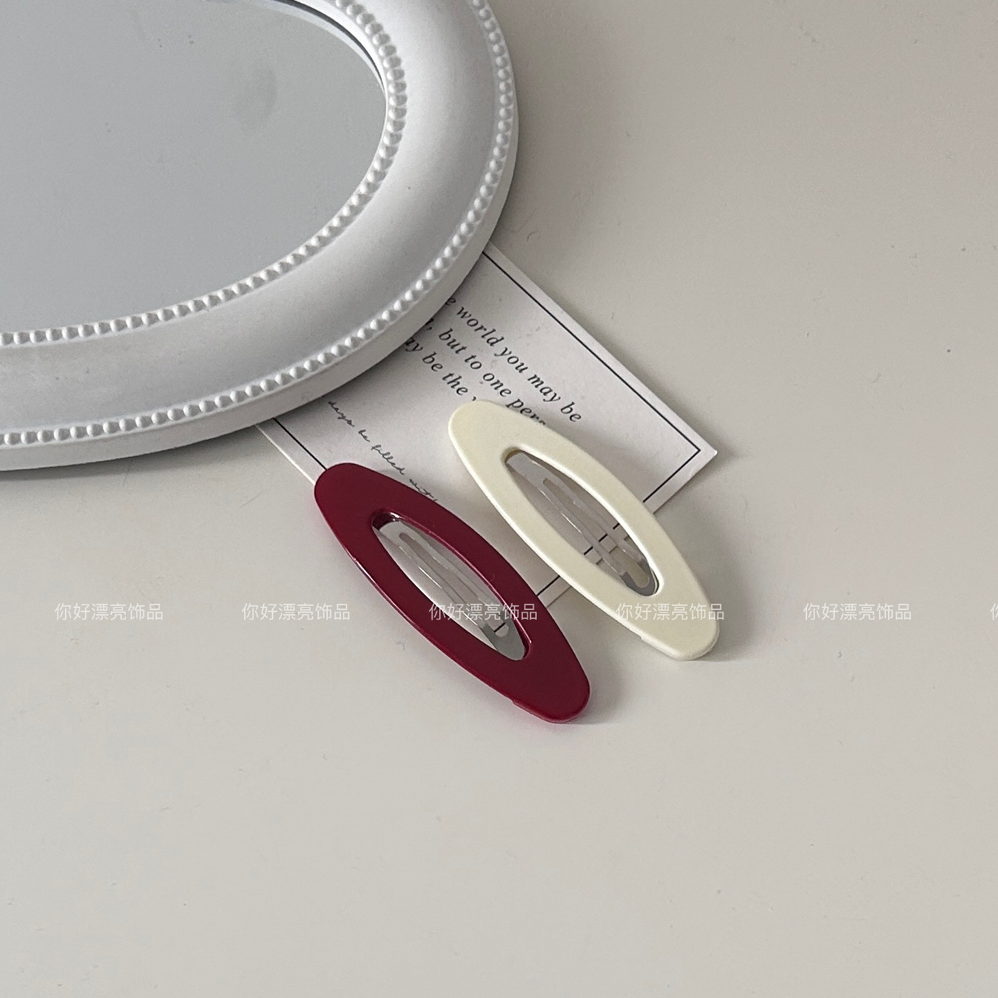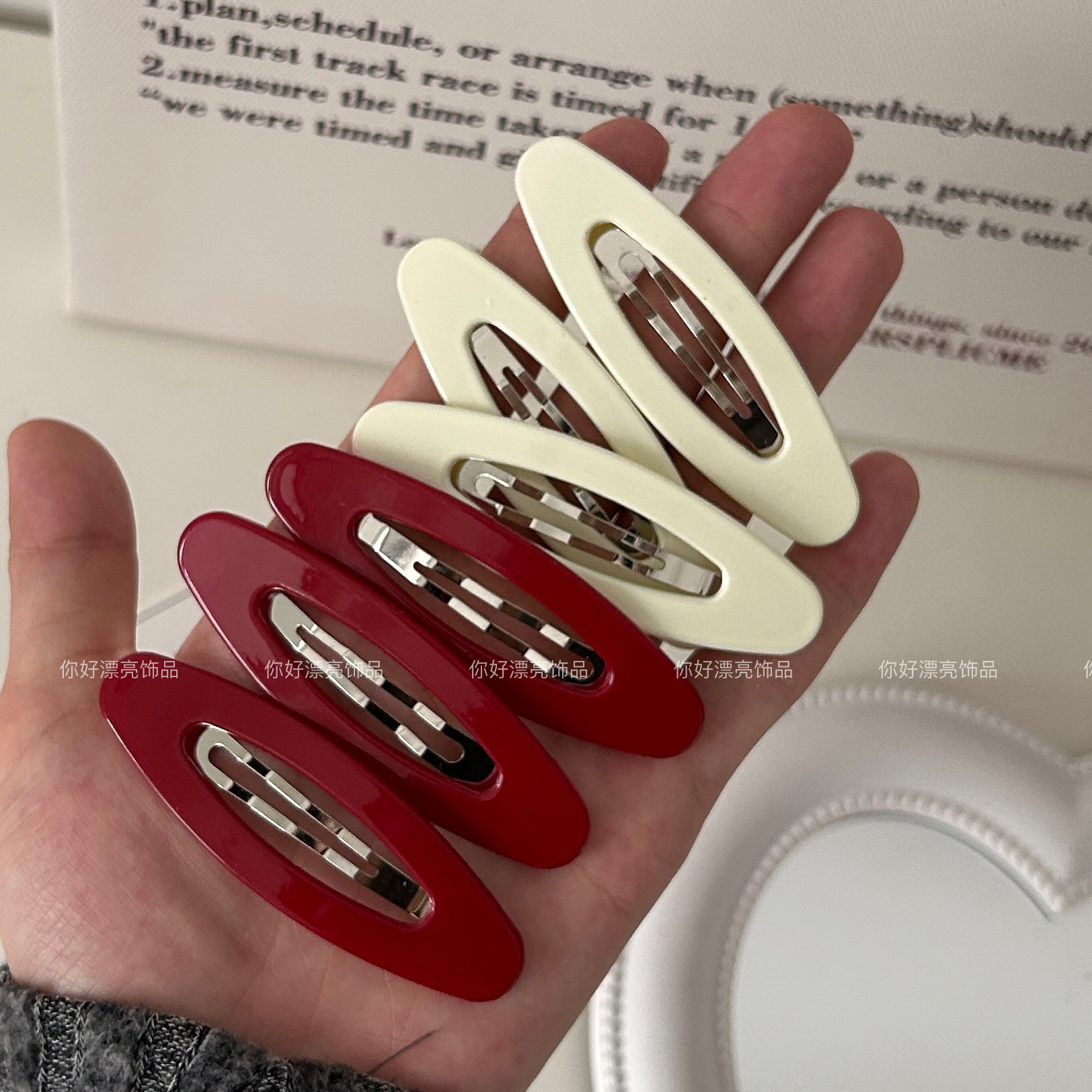 亮面简约米酒红显白椭圆掰掰夹ins少女甜美刘海边夹高级日韩发饰