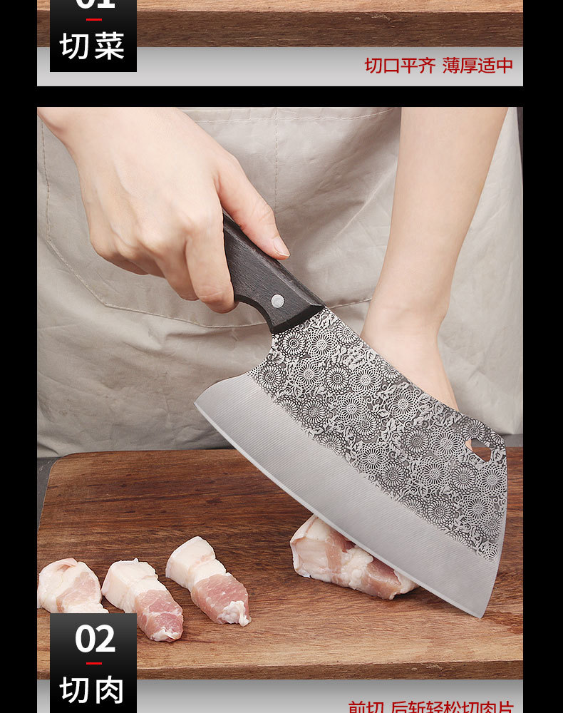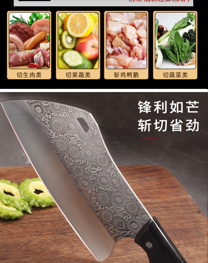 新款跑江湖菜刀厨房家用切肉切片刀锋利耐用锻打厨师刀阳江刀具