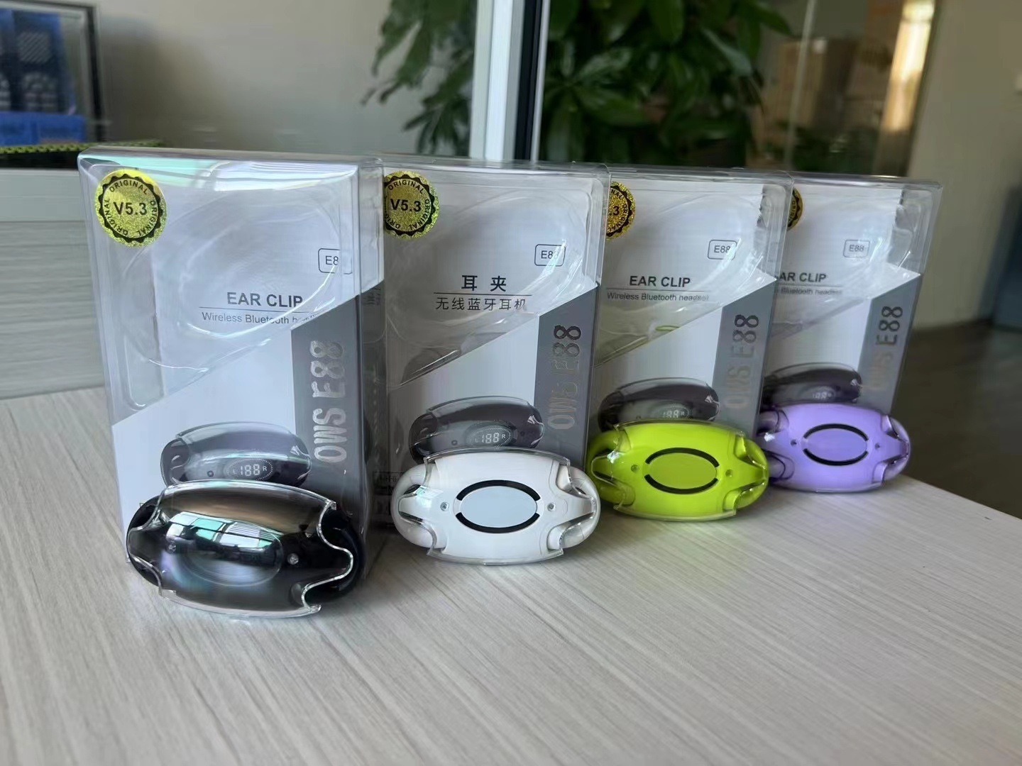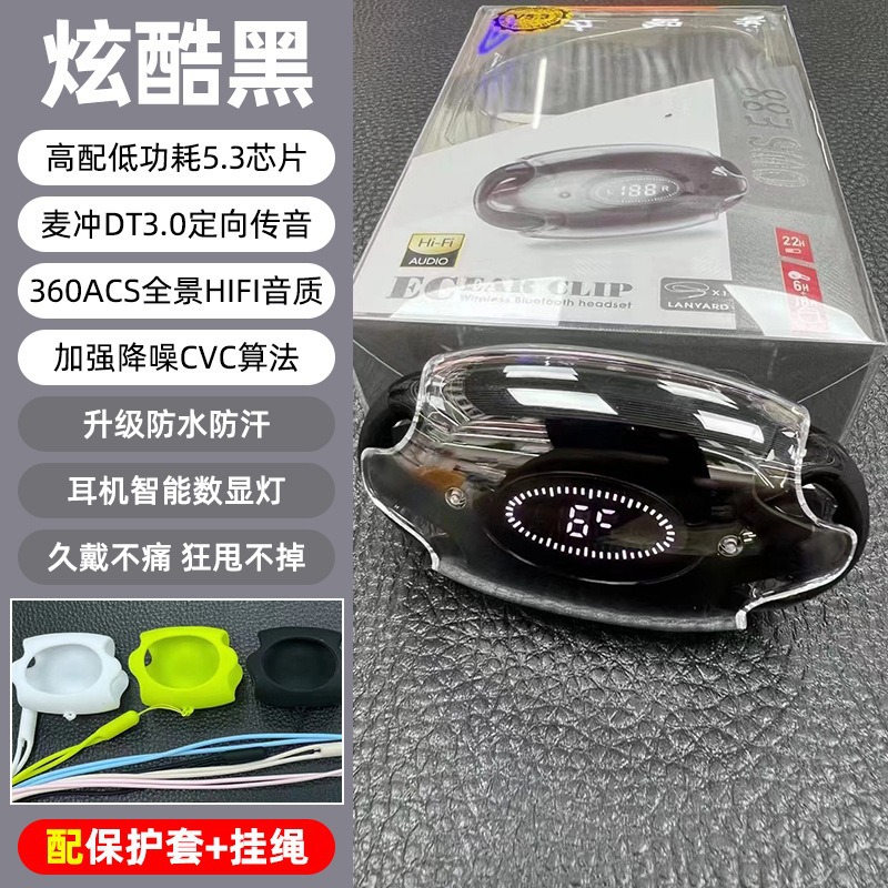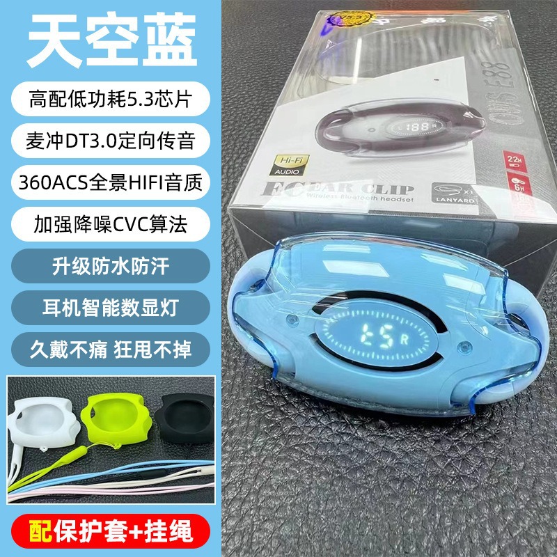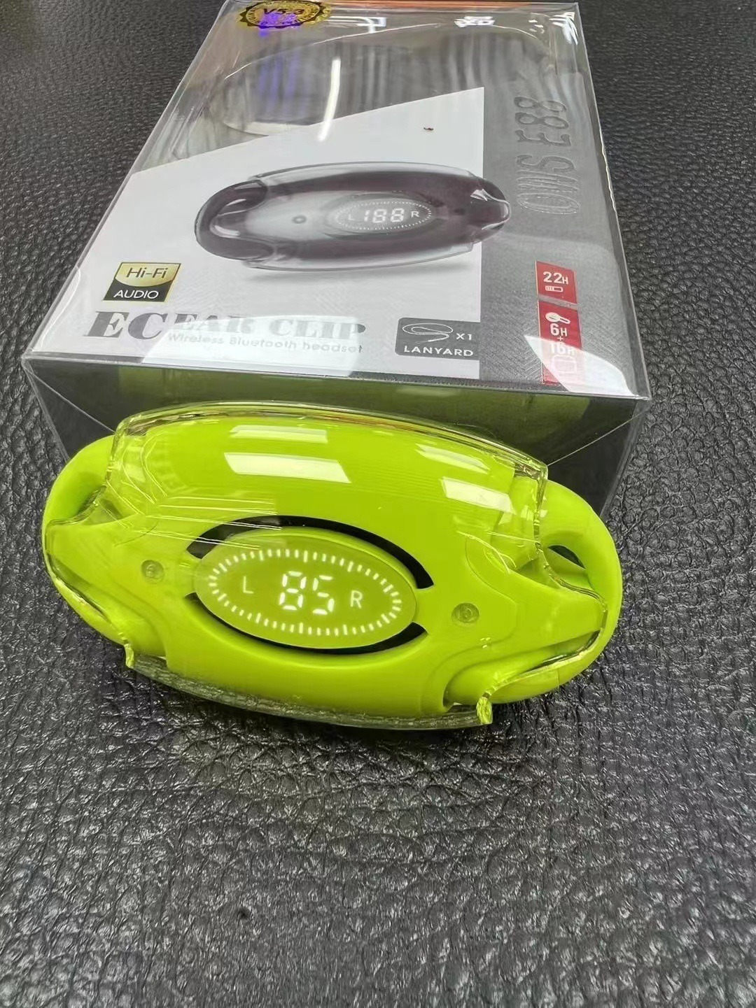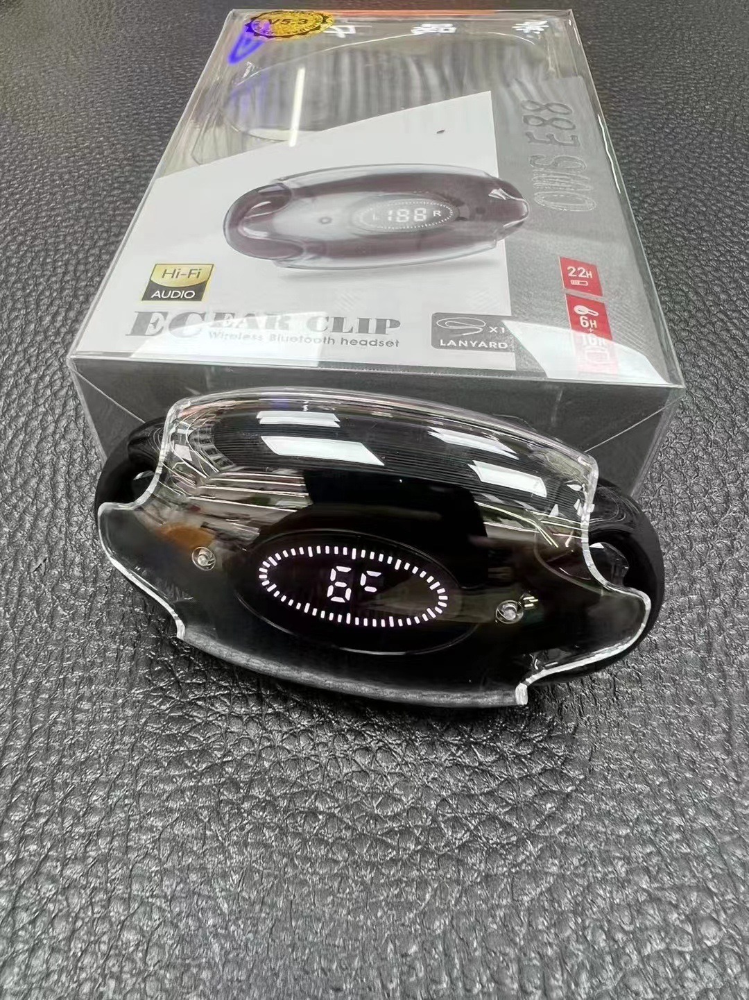 新款E88耳夹式蓝牙耳机数显屏幕透明防水便携运动跑步OWS无线耳机